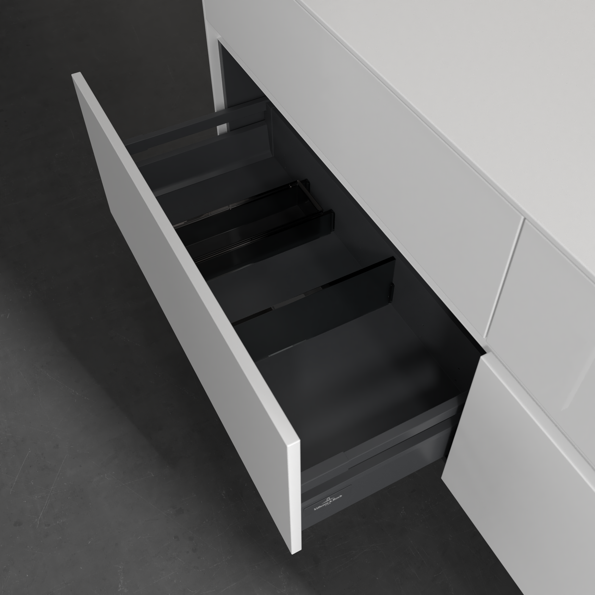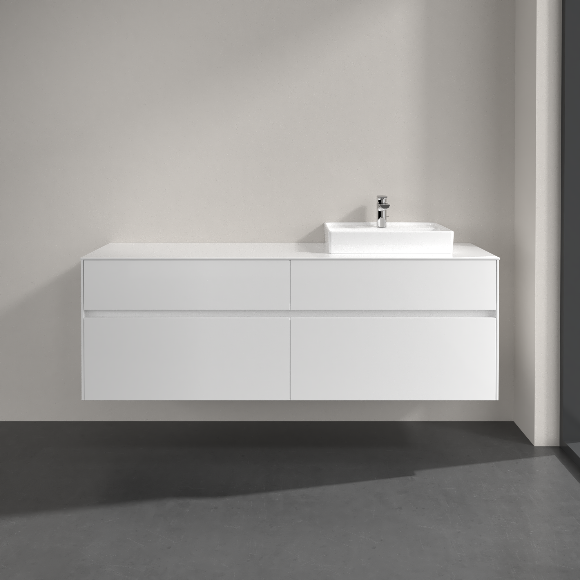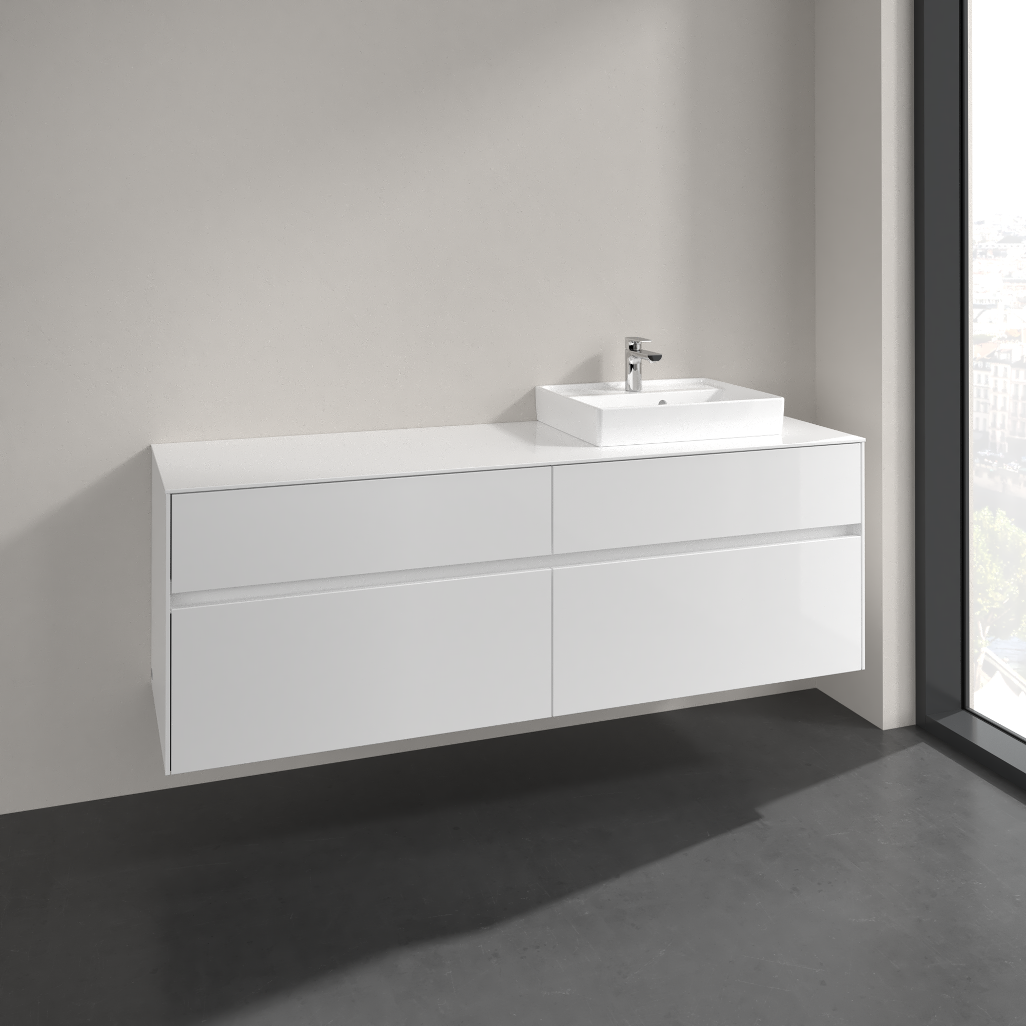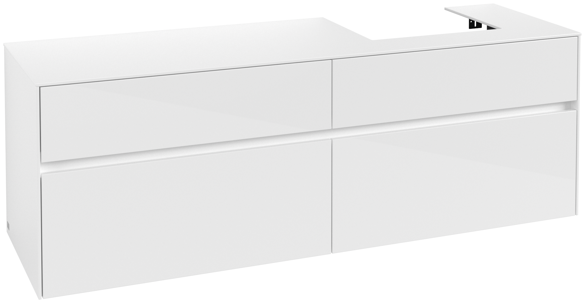 Collaro Meuble sous plan, 4 tiroirs sur rails, 1600x548x500mm, Caisson: Glossy White, Façade: Glossy White
