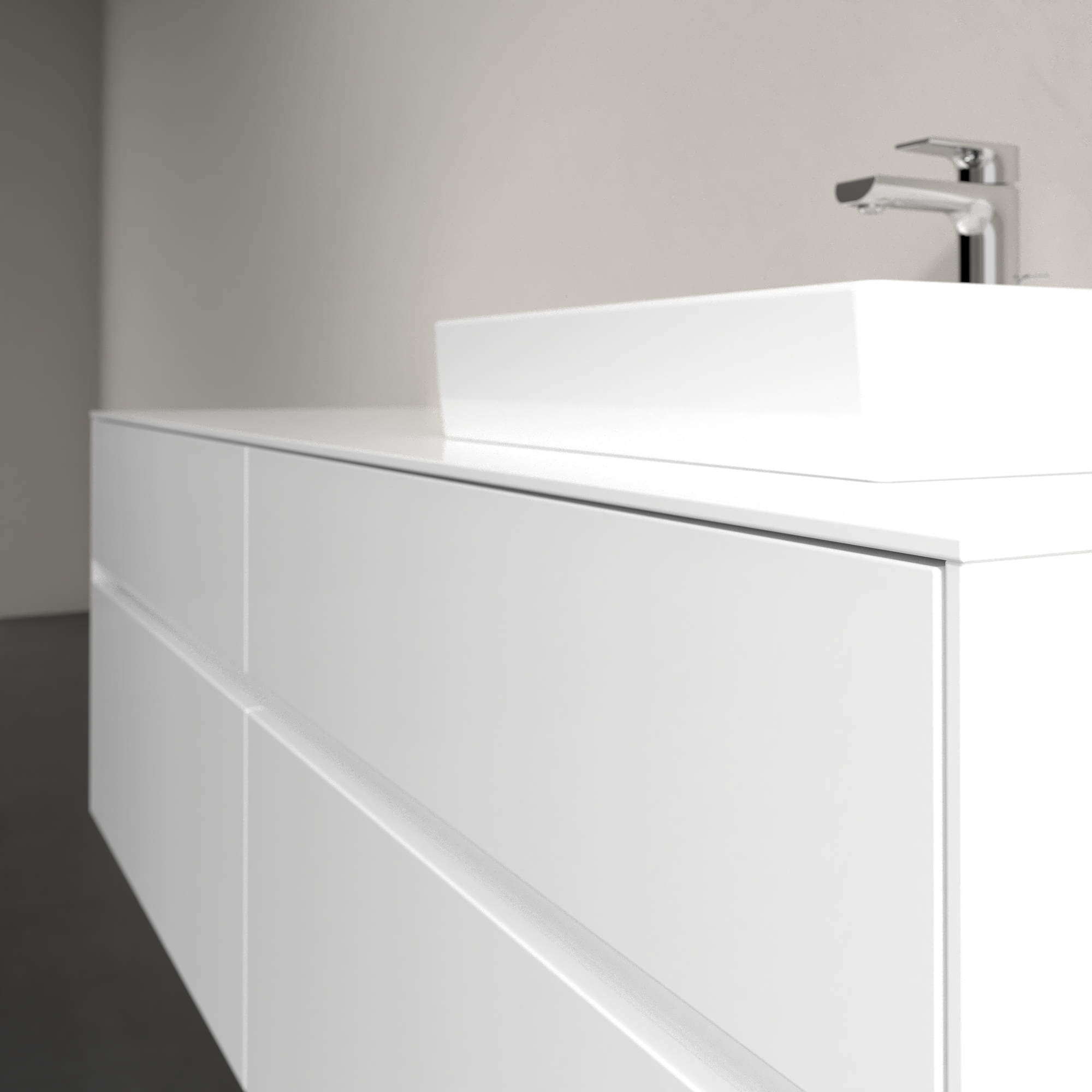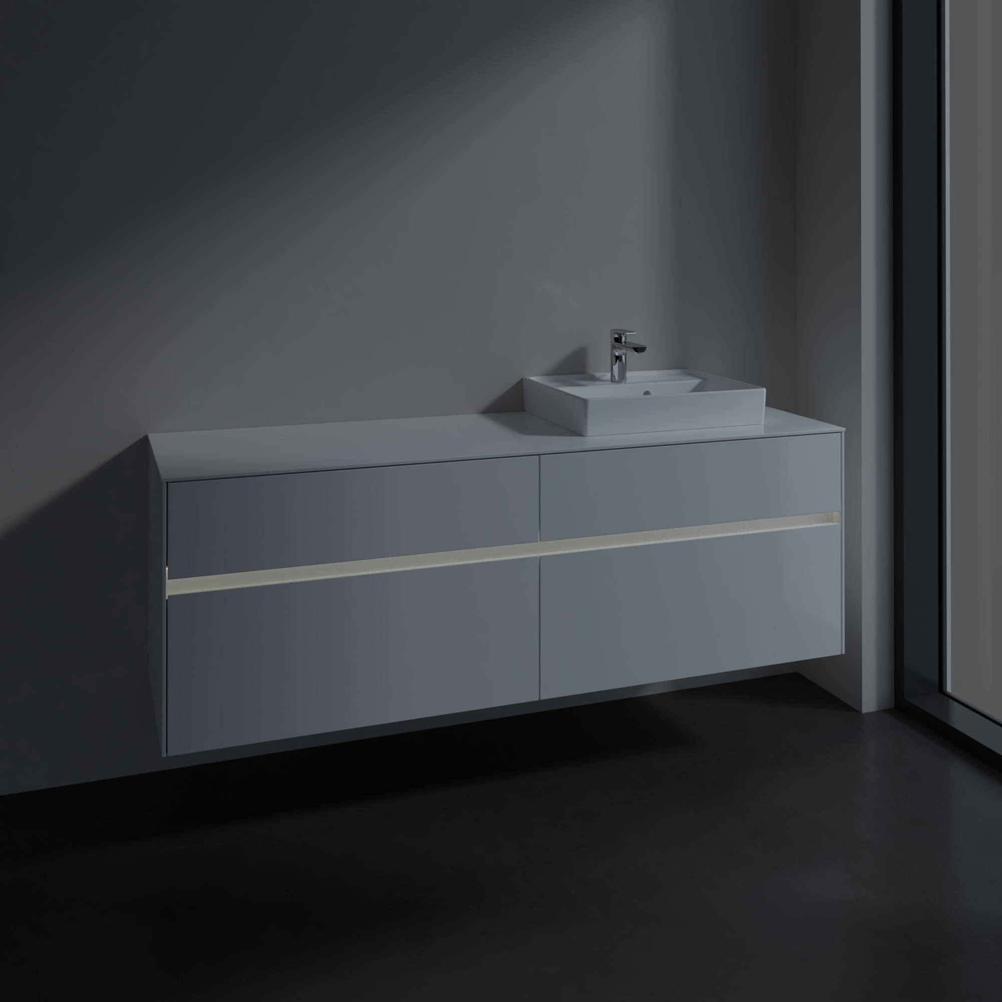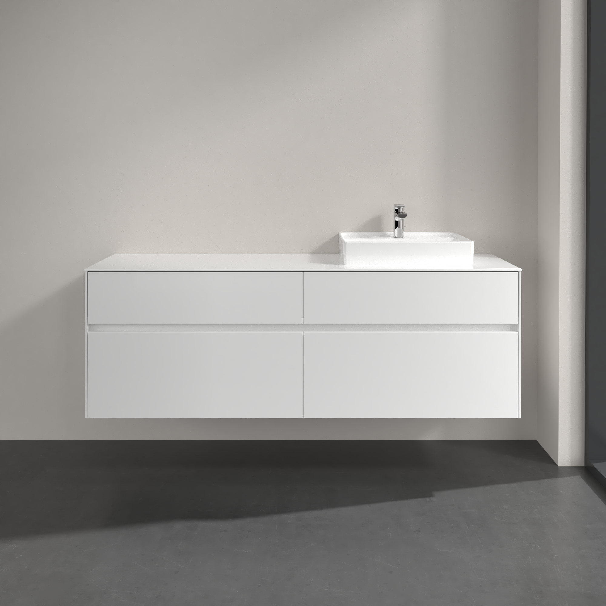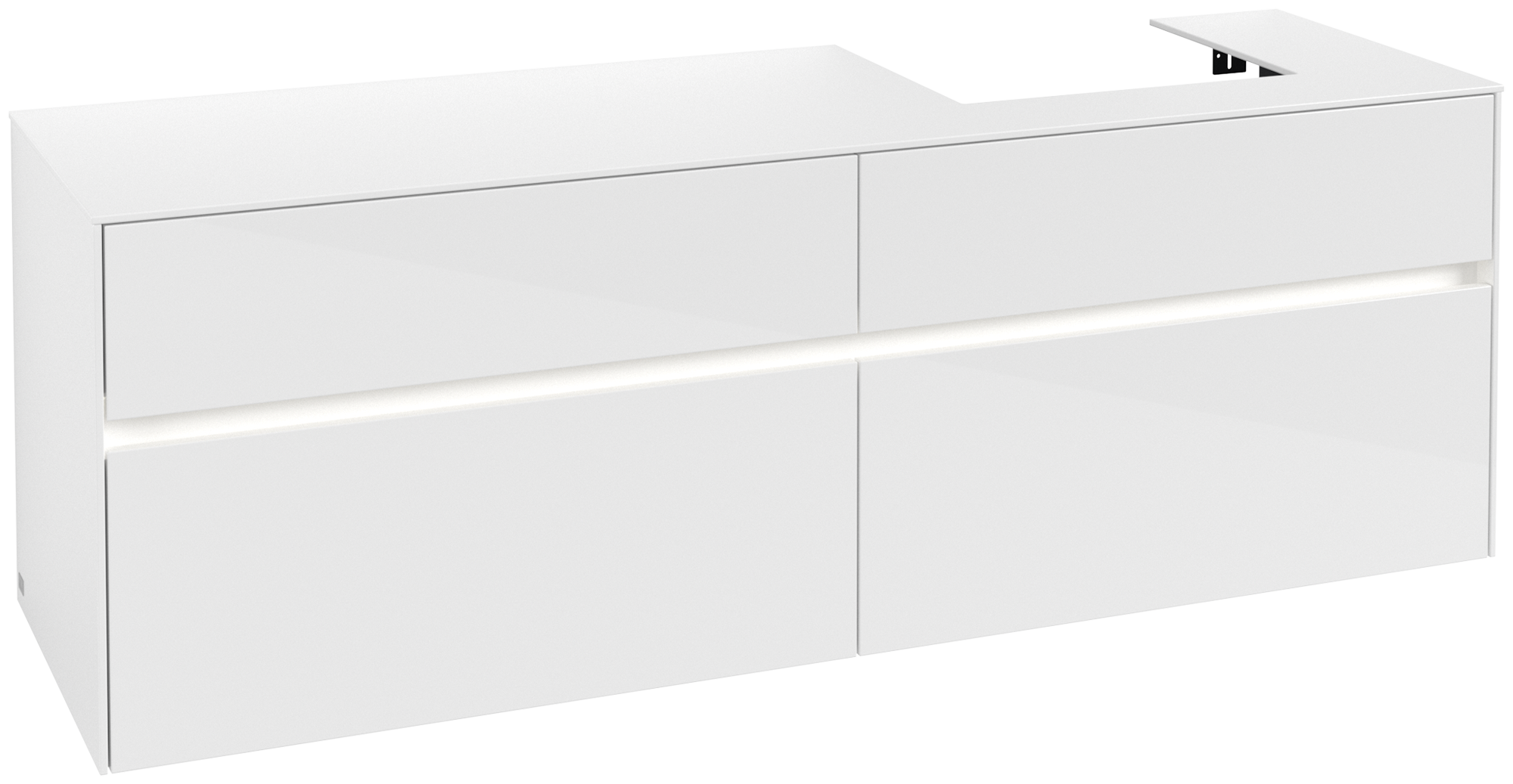 Collaro Meuble sous plan, avec éclairage, 4 tiroirs sur rails, 1600x548x500mm, Caisson: Glossy White, Façade: Glossy White