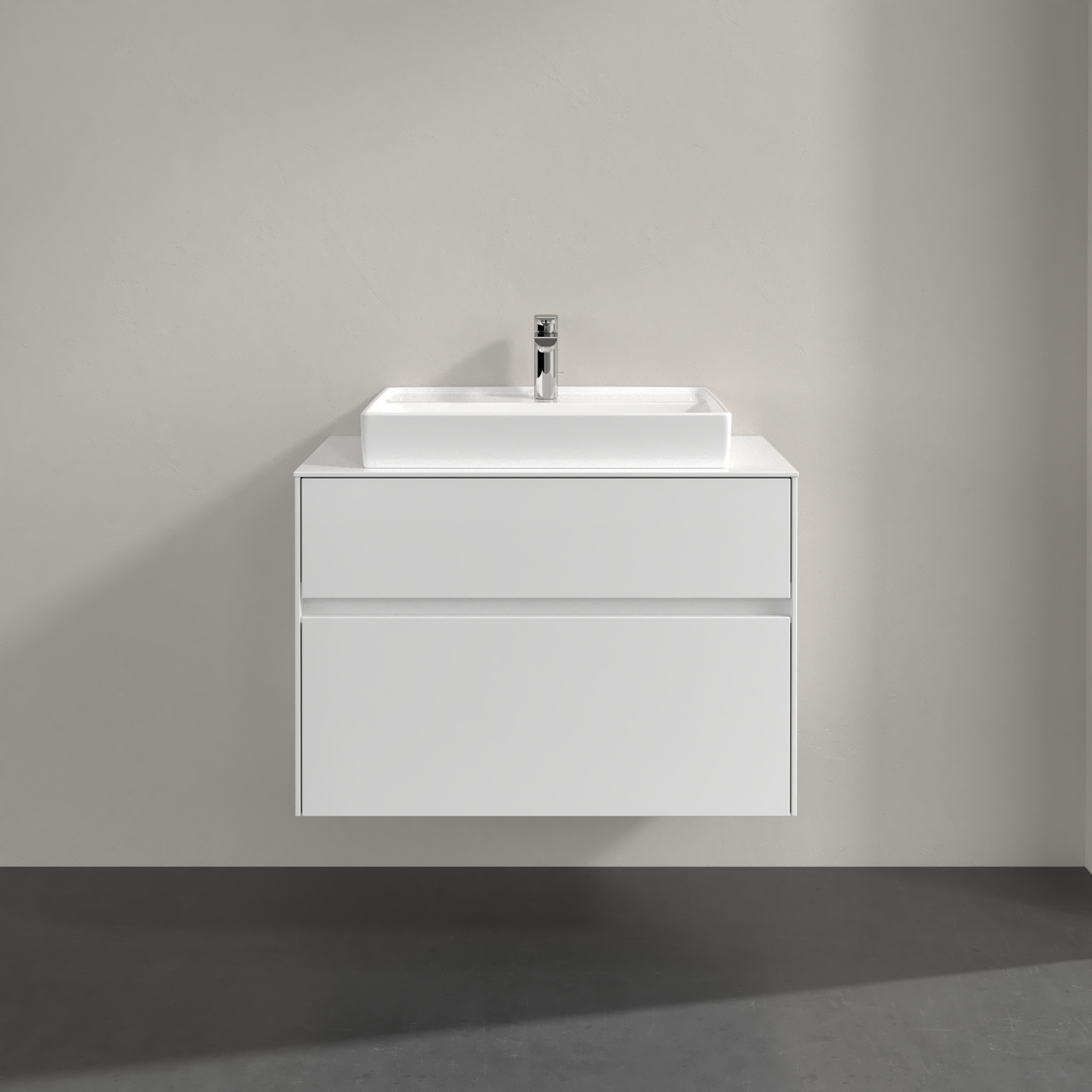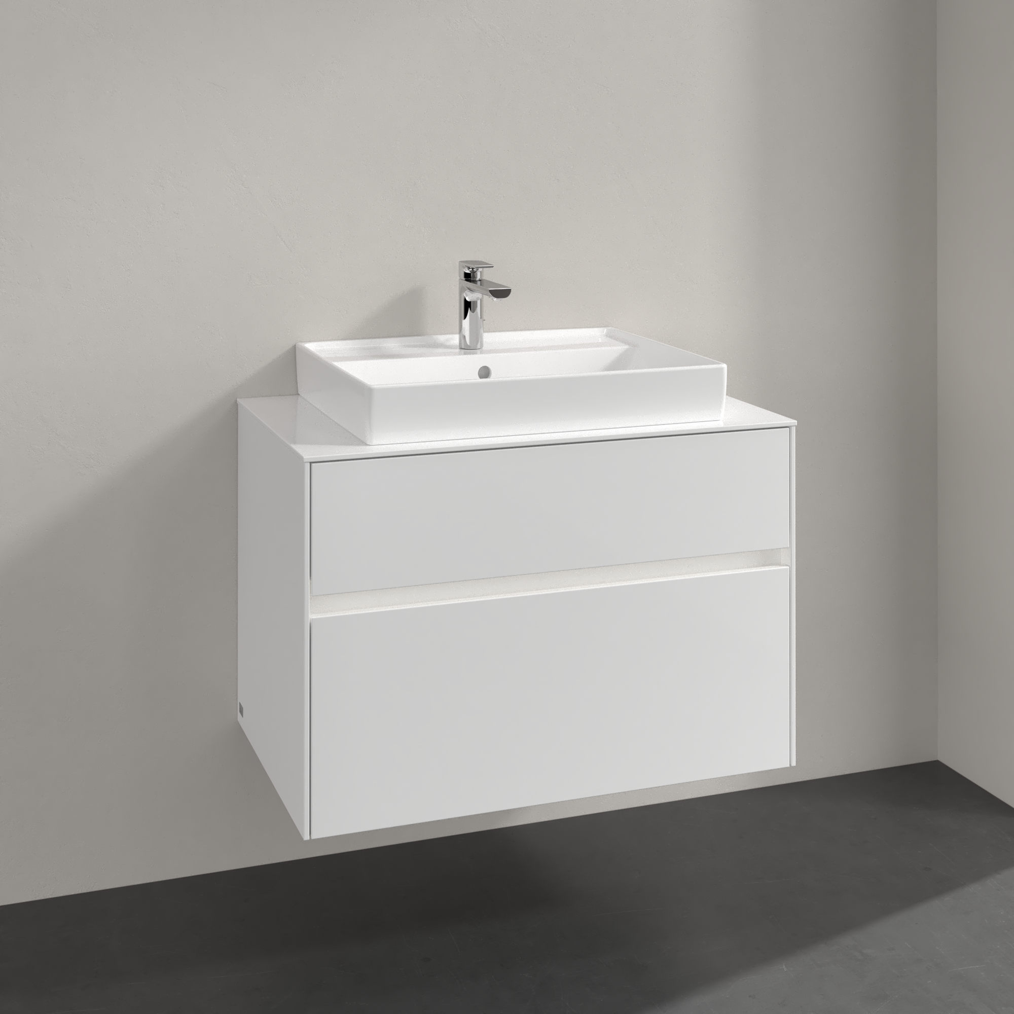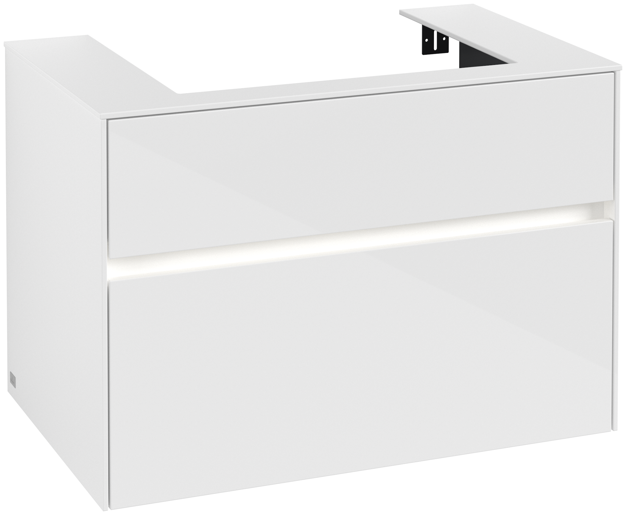 Collaro Meuble sous plan, avec éclairage, 2 tiroirs sur rails, 800x548x500mm, Caisson: Glossy White, Façade: Glossy White