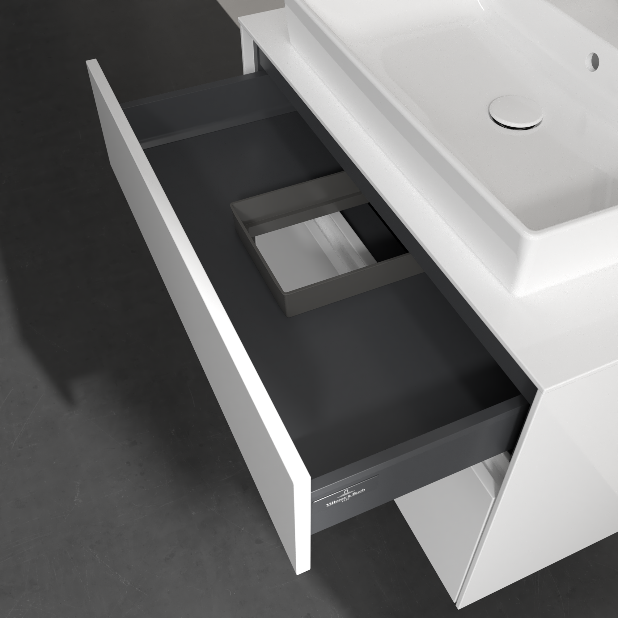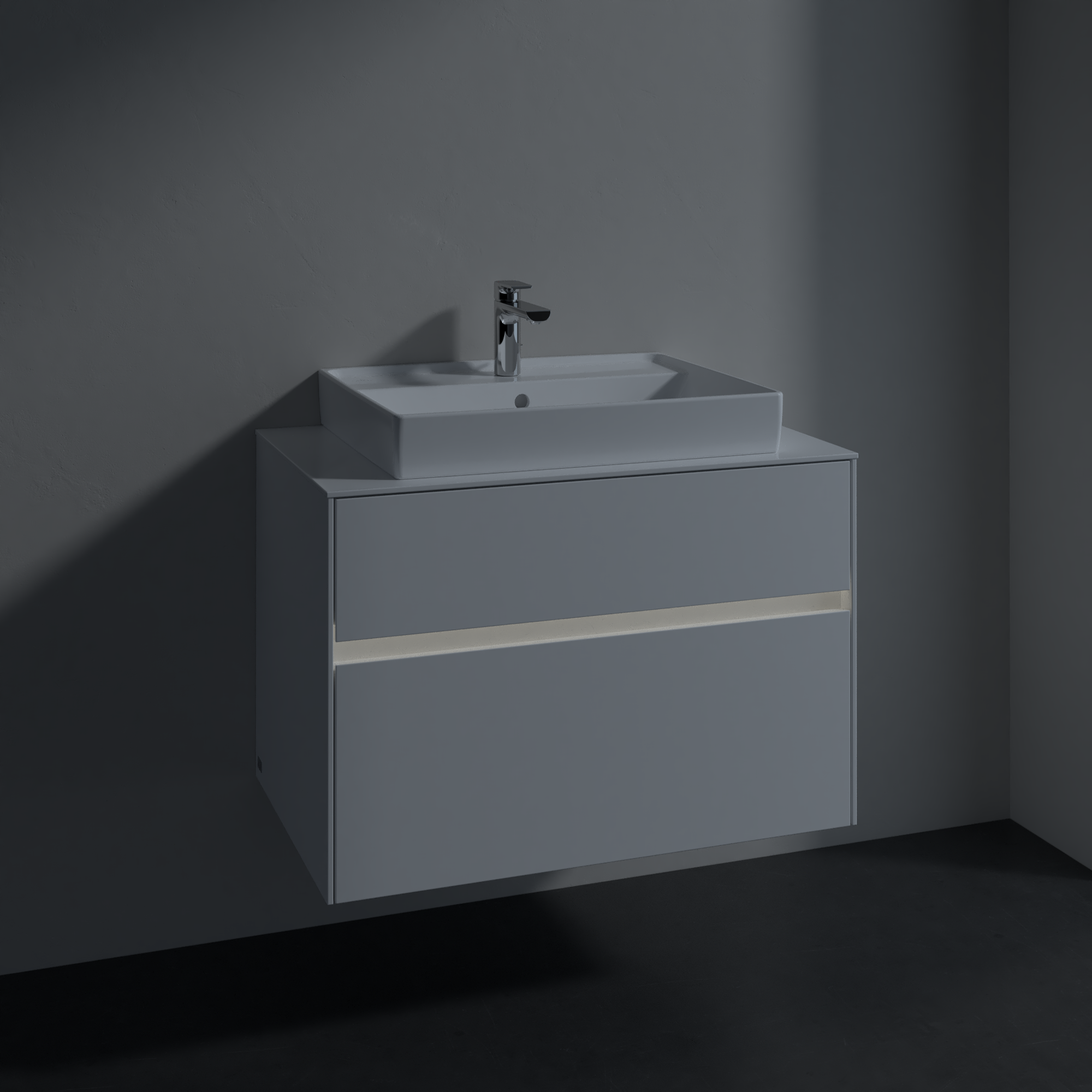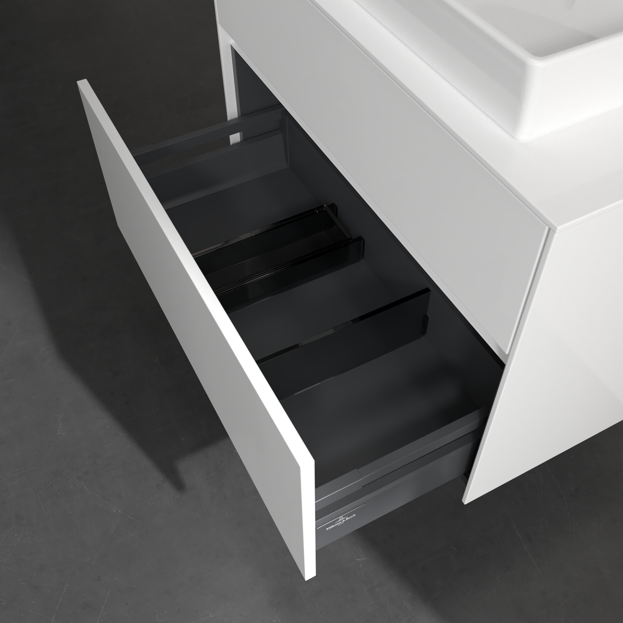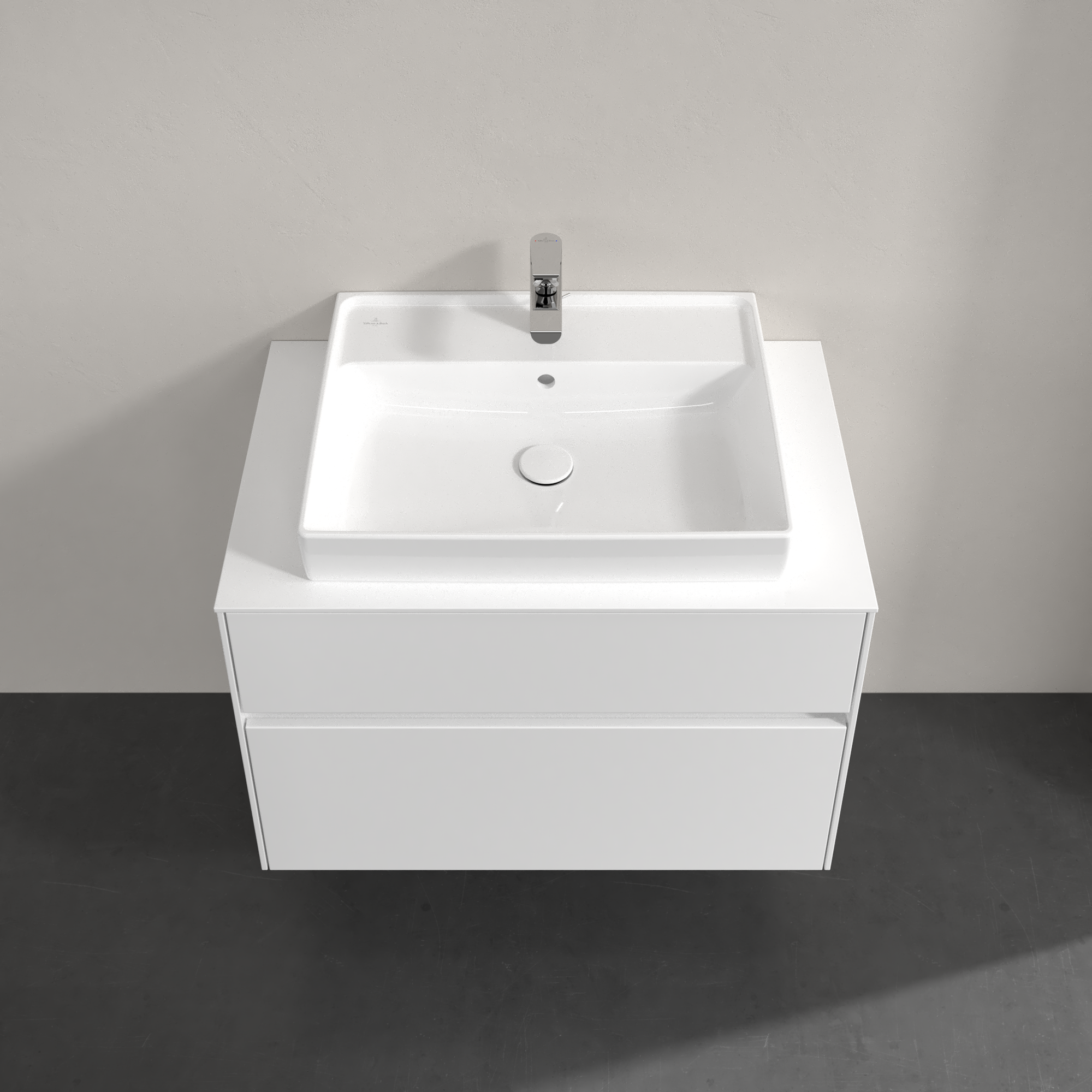 Collaro Meuble sous plan, avec éclairage, 2 tiroirs sur rails, 800x548x500mm, Caisson: Glossy White, Façade: Glossy White