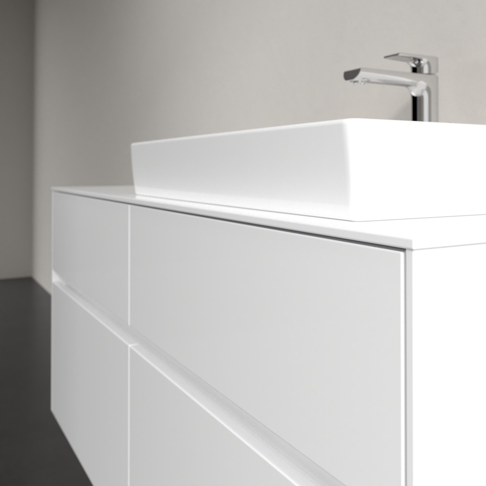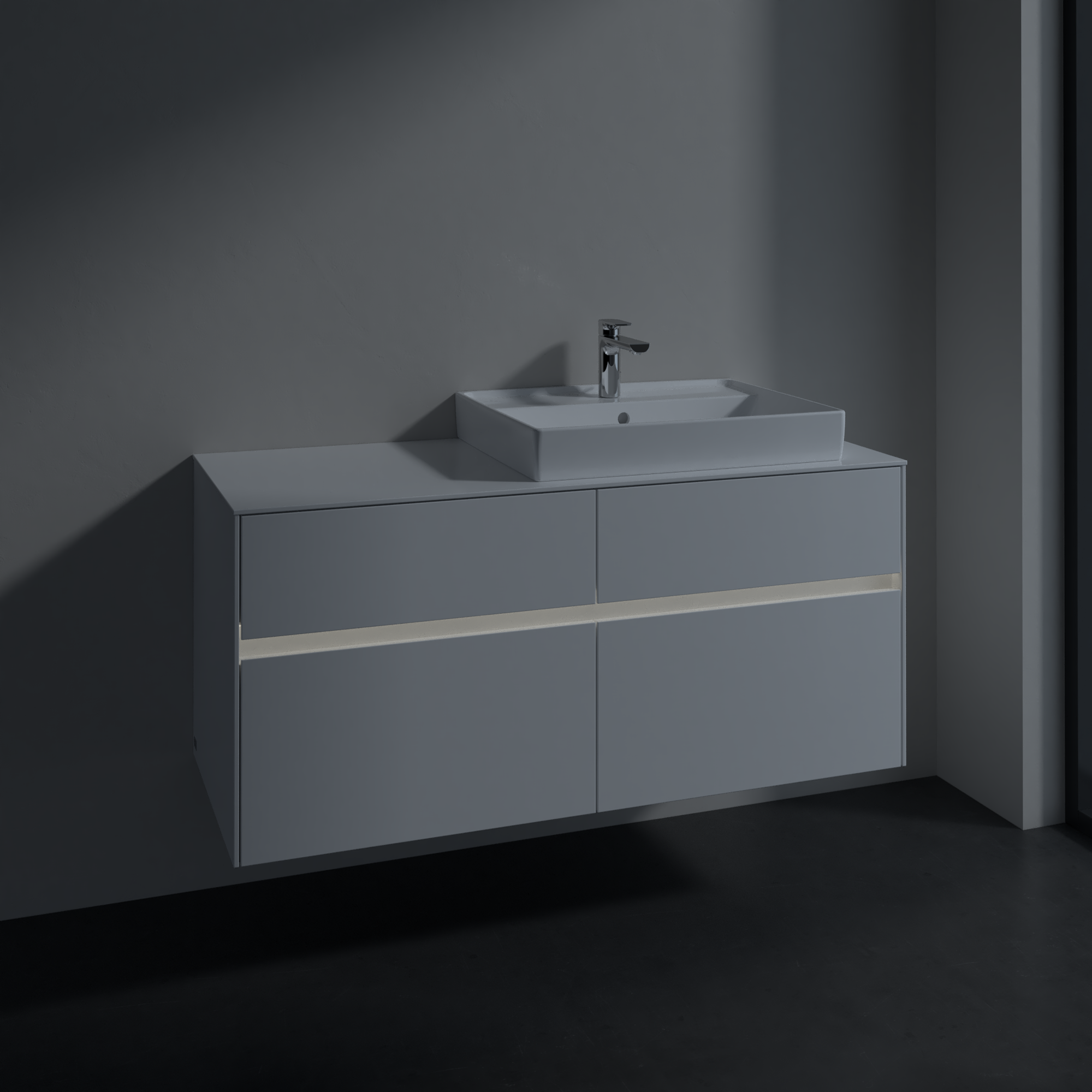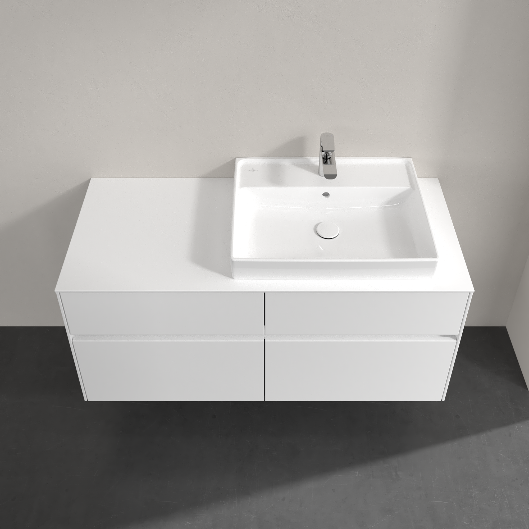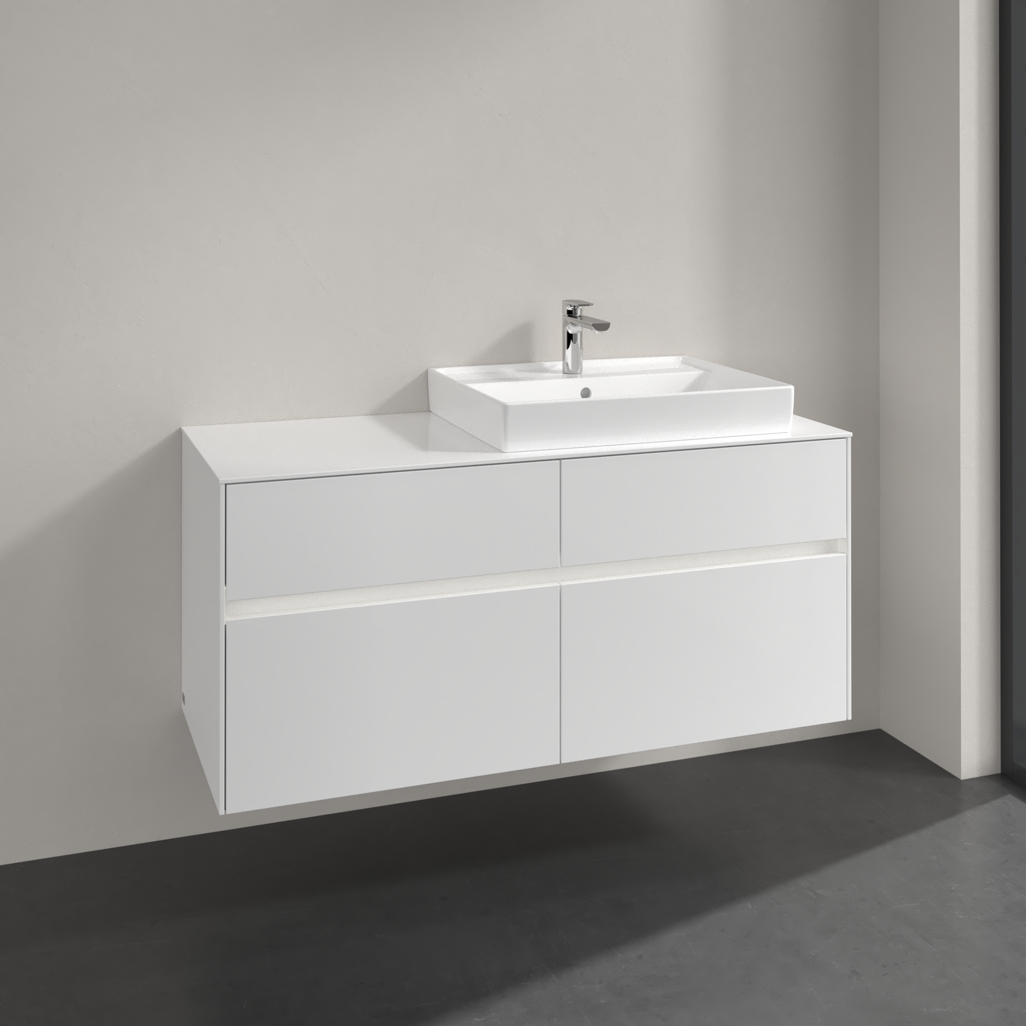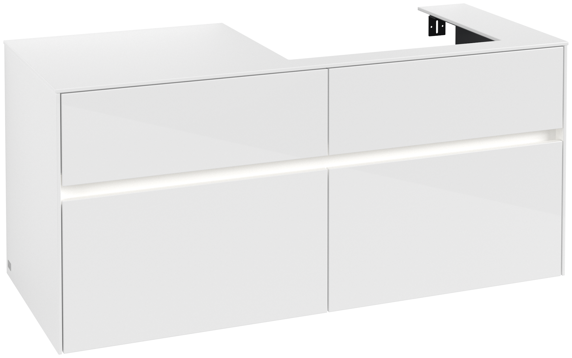 Collaro Meuble sous plan, avec éclairage, 4 tiroirs sur rails, 1200x548x500mm, Caisson: Glossy White, Façade: Glossy White