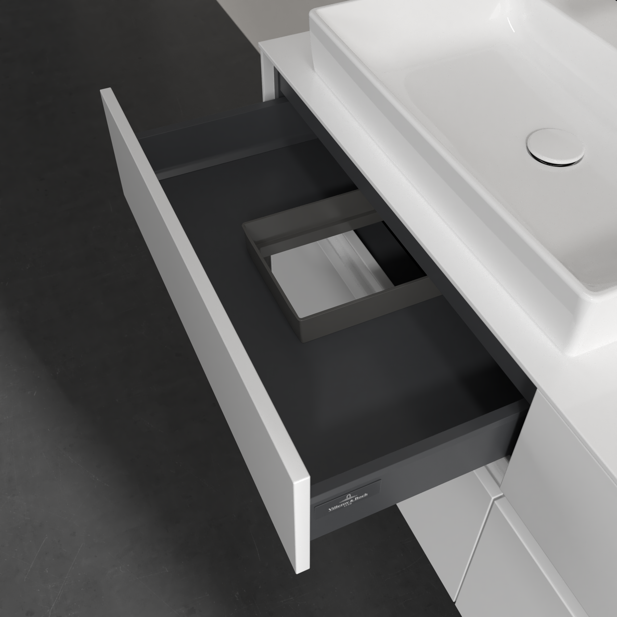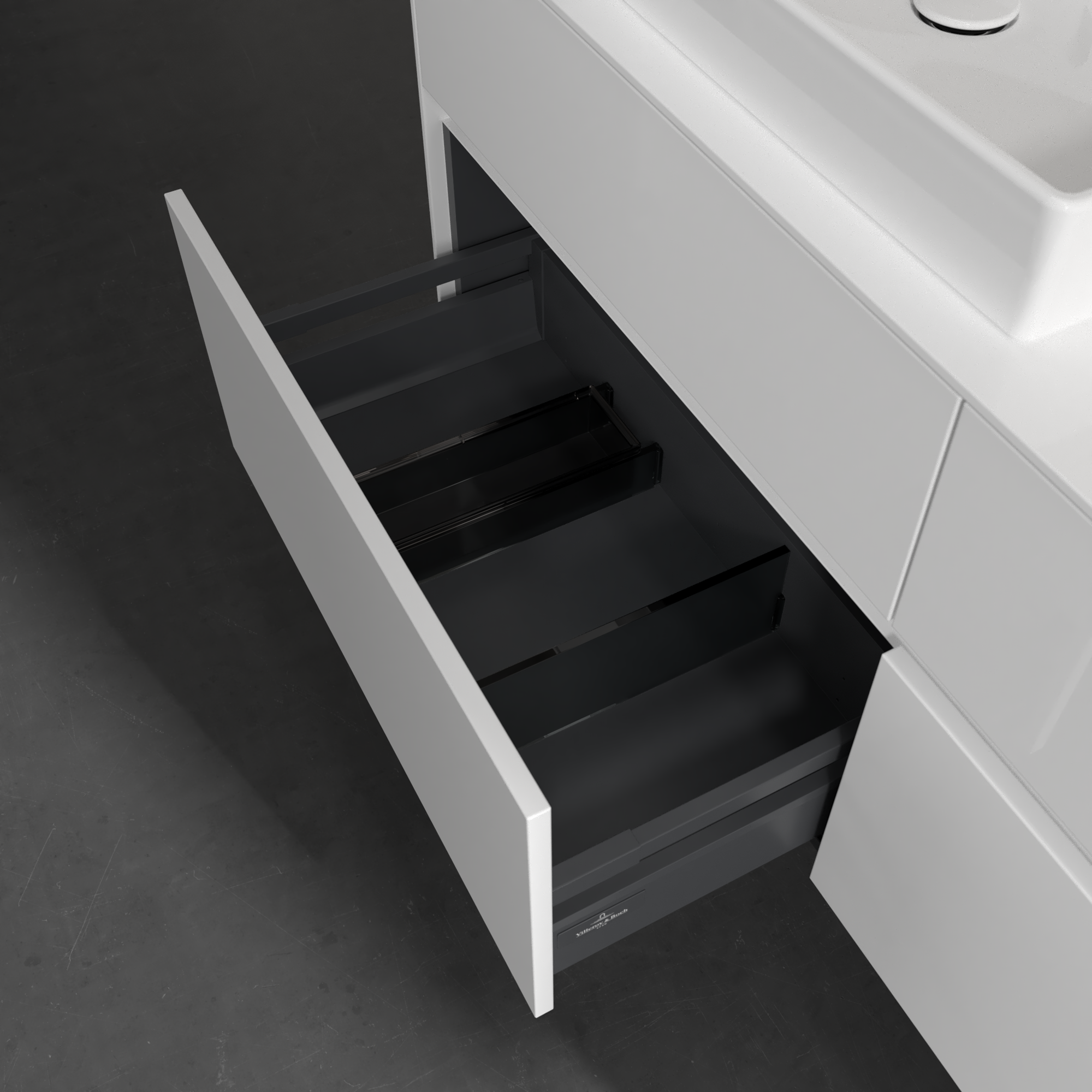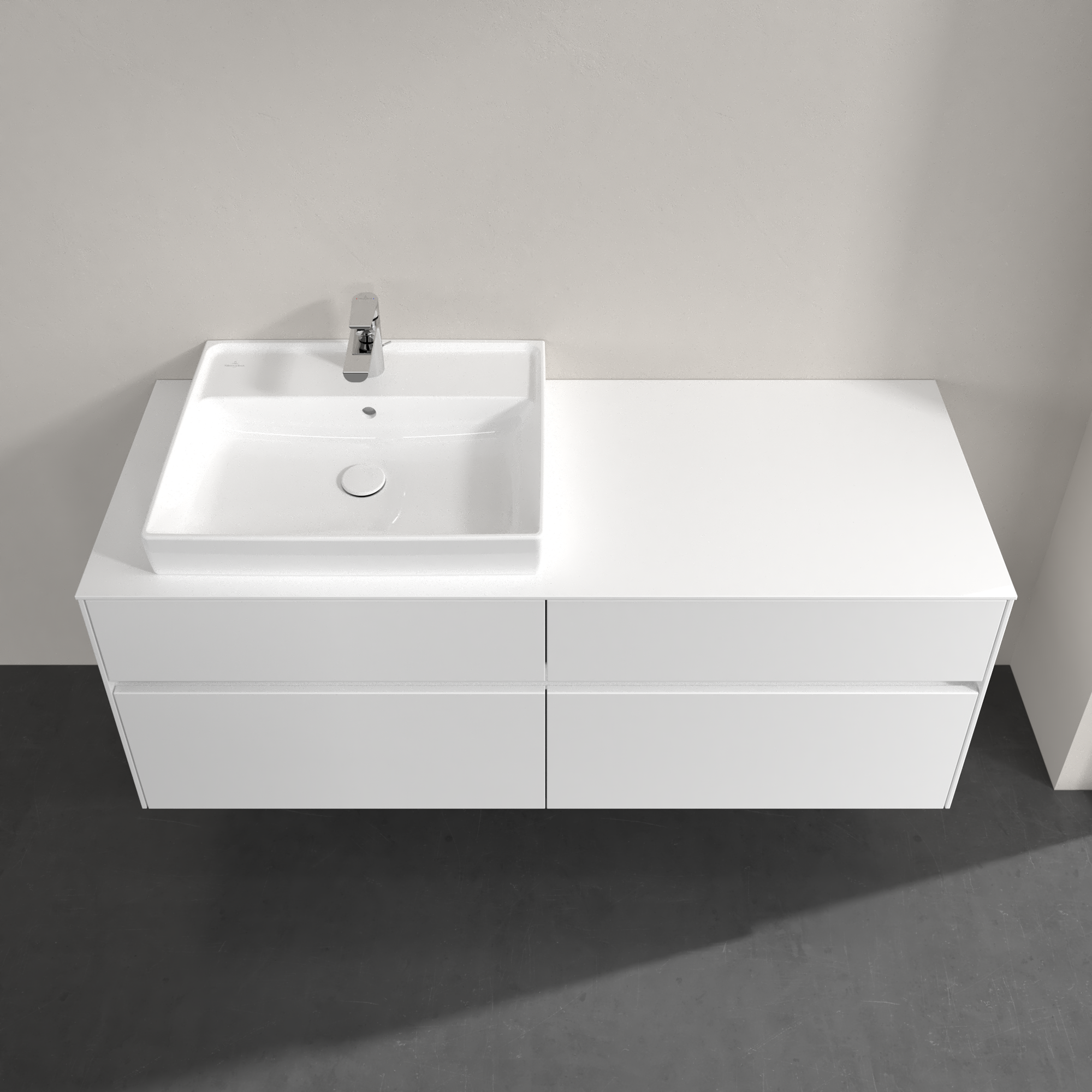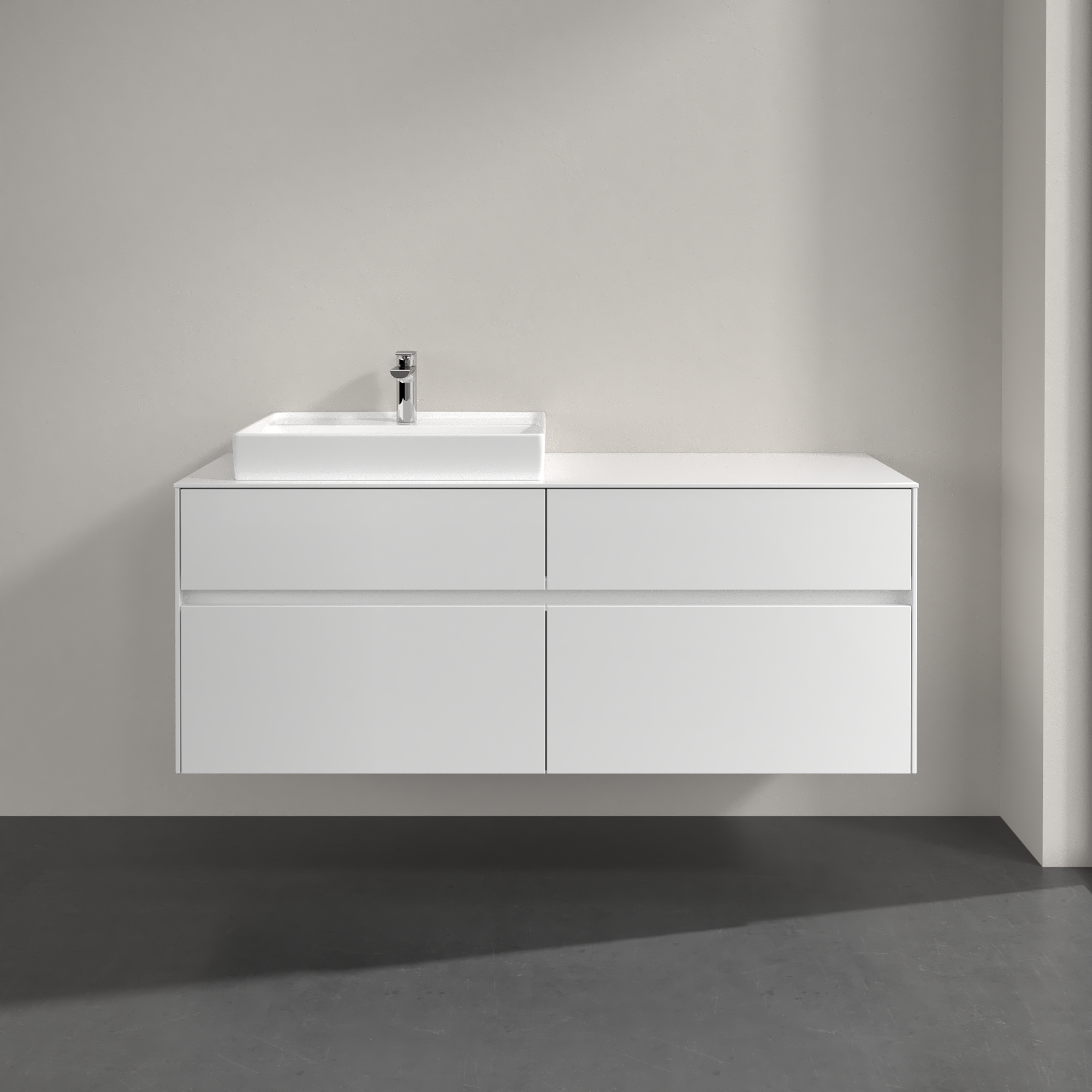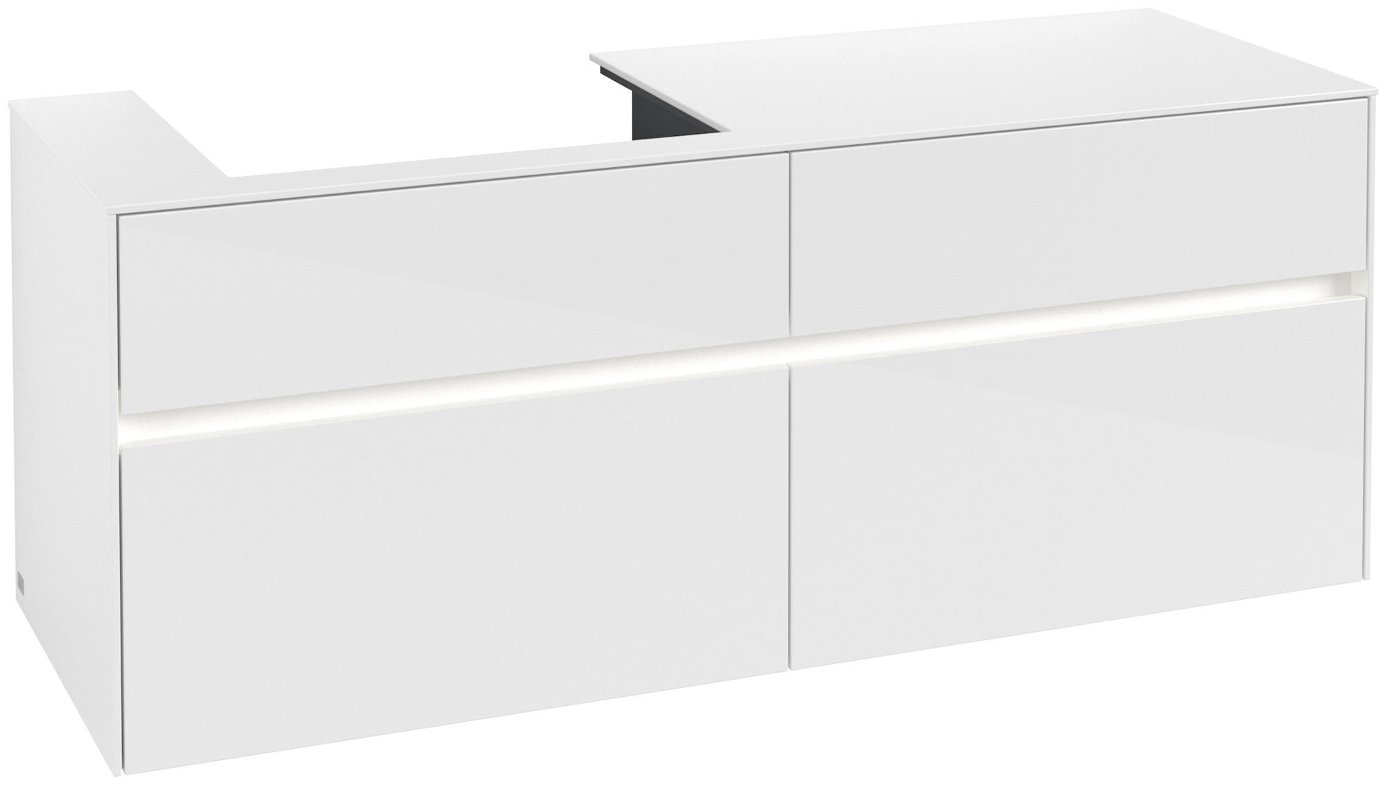 Collaro Meuble sous plan, avec éclairage, 4 tiroirs sur rails, 1400x548x500mm, Caisson: Glossy White, Façade: Glossy White