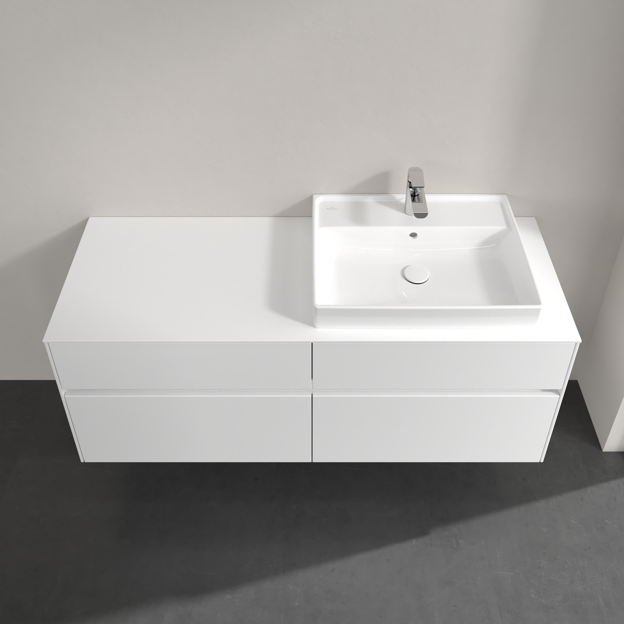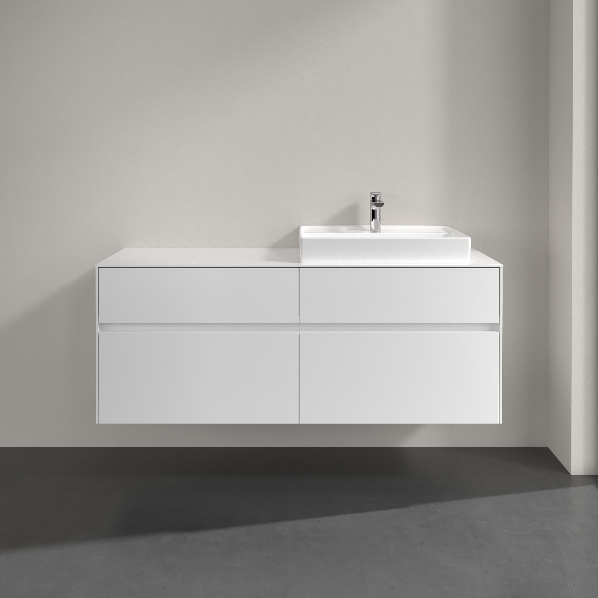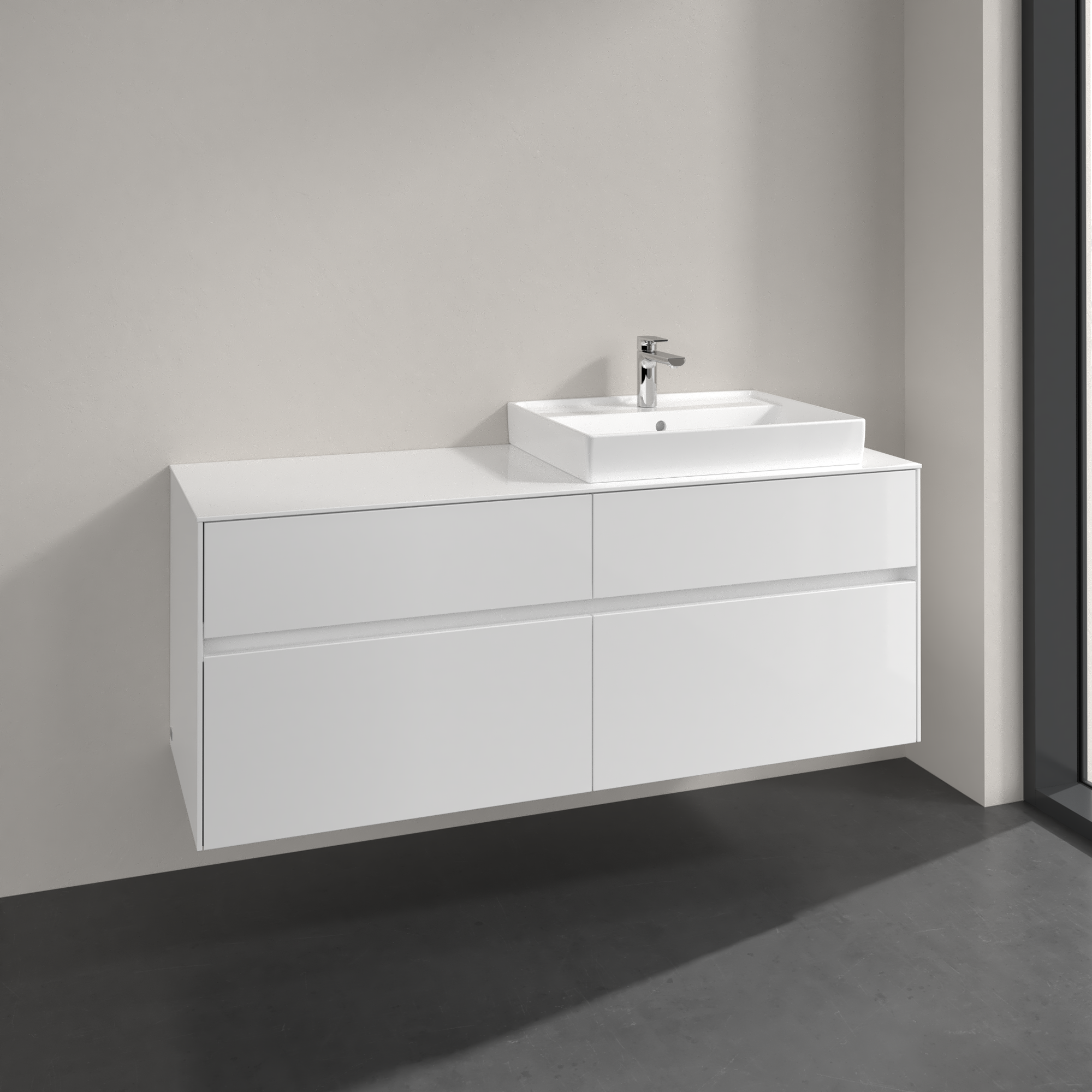 Collaro Meuble sous plan, 4 tiroirs sur rails, 1400x548x500mm, Caisson: Glossy White, Façade: Glossy White