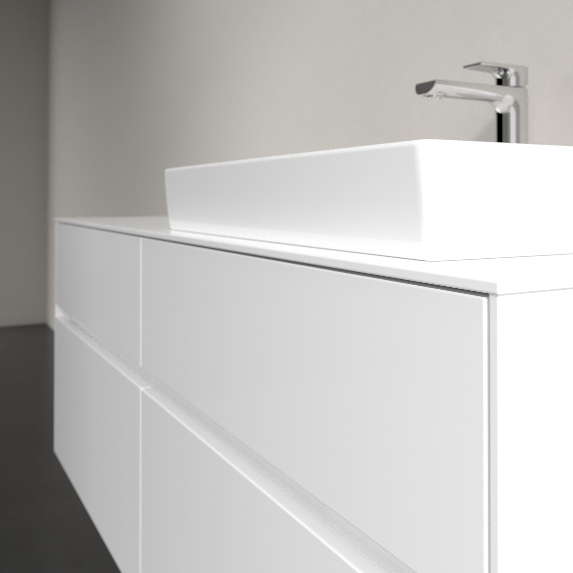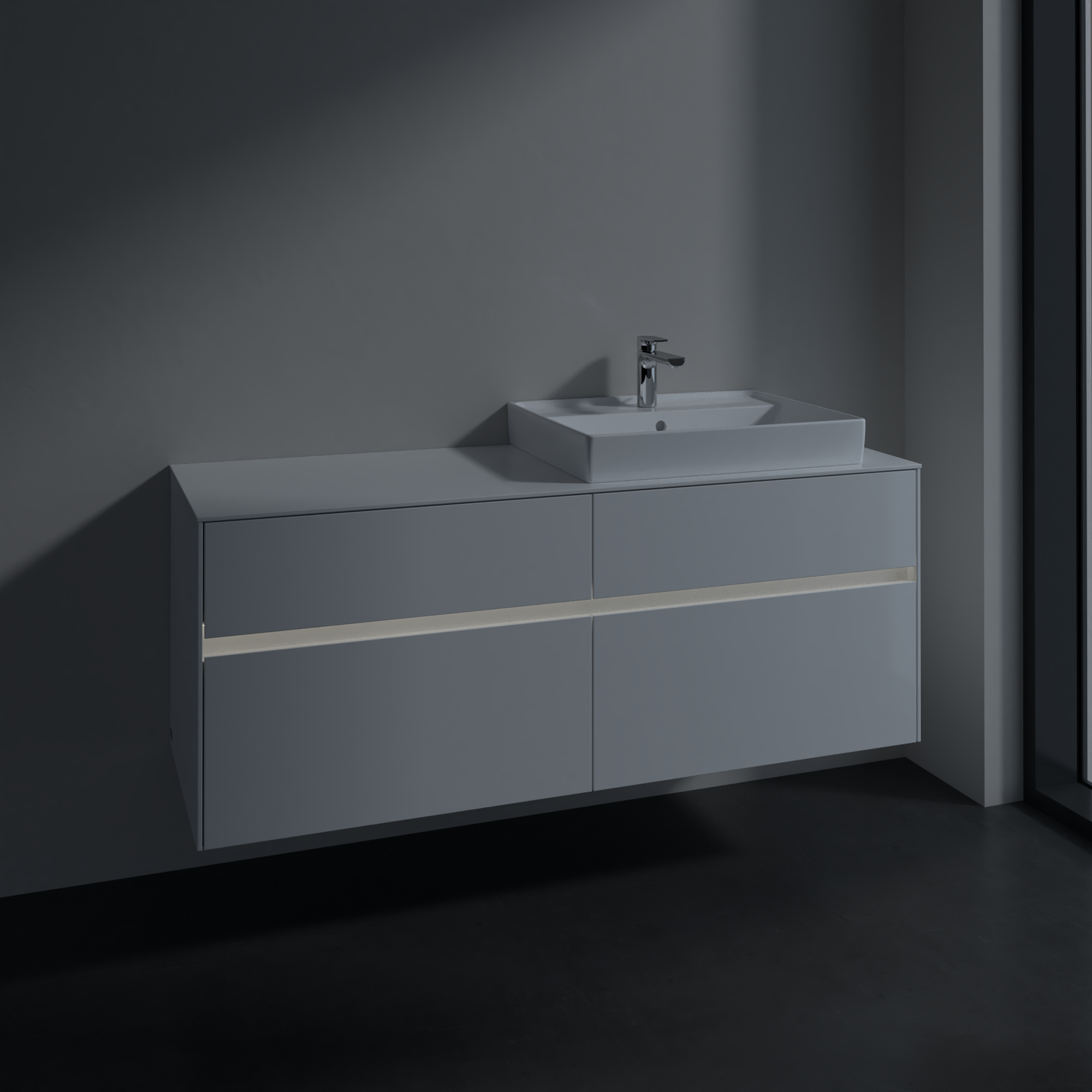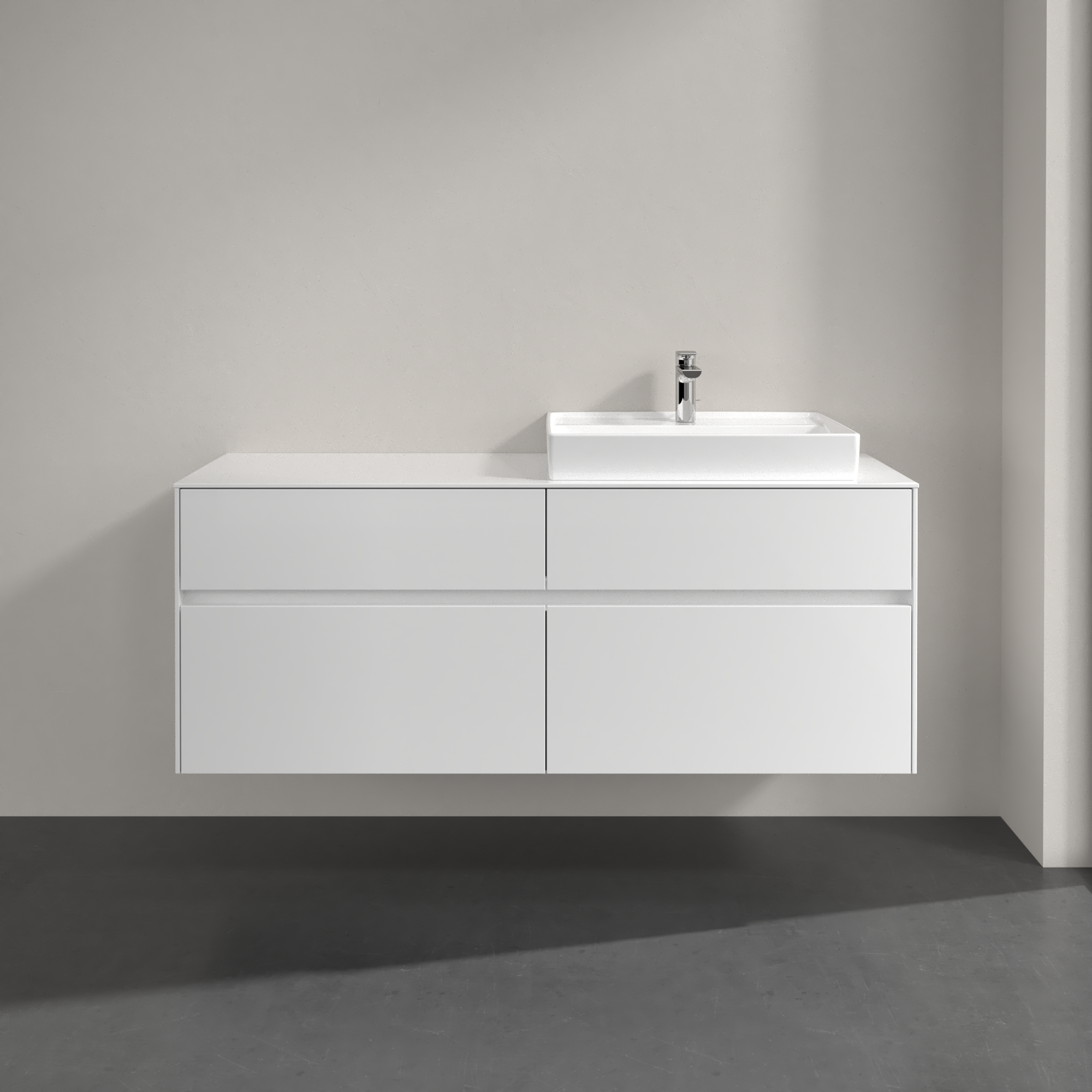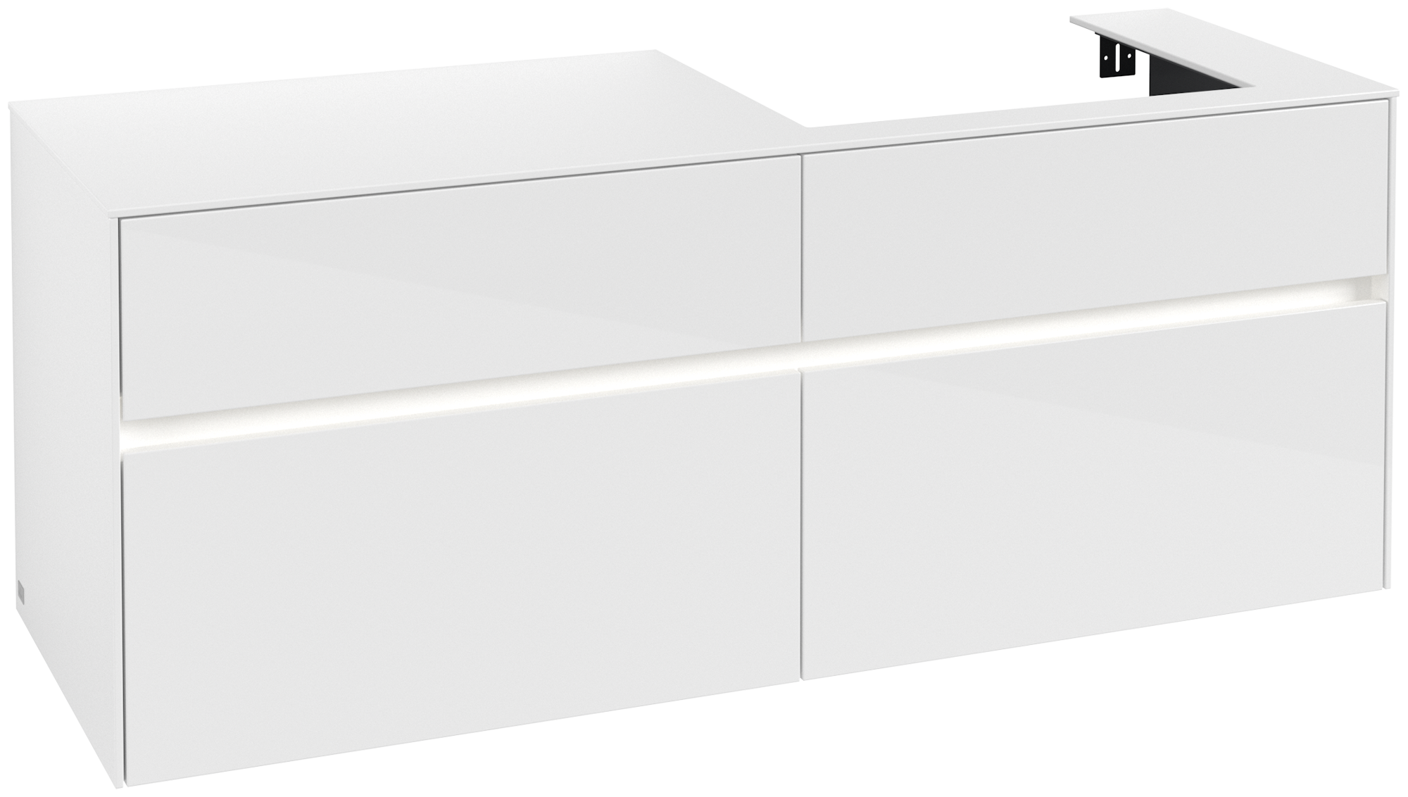Collaro Meuble sous plan, avec éclairage, 4 tiroirs sur rails, 1400x548x500mm, Caisson: Glossy White, Façade: Glossy White