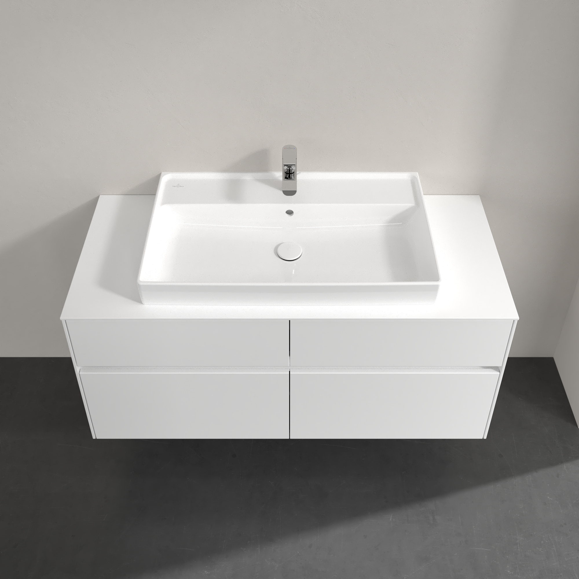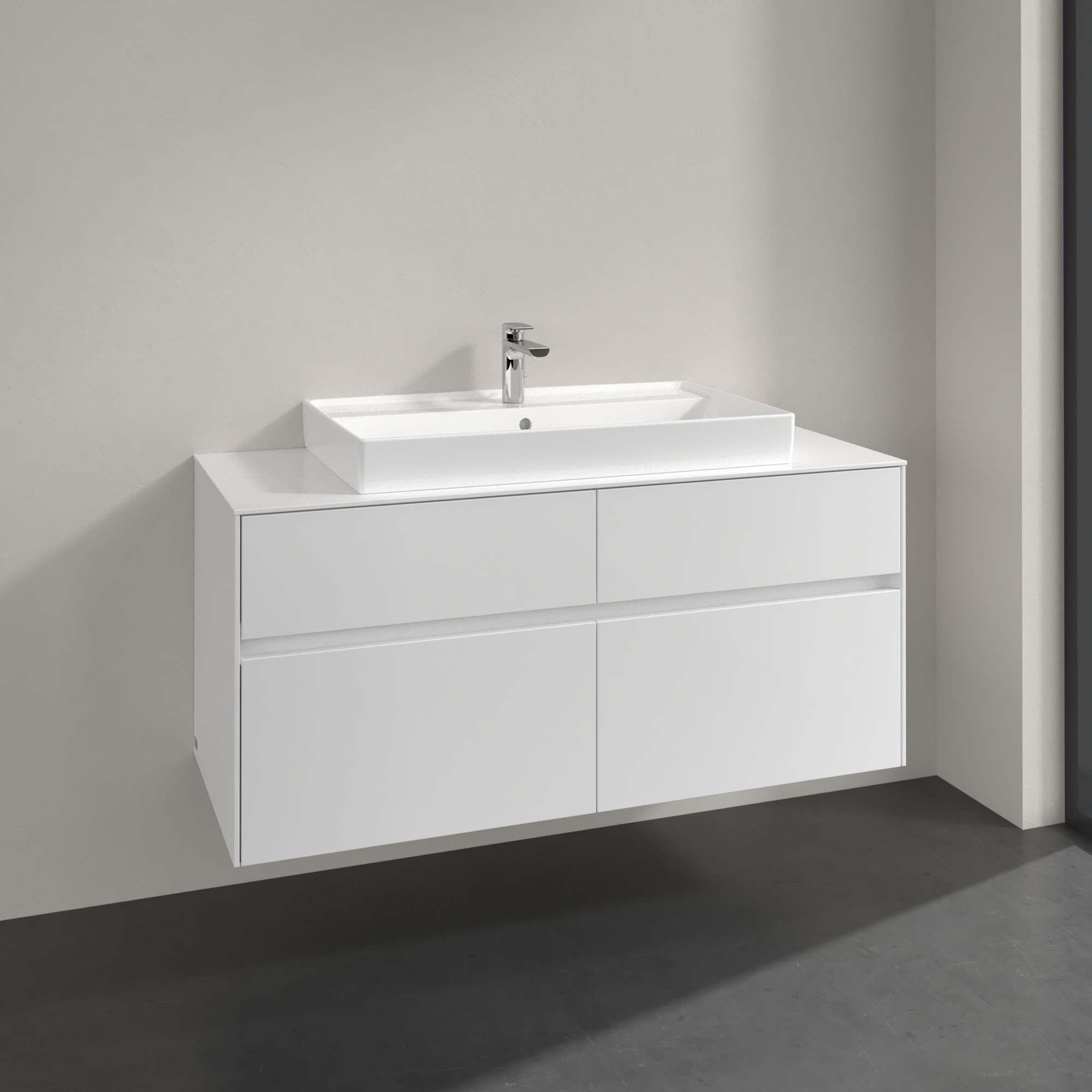 Collaro Meuble sous plan, 4 tiroirs sur rails, 1200x548x500mm, Caisson: Glossy White, Façade: Glossy White
