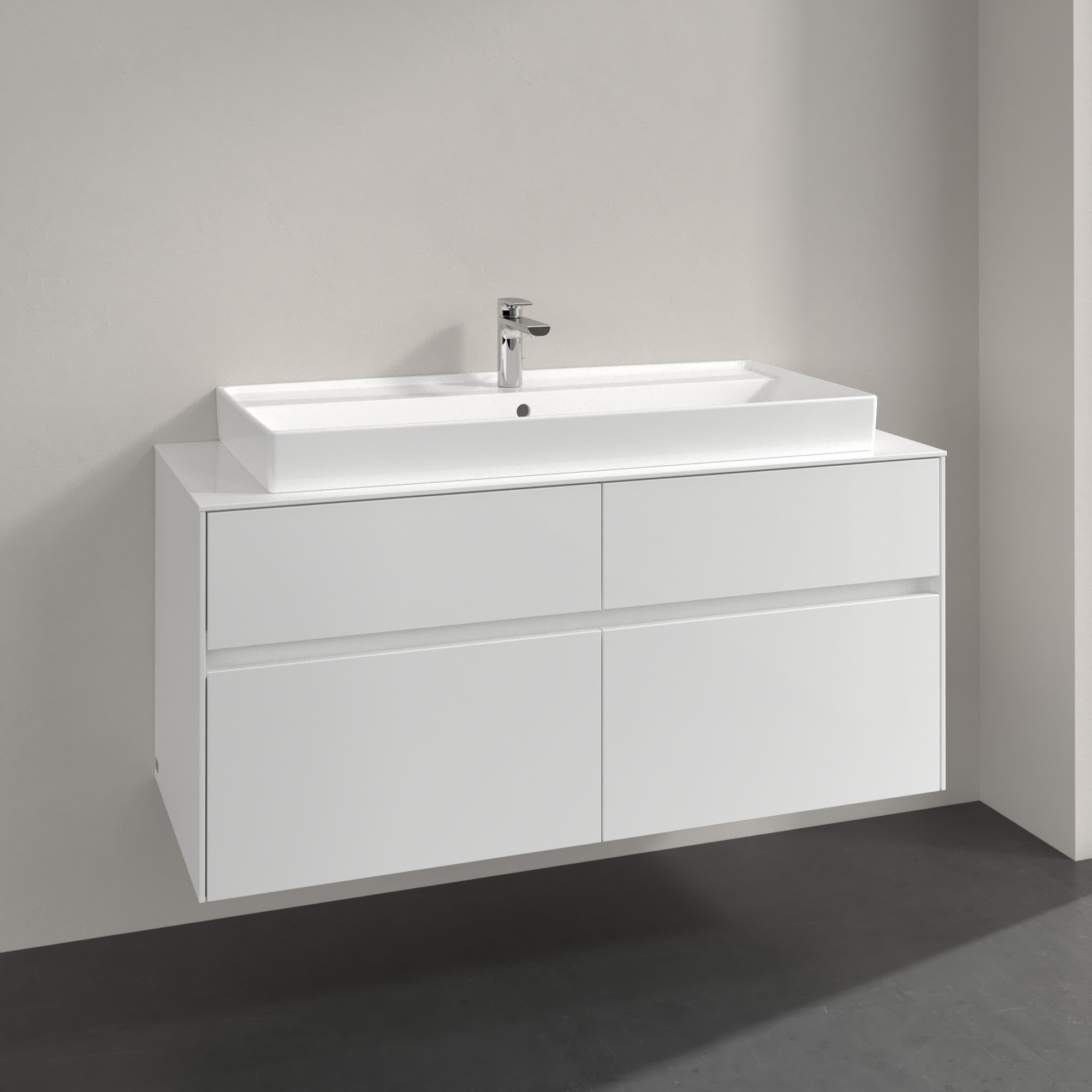 Collaro Meuble sous plan, 4 tiroirs sur rails, 1200x548x500mm, Caisson: Glossy White, Façade: Glossy White