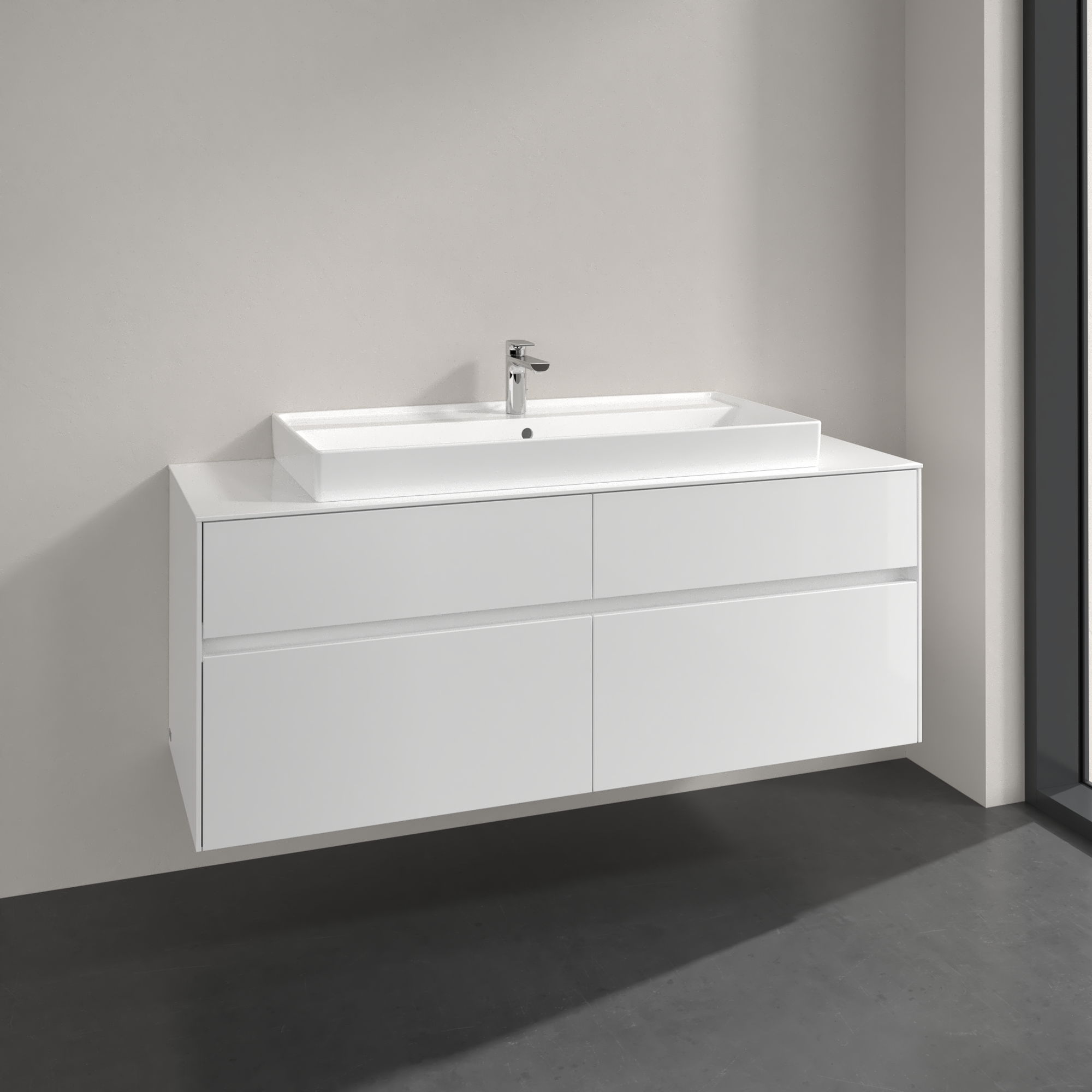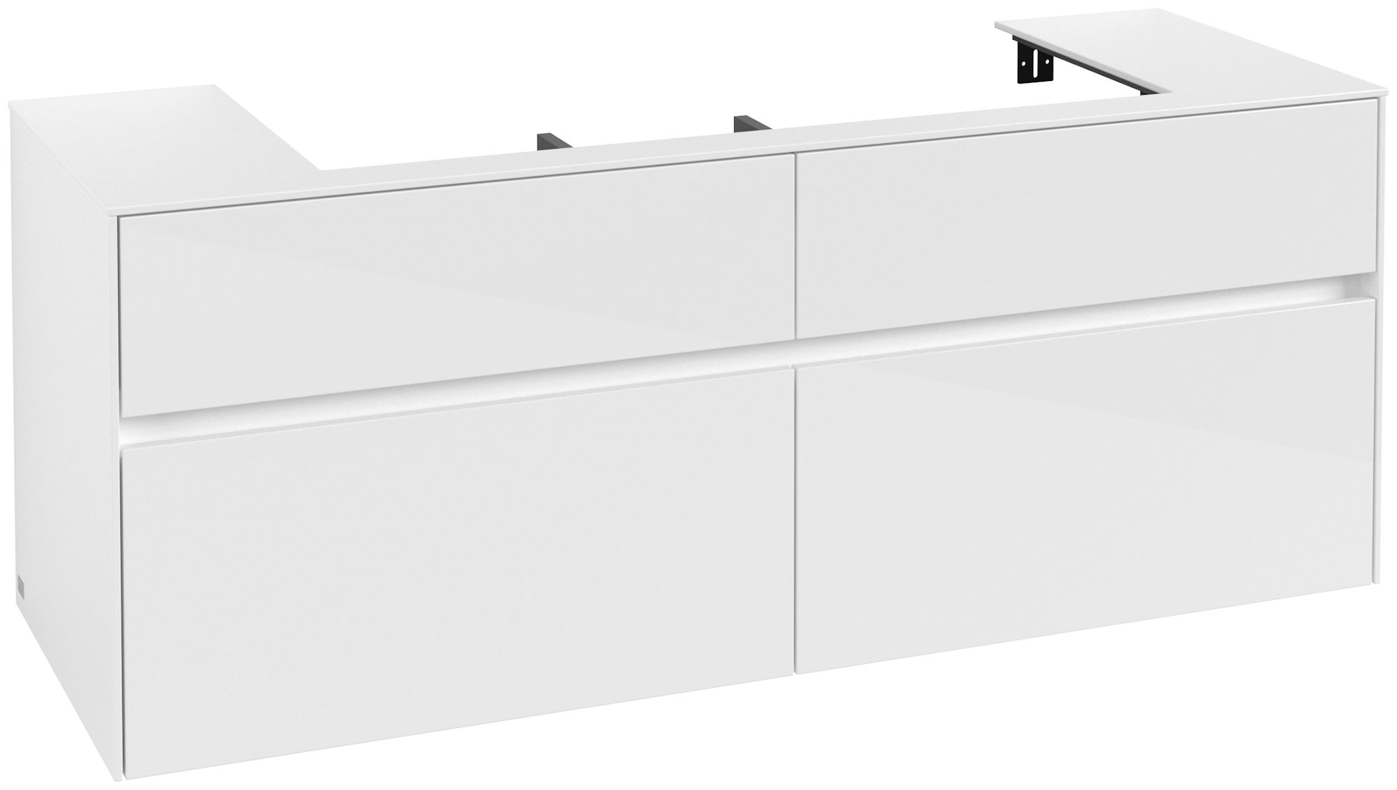 Collaro Meuble sous plan, 4 tiroirs sur rails, 1400x548x500mm, Caisson: Glossy White, Façade: Glossy White