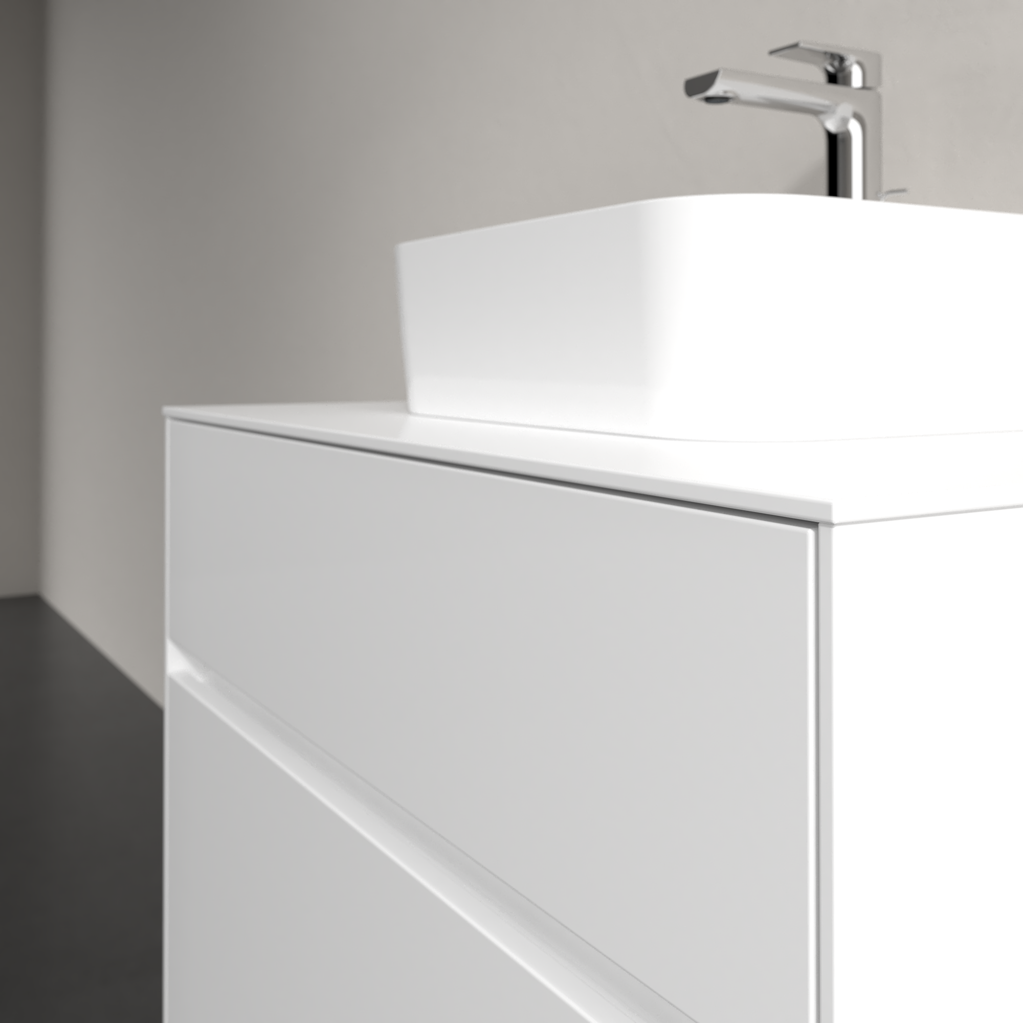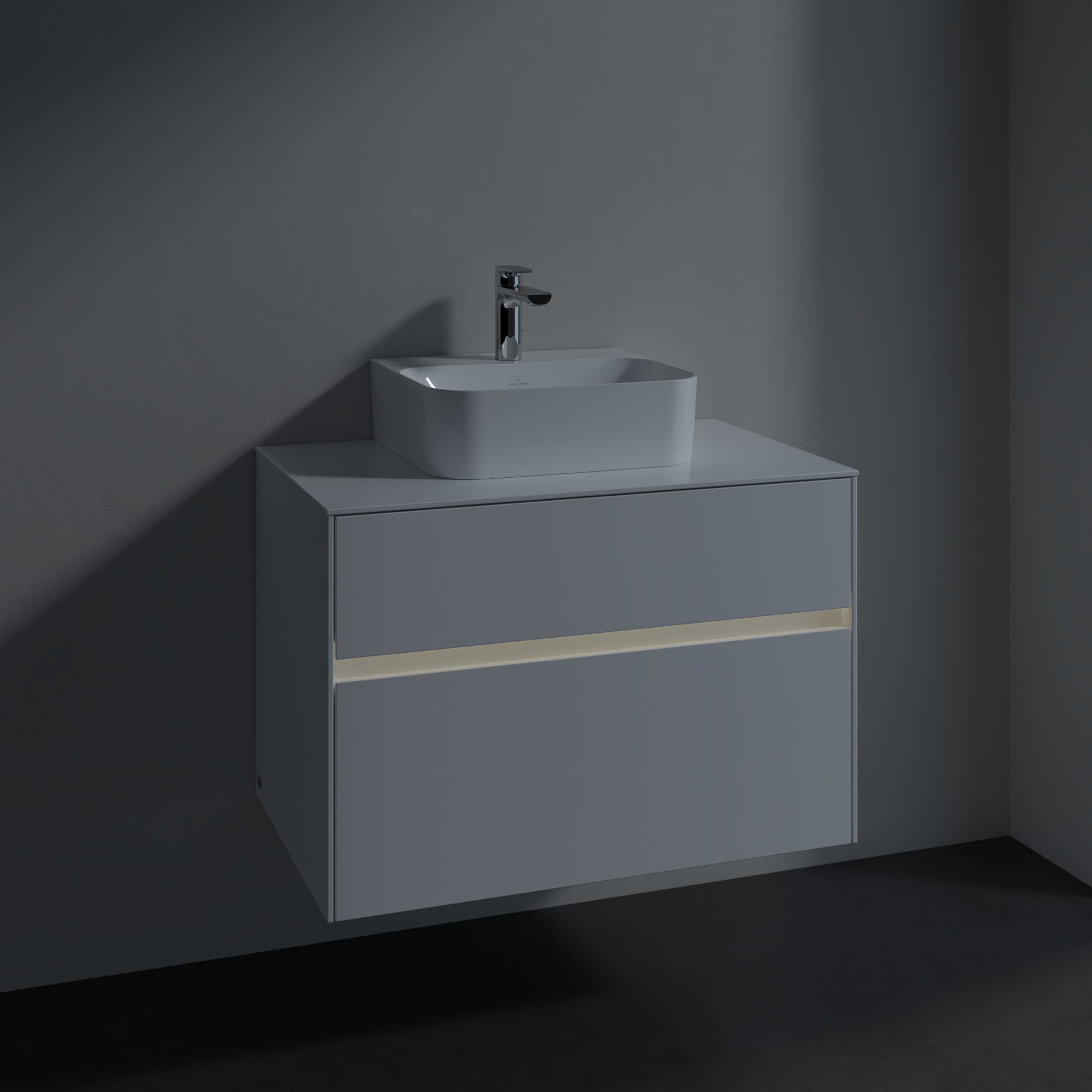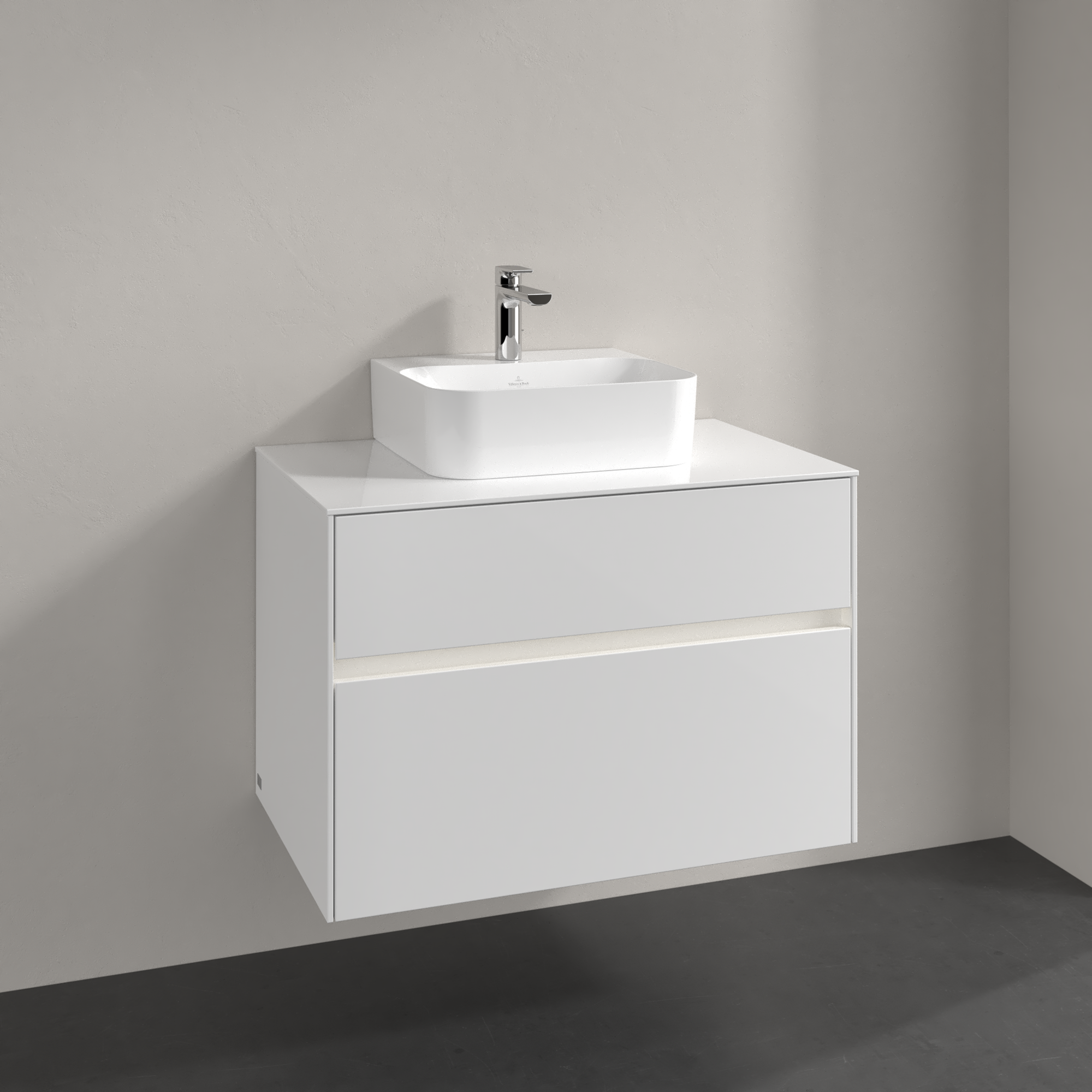Collaro Meuble sous plan, avec éclairage, 2 tiroirs sur rails, 800x548x500mm, Caisson: Glossy White, Façade: Glossy White