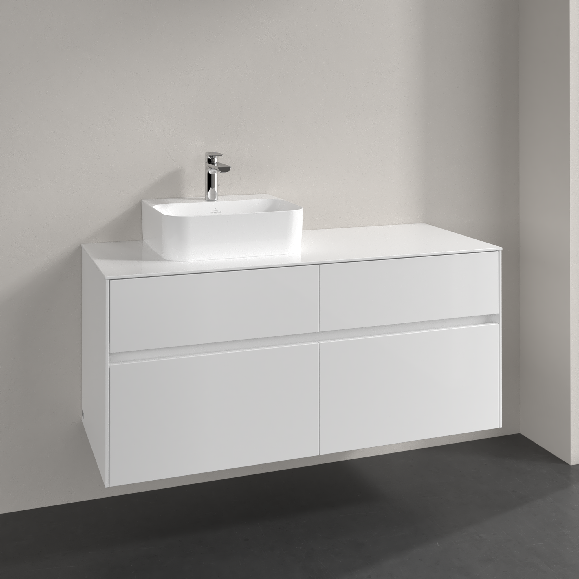 Collaro Meuble sous plan, 4 tiroirs sur rails, 1200x548x500mm, Caisson: Glossy White, Façade: Glossy White