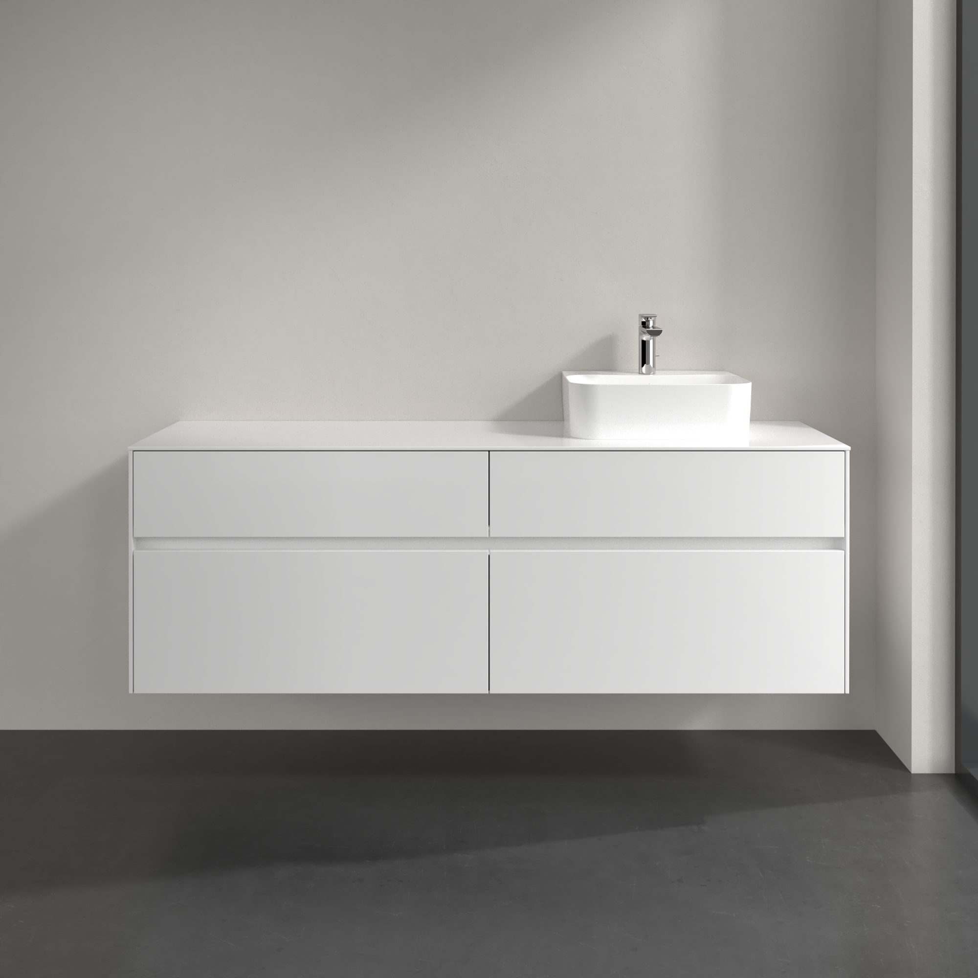 Collaro Meuble sous plan, 4 tiroirs sur rails, 1600x548x500mm, Caisson: Glossy White, Façade: Glossy White