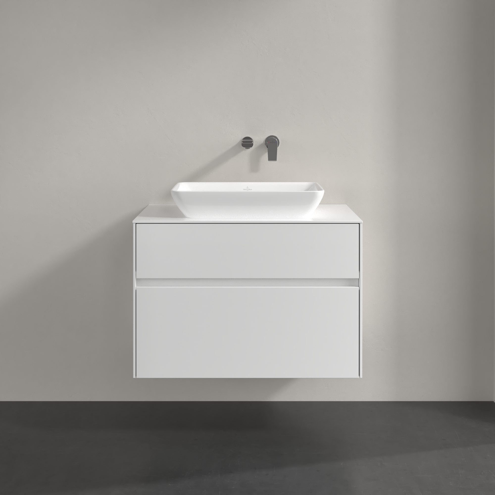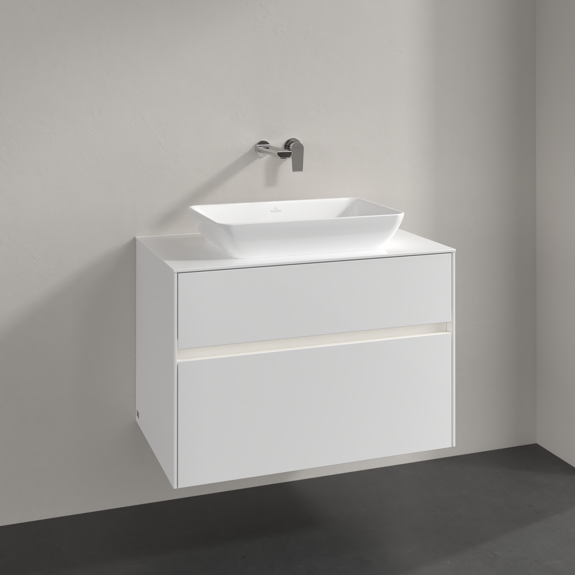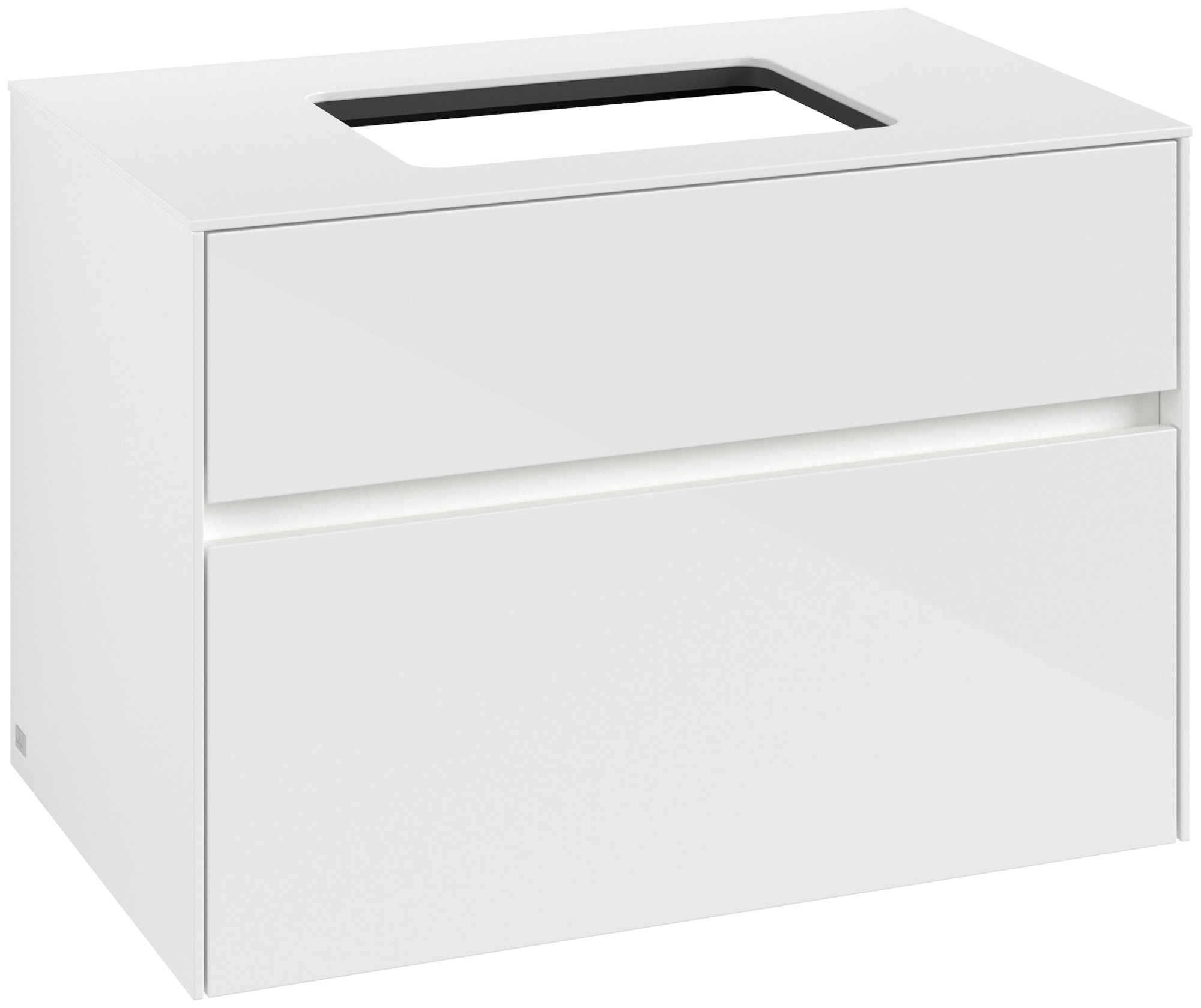 Collaro Meuble sous plan, avec éclairage, 2 tiroirs sur rails, 800x548x500mm, Caisson: Glossy White, Façade: Glossy White