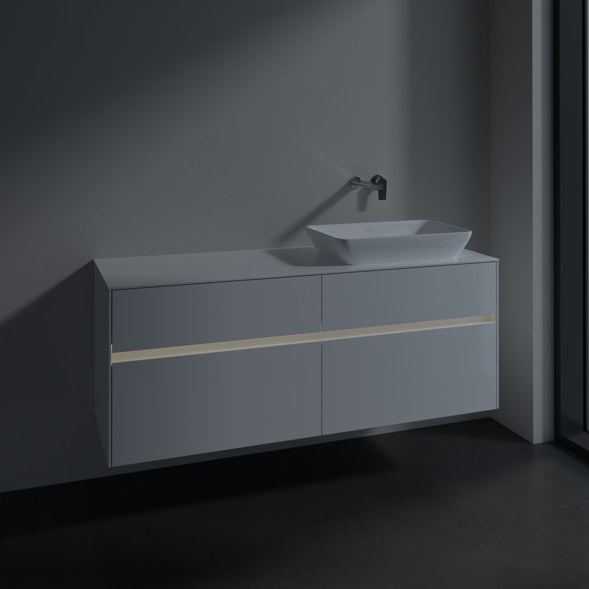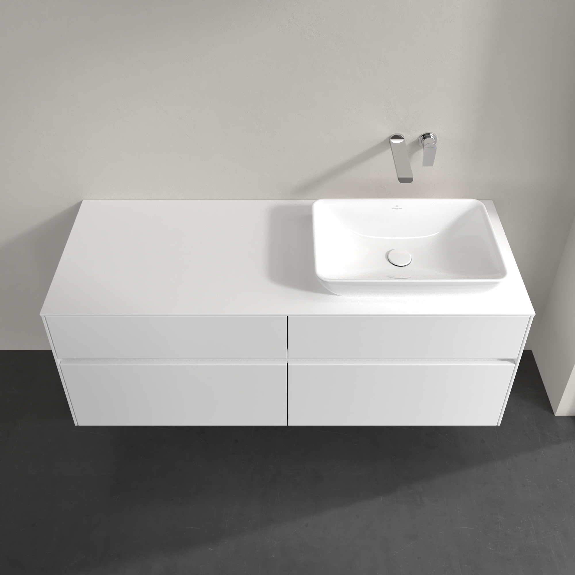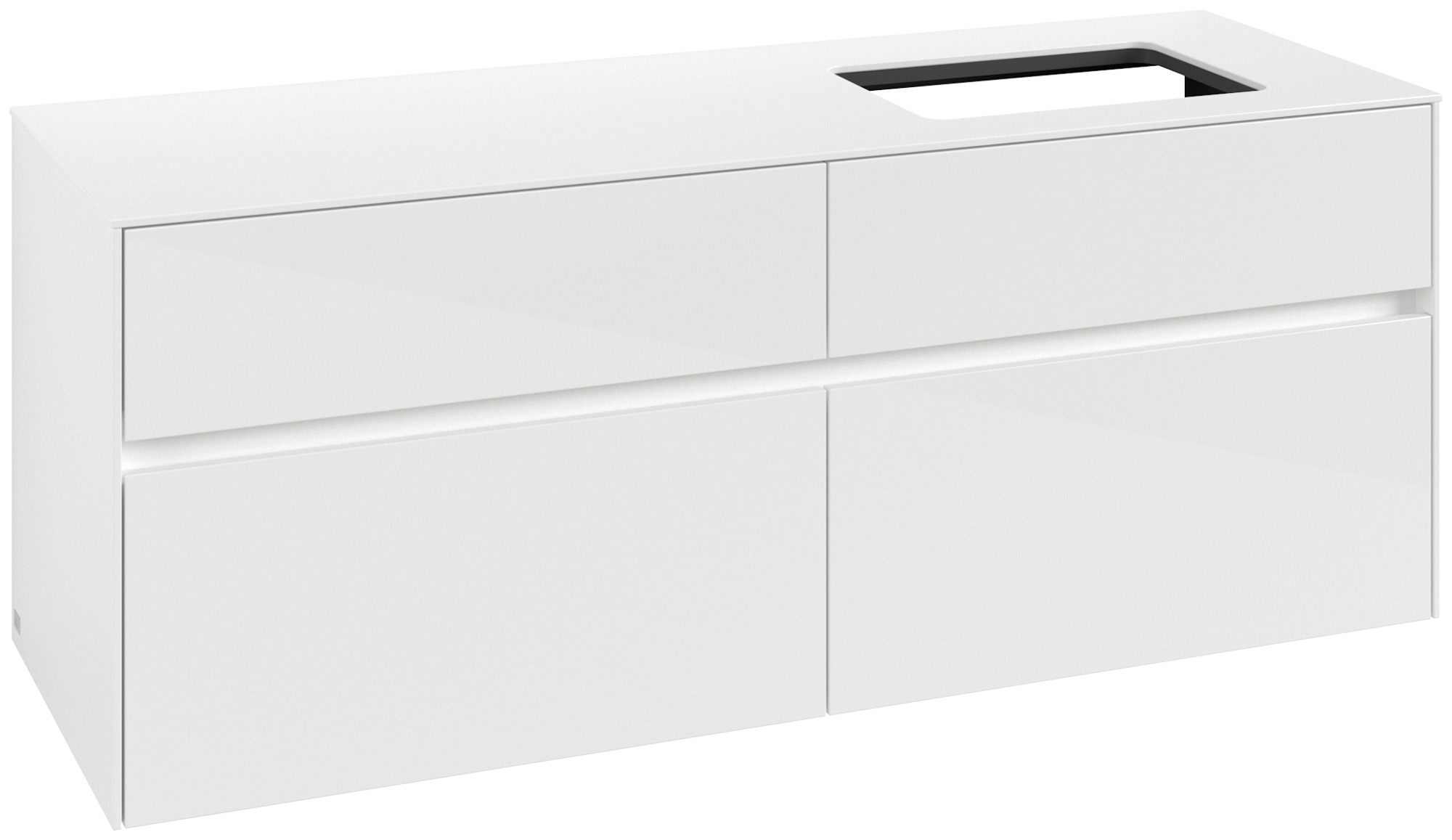 Collaro Meuble sous plan, avec éclairage, 4 tiroirs sur rails, 1400x548x500mm, Caisson: Glossy White, Façade: Glossy White