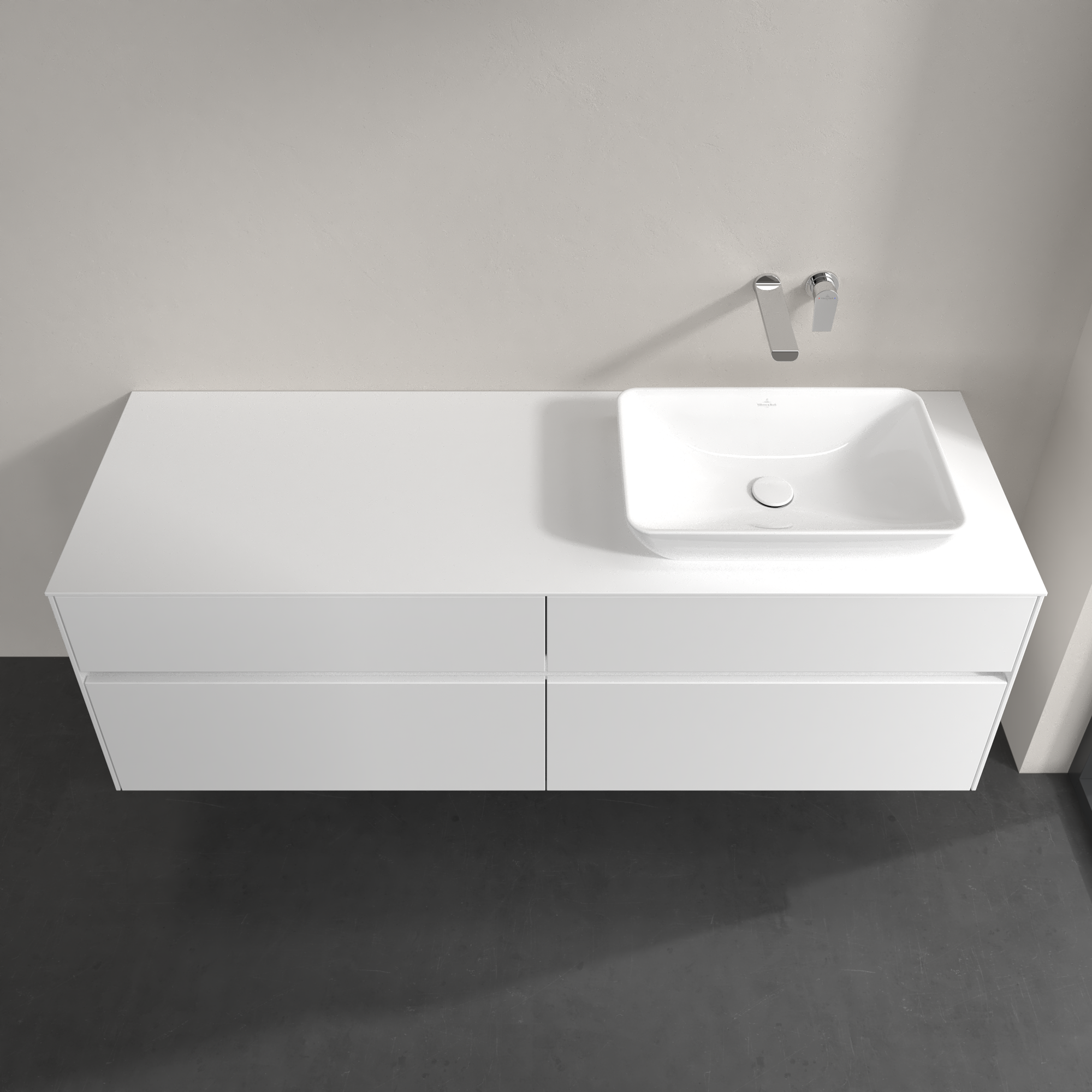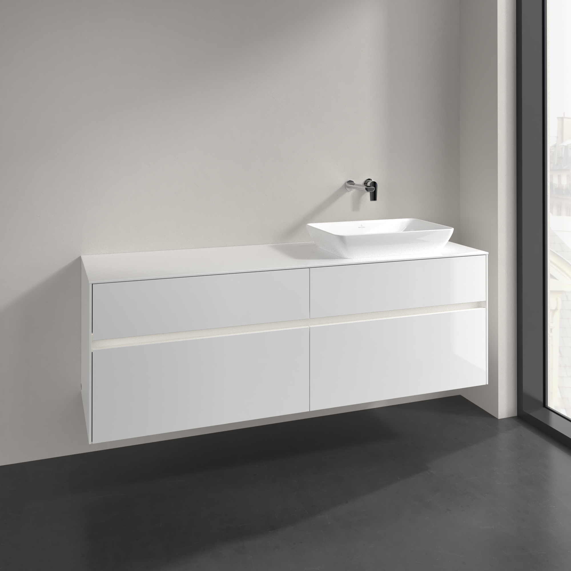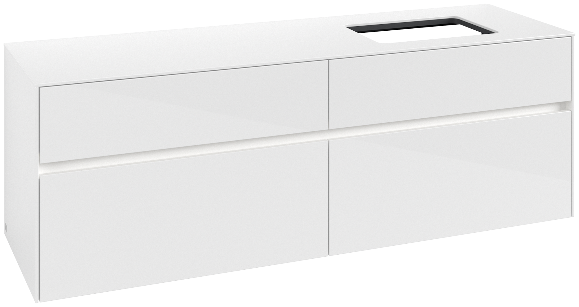 Collaro Meuble sous plan, avec éclairage, 4 tiroirs sur rails, 1600x548x500mm, Caisson: Glossy White, Façade: Glossy White