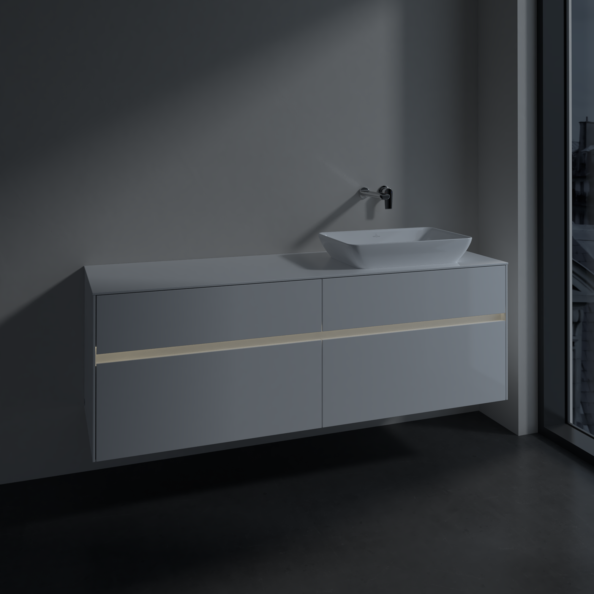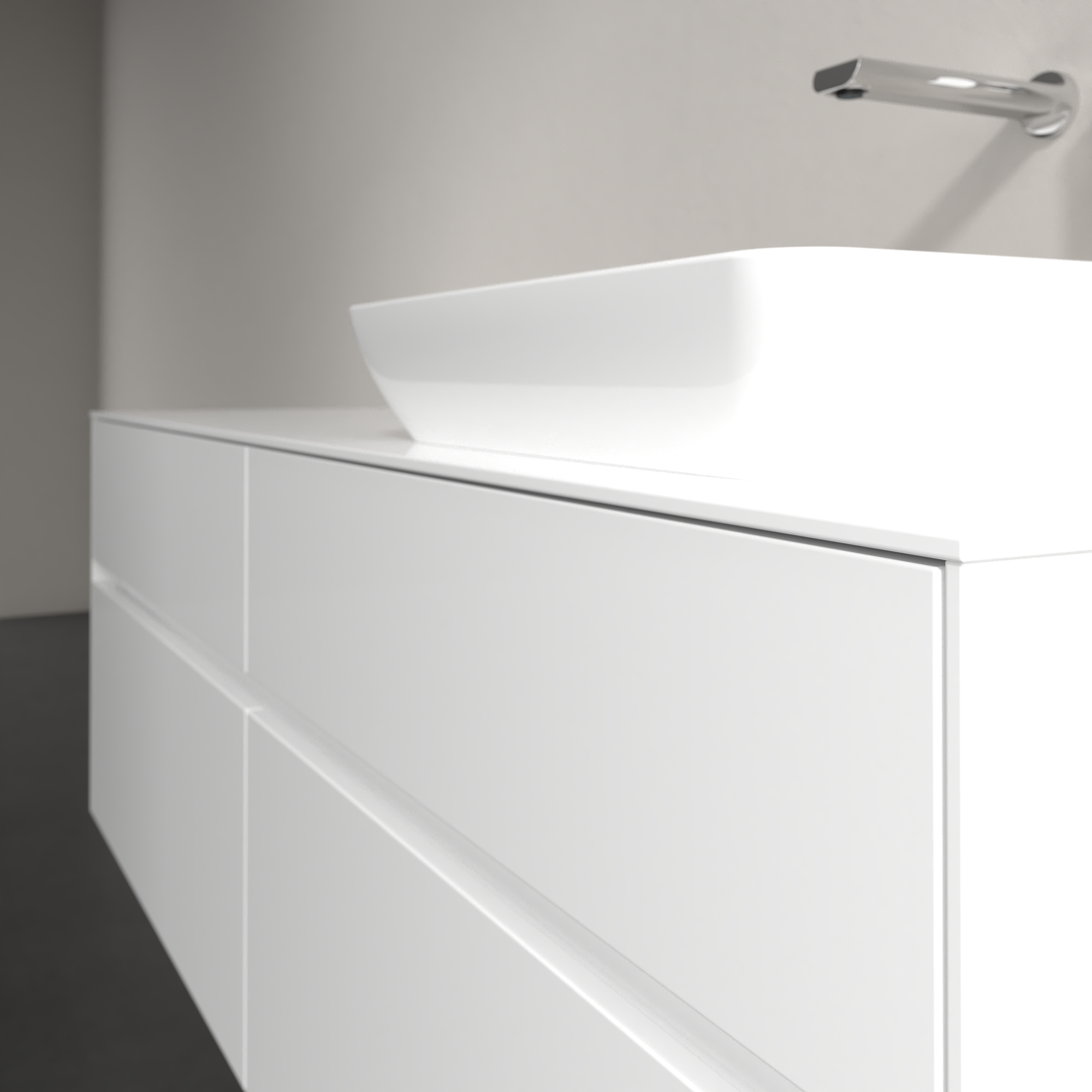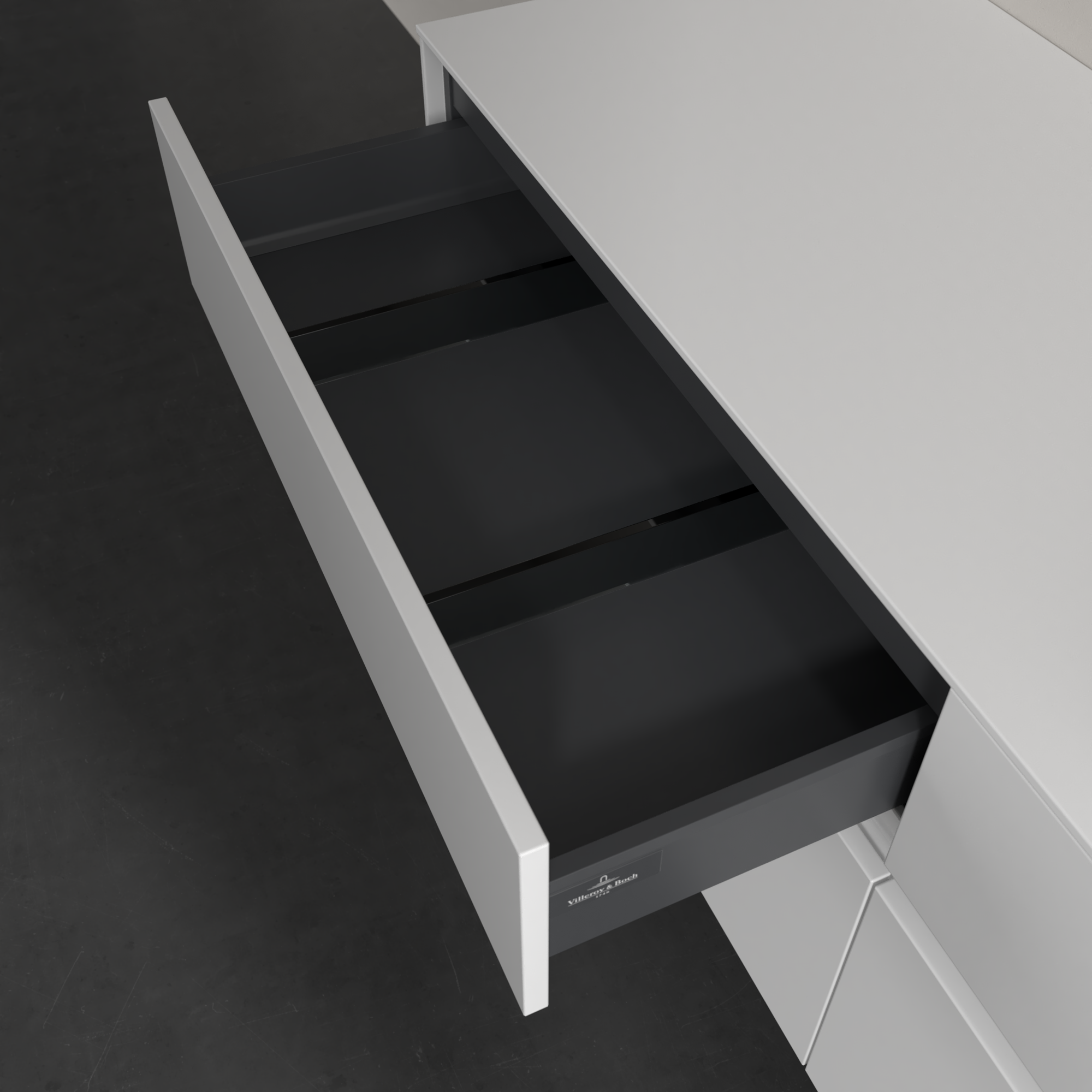Collaro Meuble sous plan, avec éclairage, 4 tiroirs sur rails, 1600x548x500mm, Caisson: Glossy White, Façade: Glossy White