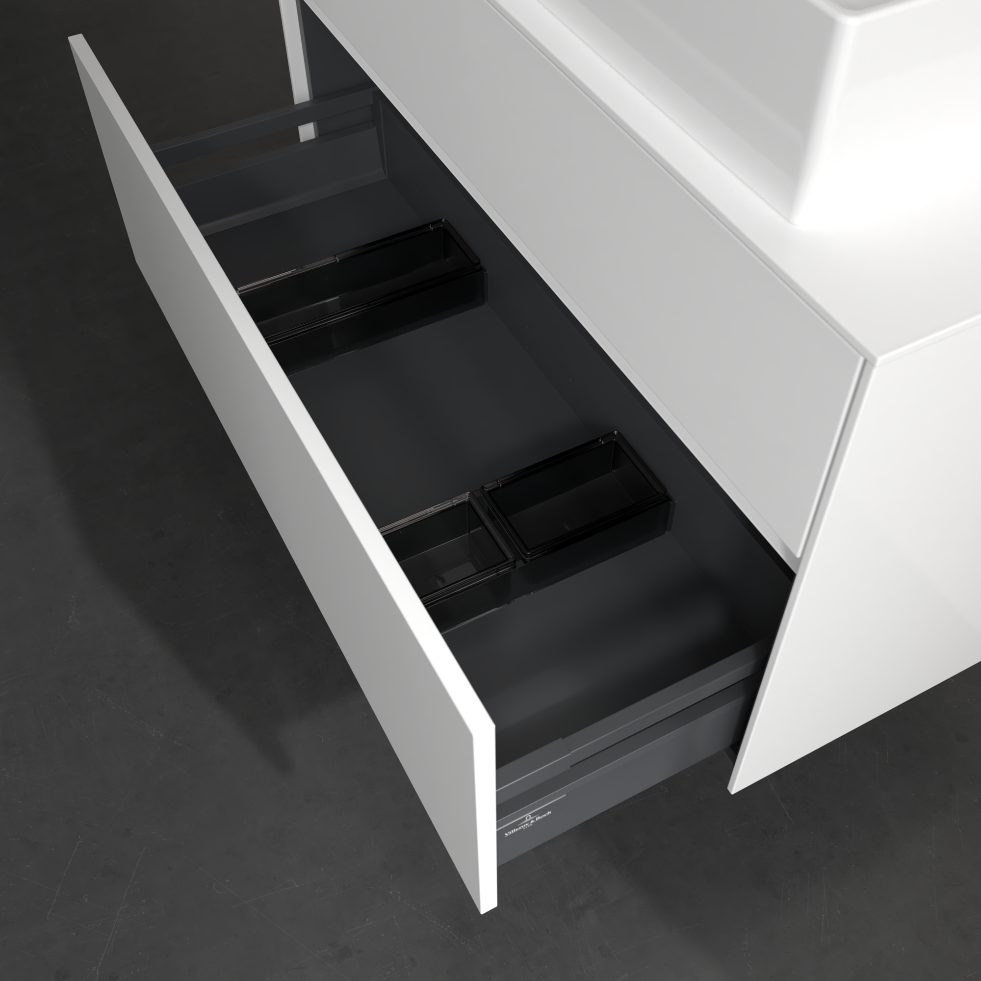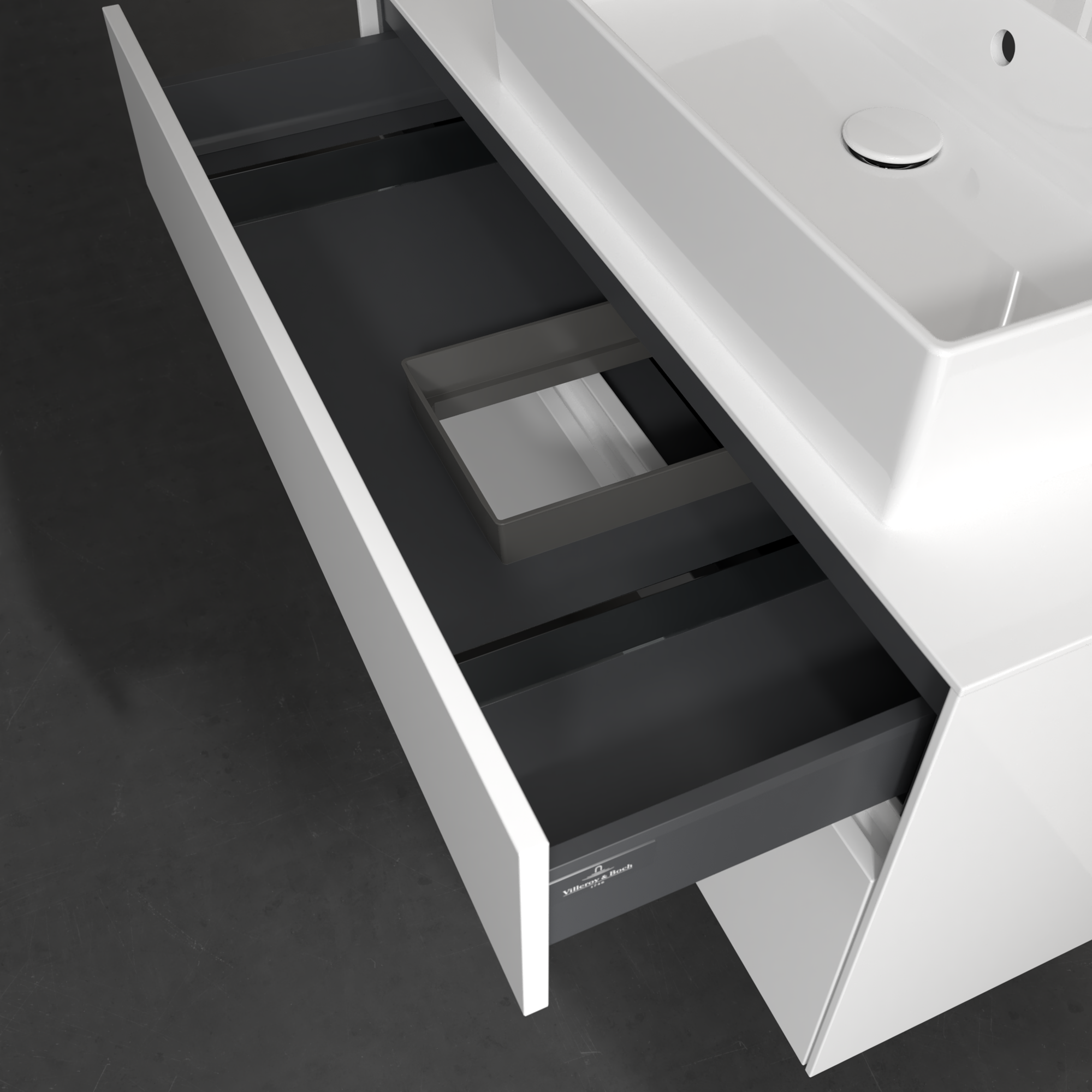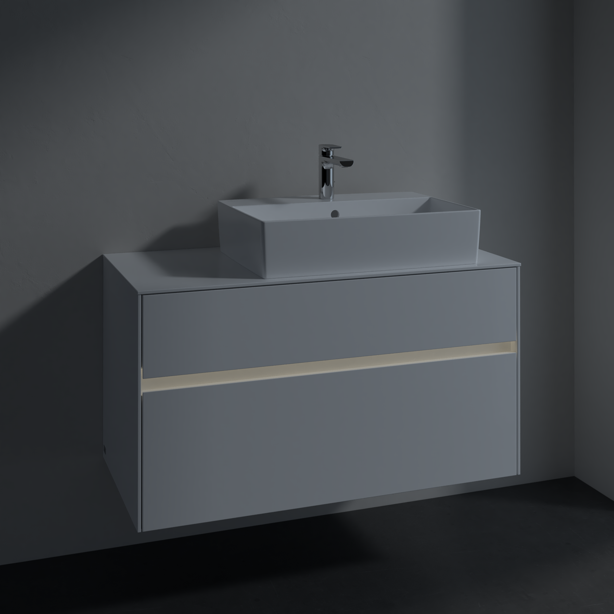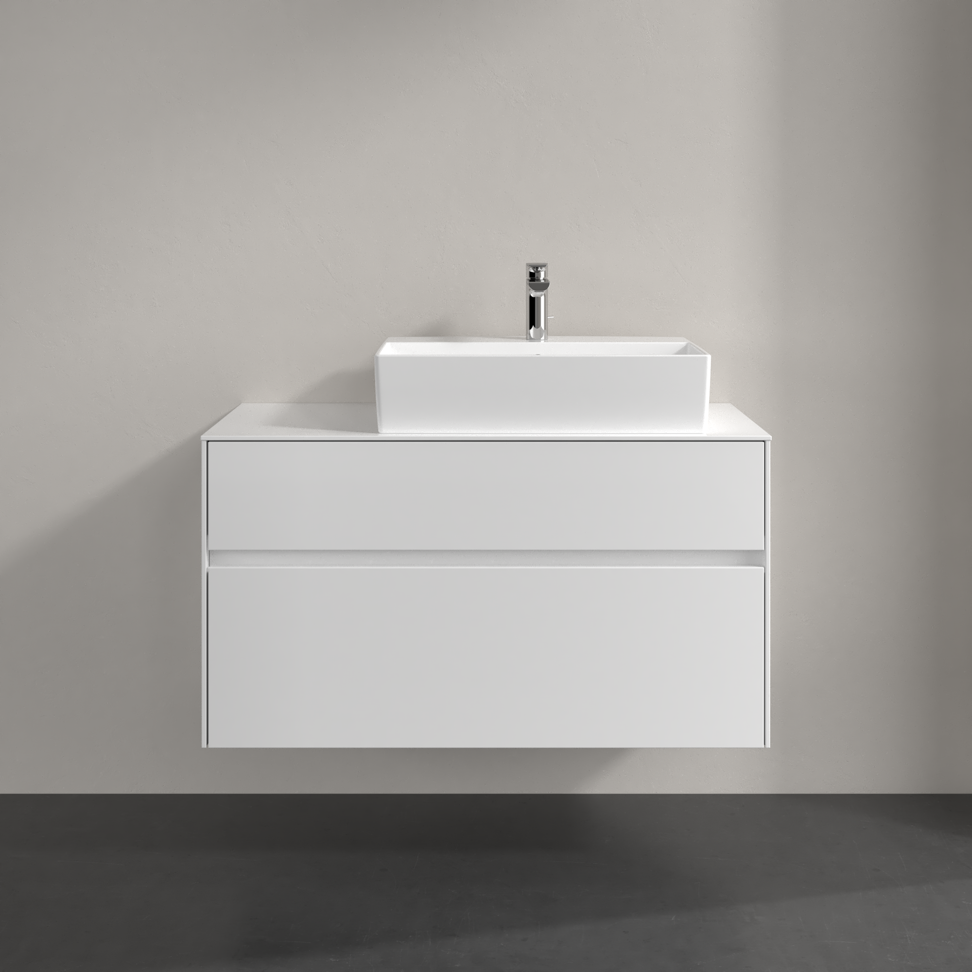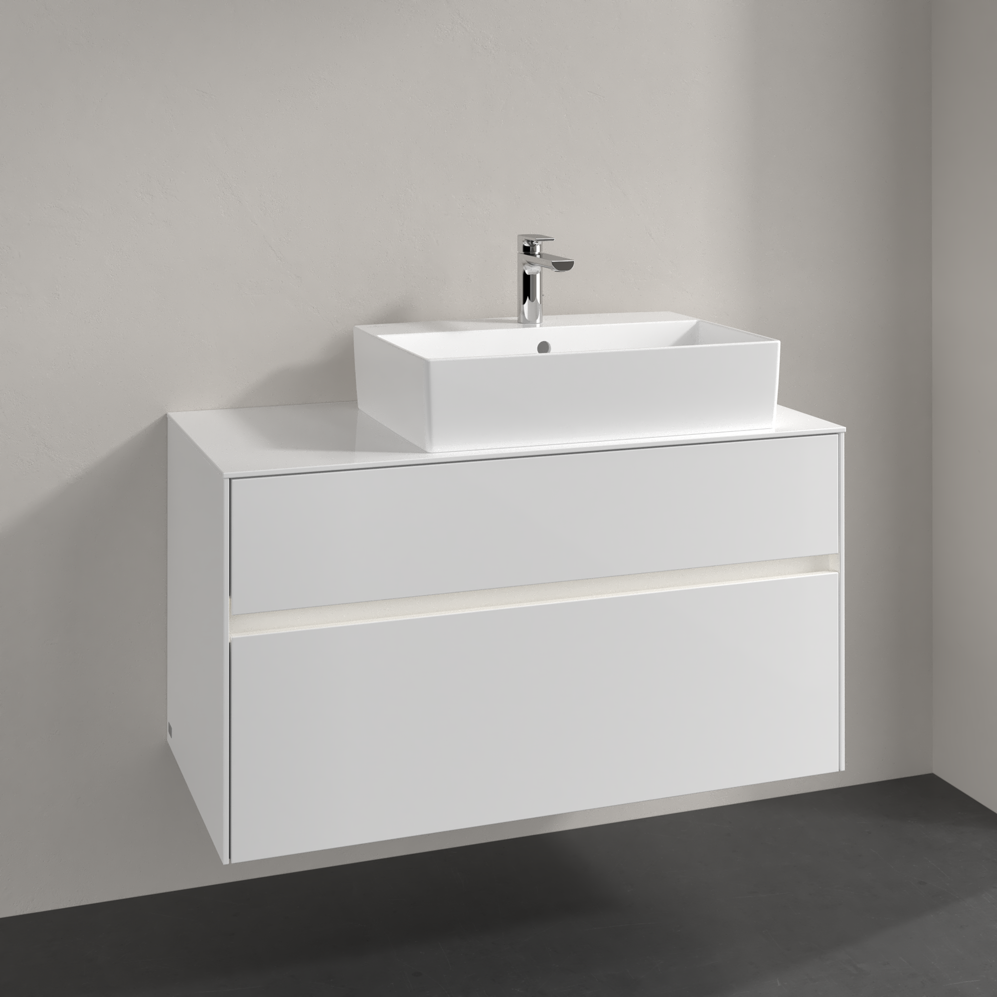 Collaro Meuble sous plan, avec éclairage, 2 tiroirs sur rails, 1000x548x500mm, Caisson: Glossy White, Façade: Glossy White