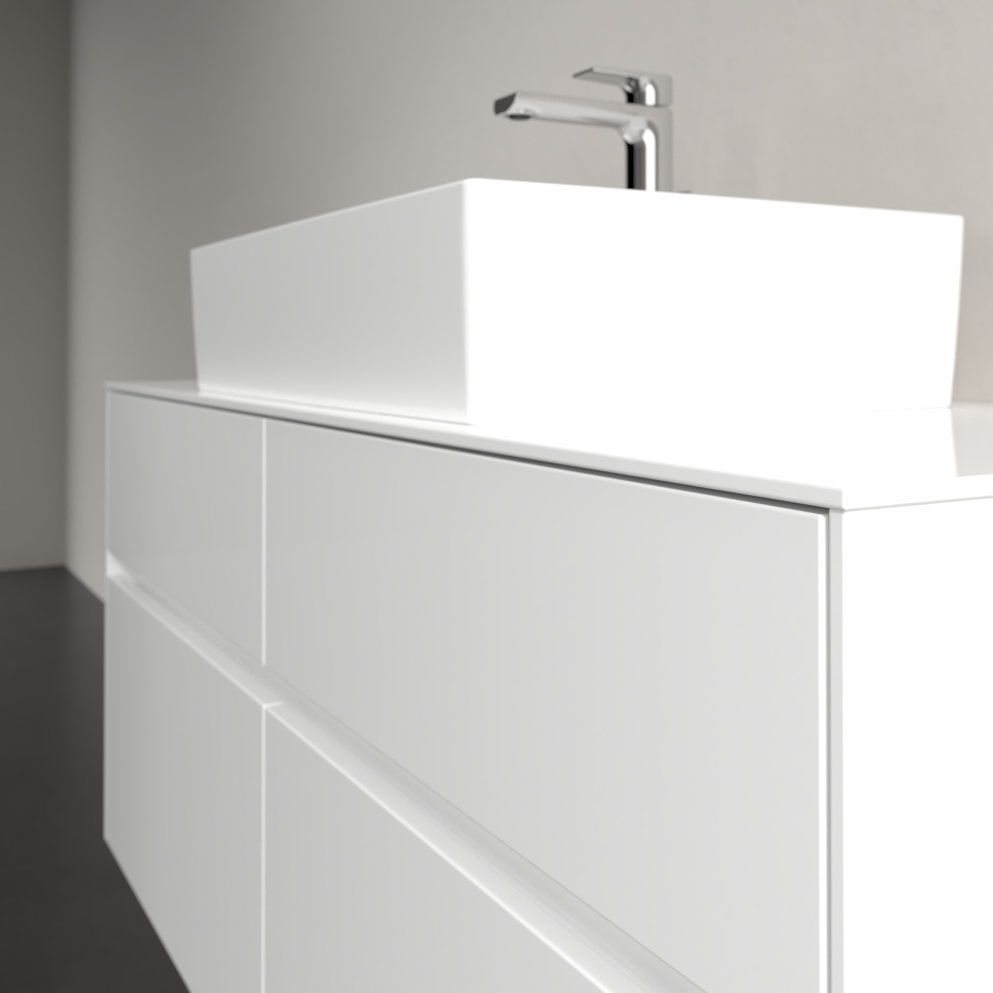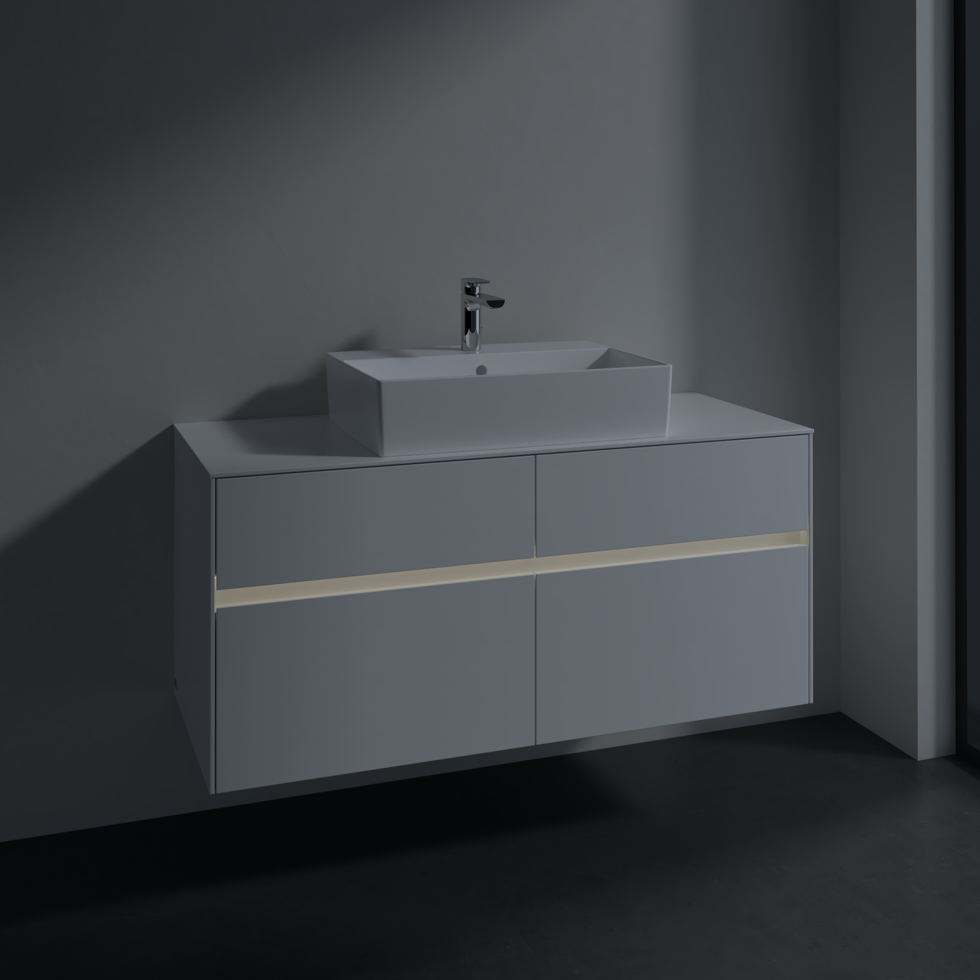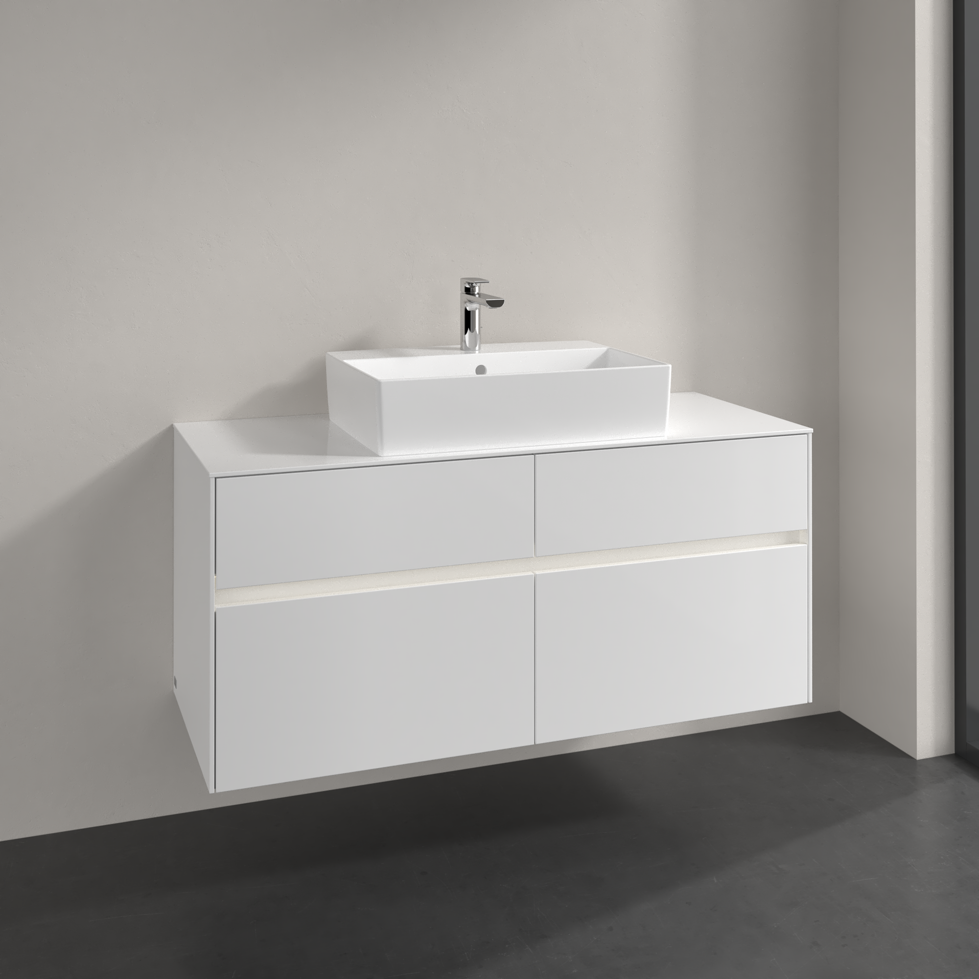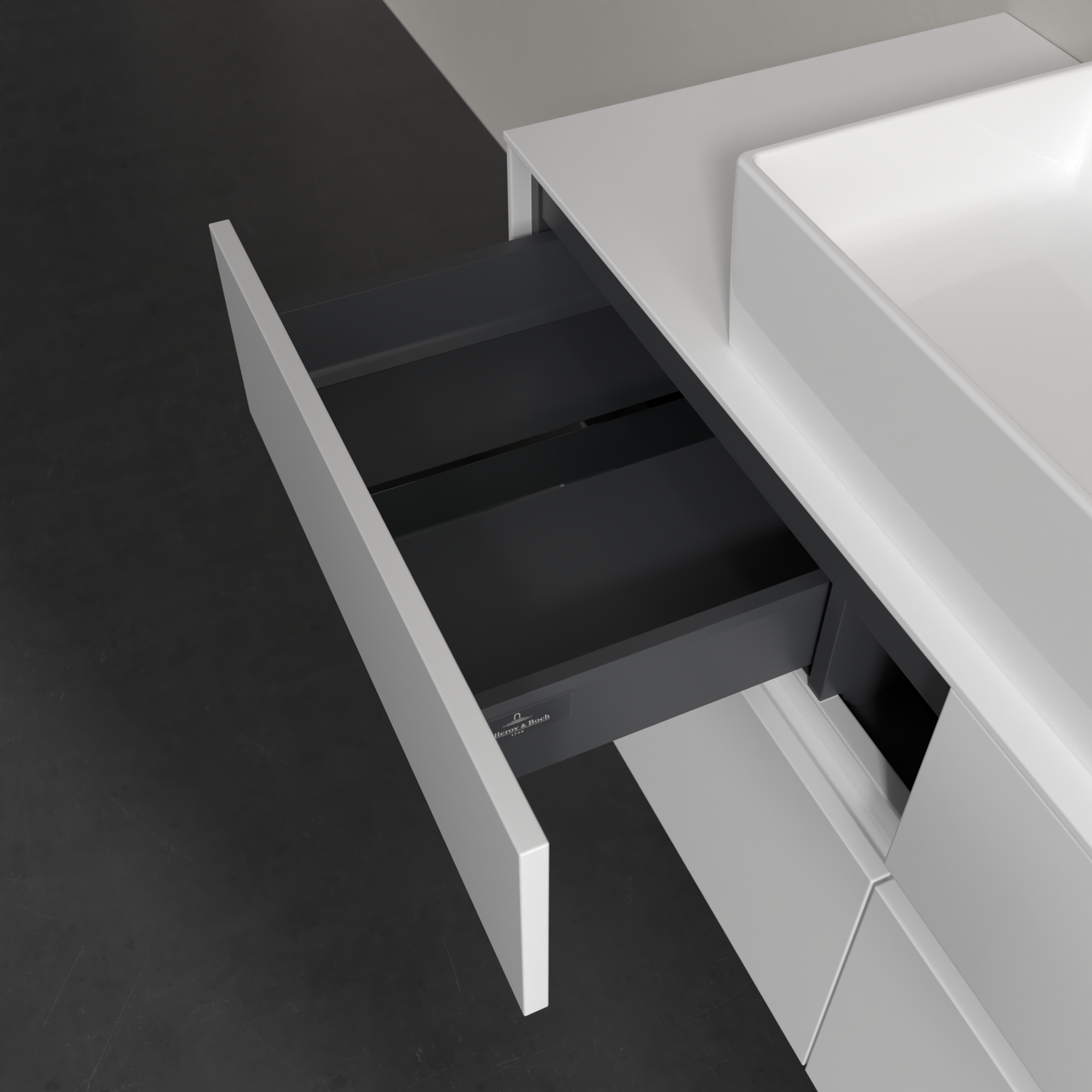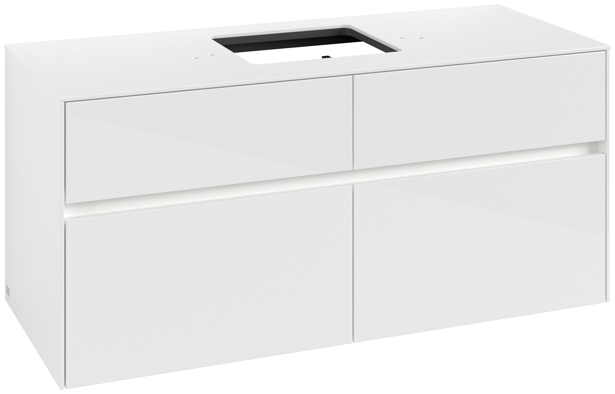 Collaro Meuble sous plan, avec éclairage, 4 tiroirs sur rails, 500x548x1200mm, Caisson: Glossy White, Façade: Glossy White