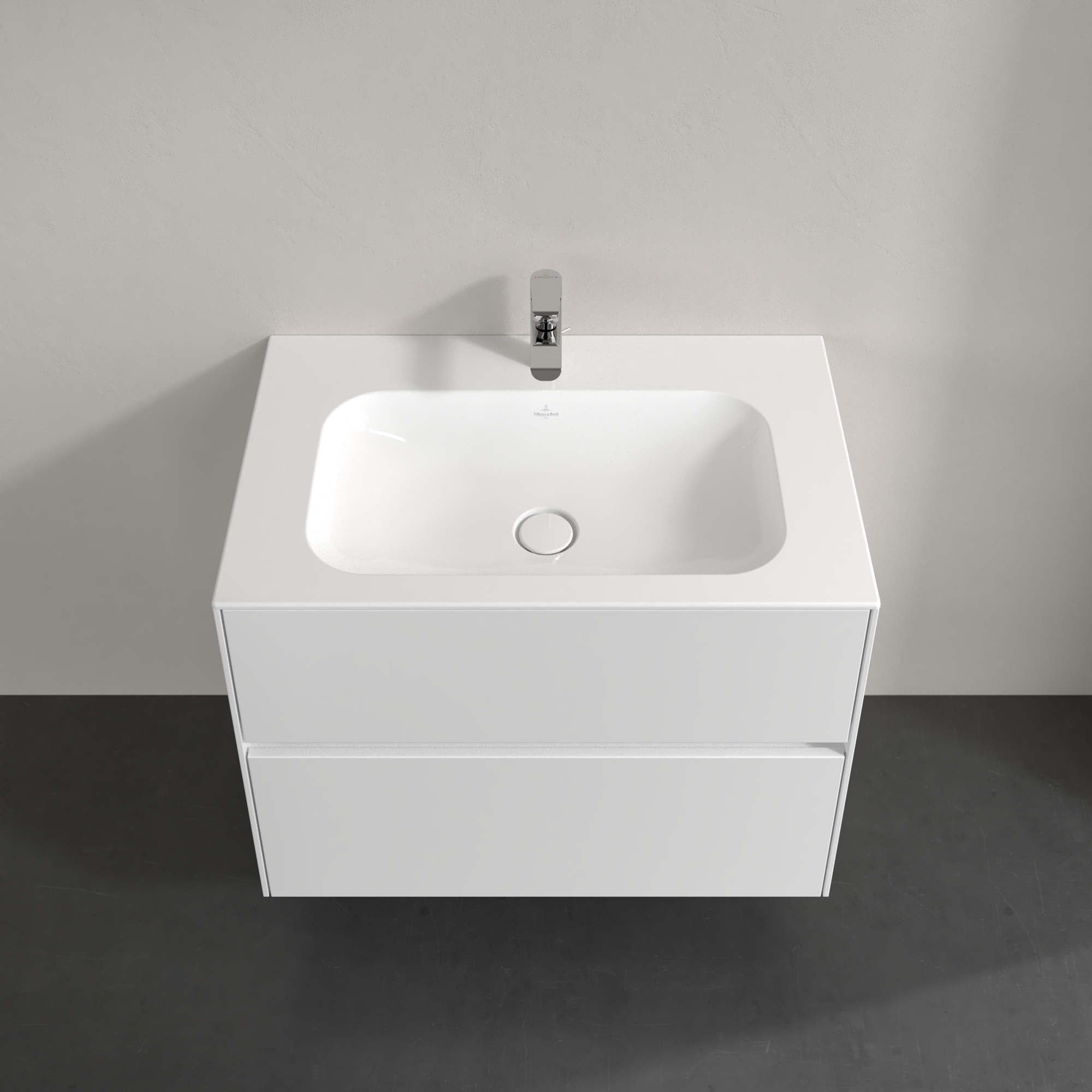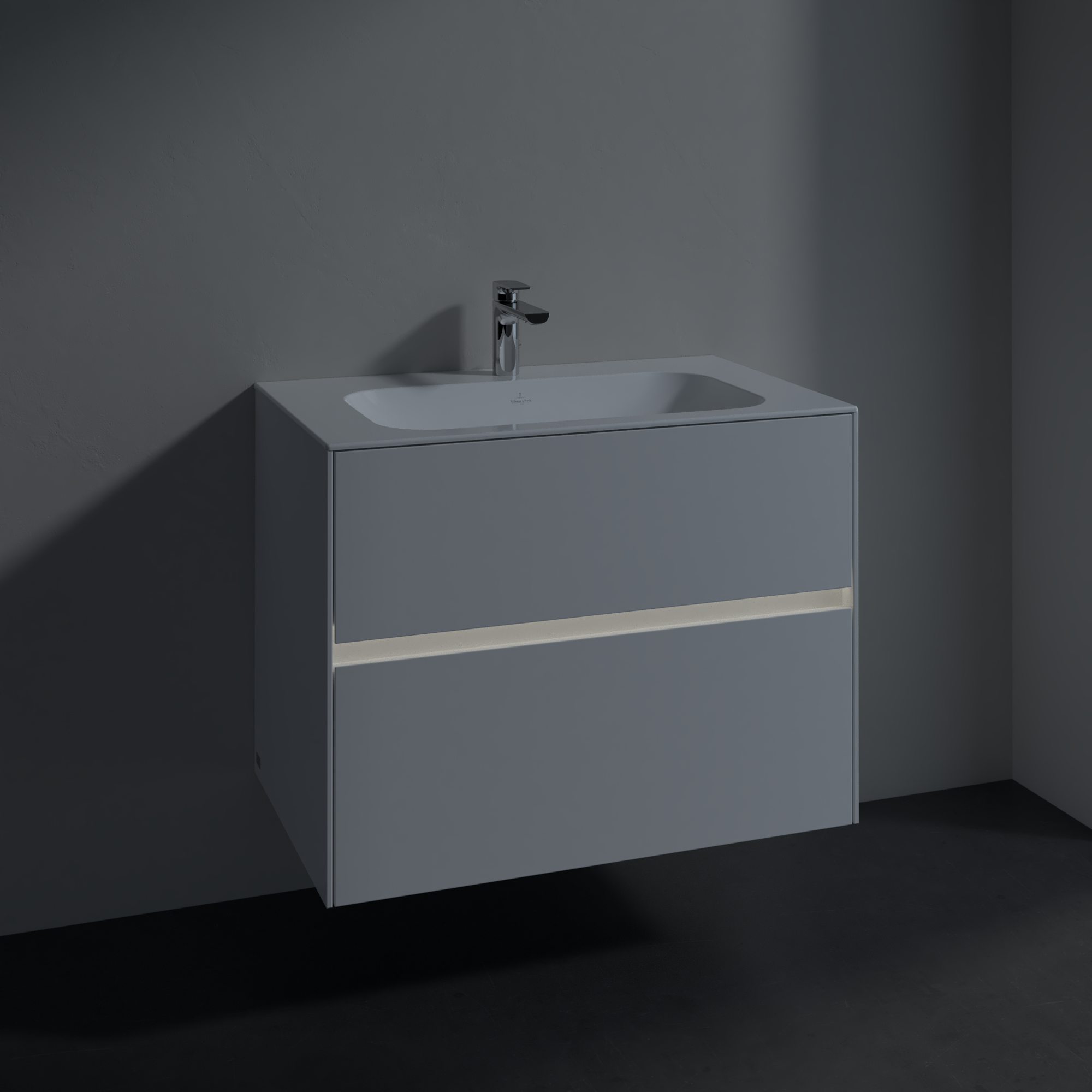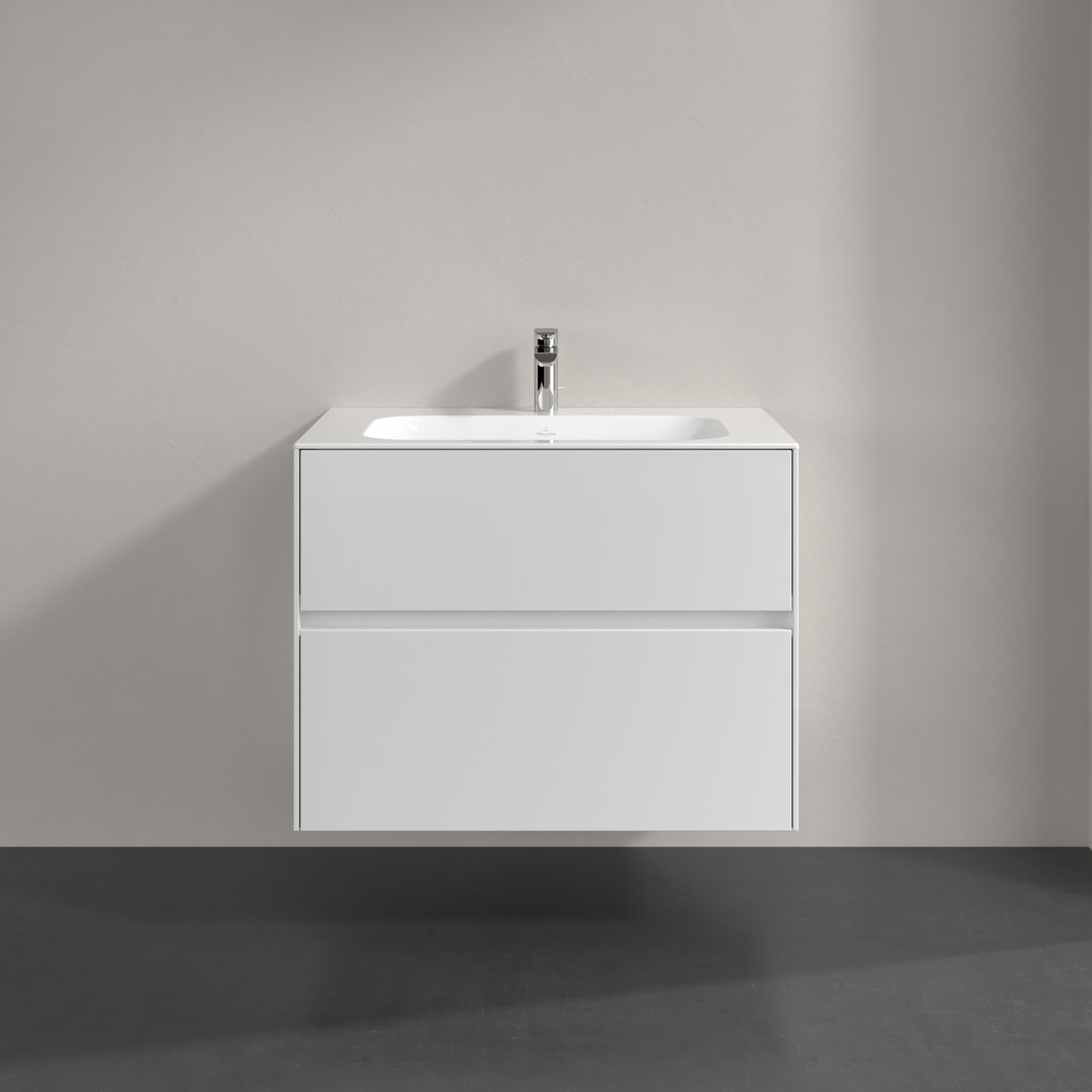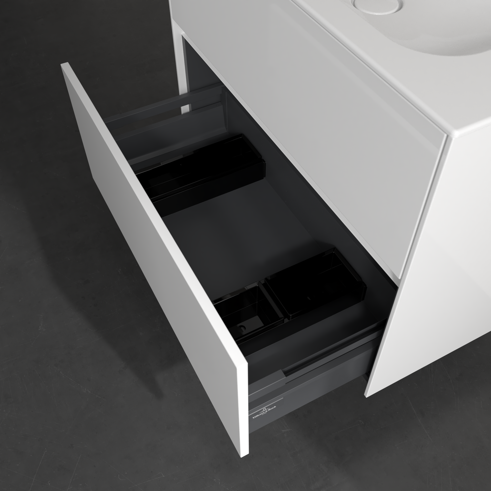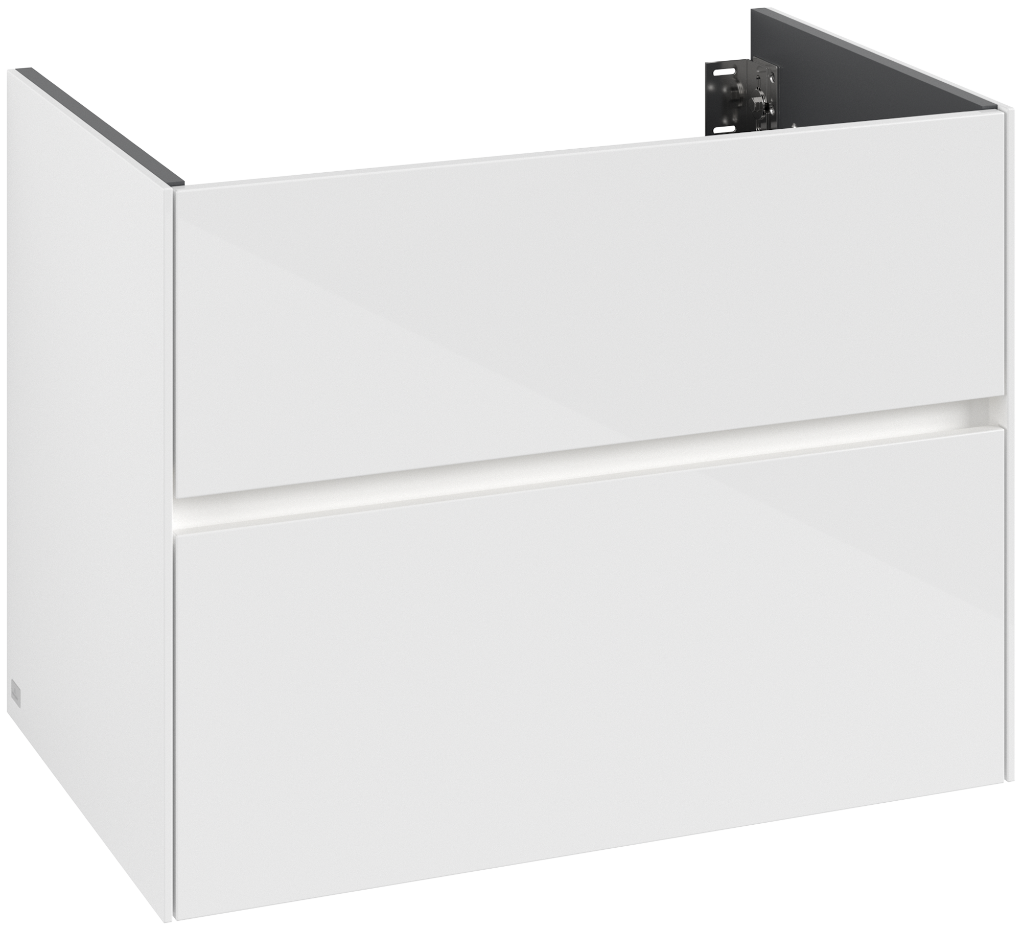 Collaro Meuble sous plan, avec éclairage, 2 tiroirs sur rails, 796x603x498mm, Caisson: Glossy White, Façade: Glossy White