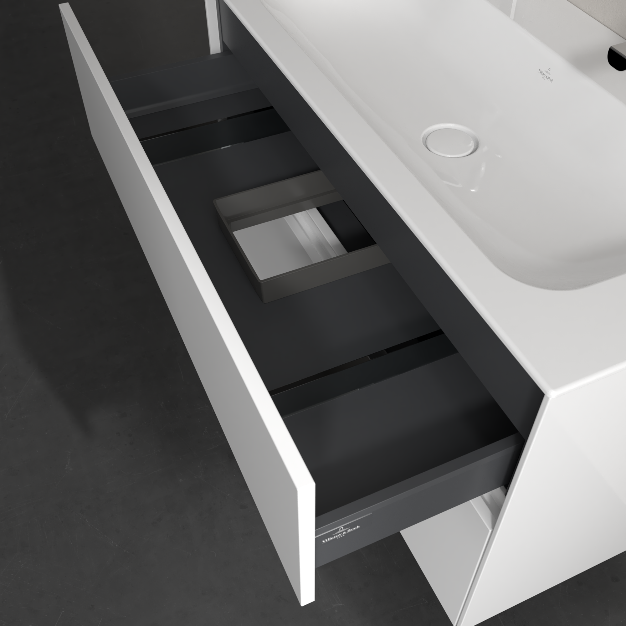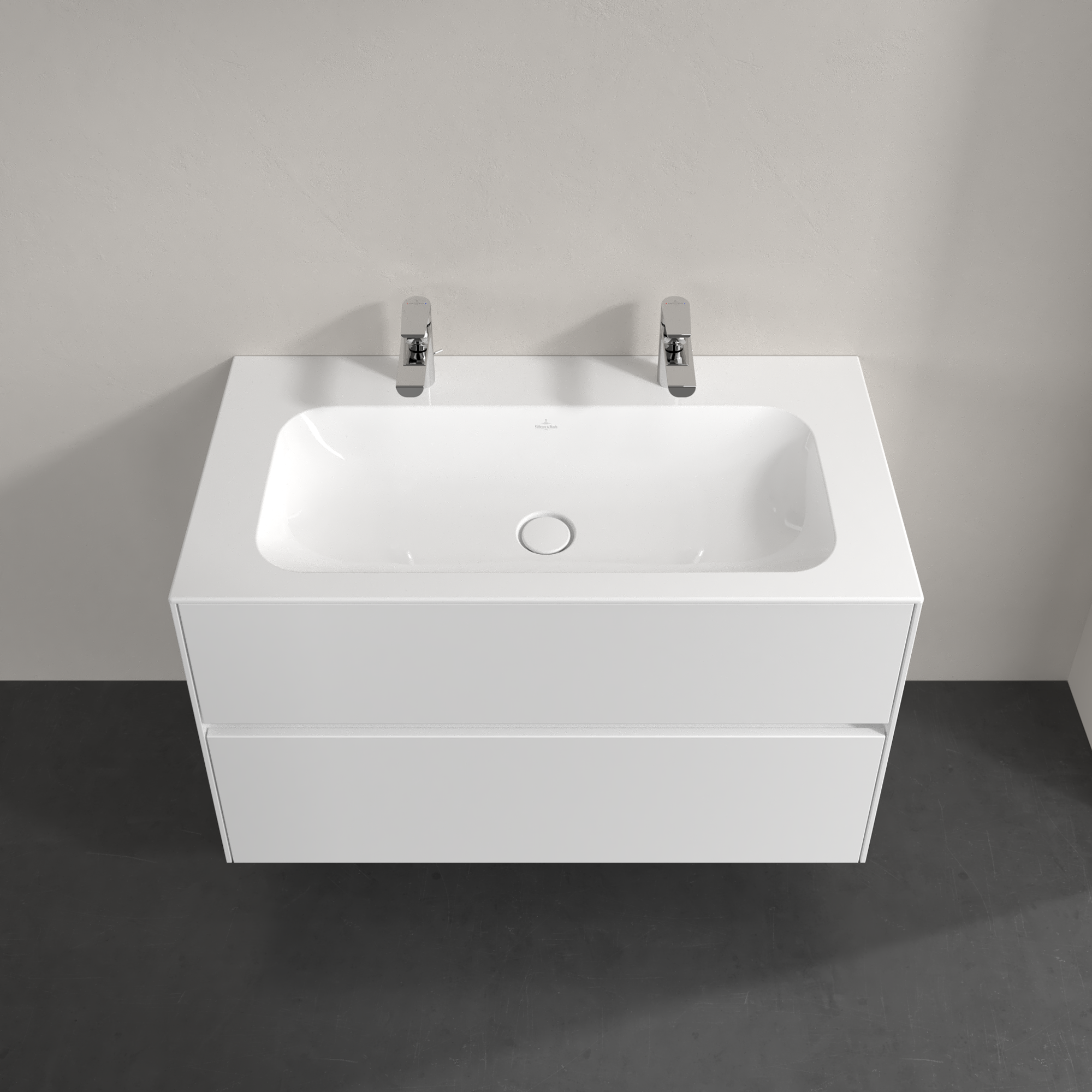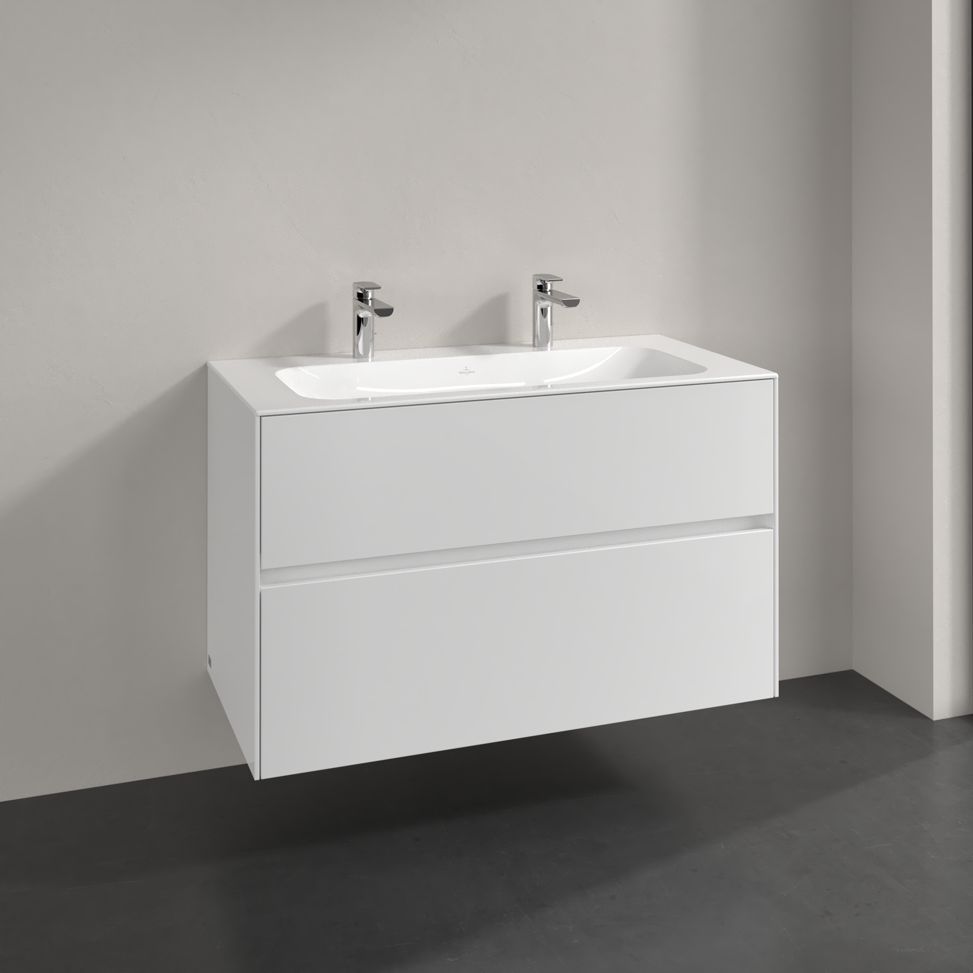 Collaro Meuble sous plan, 2 tiroirs sur rails, 996x603x498mm, Caisson: Glossy White, Façade: Glossy White