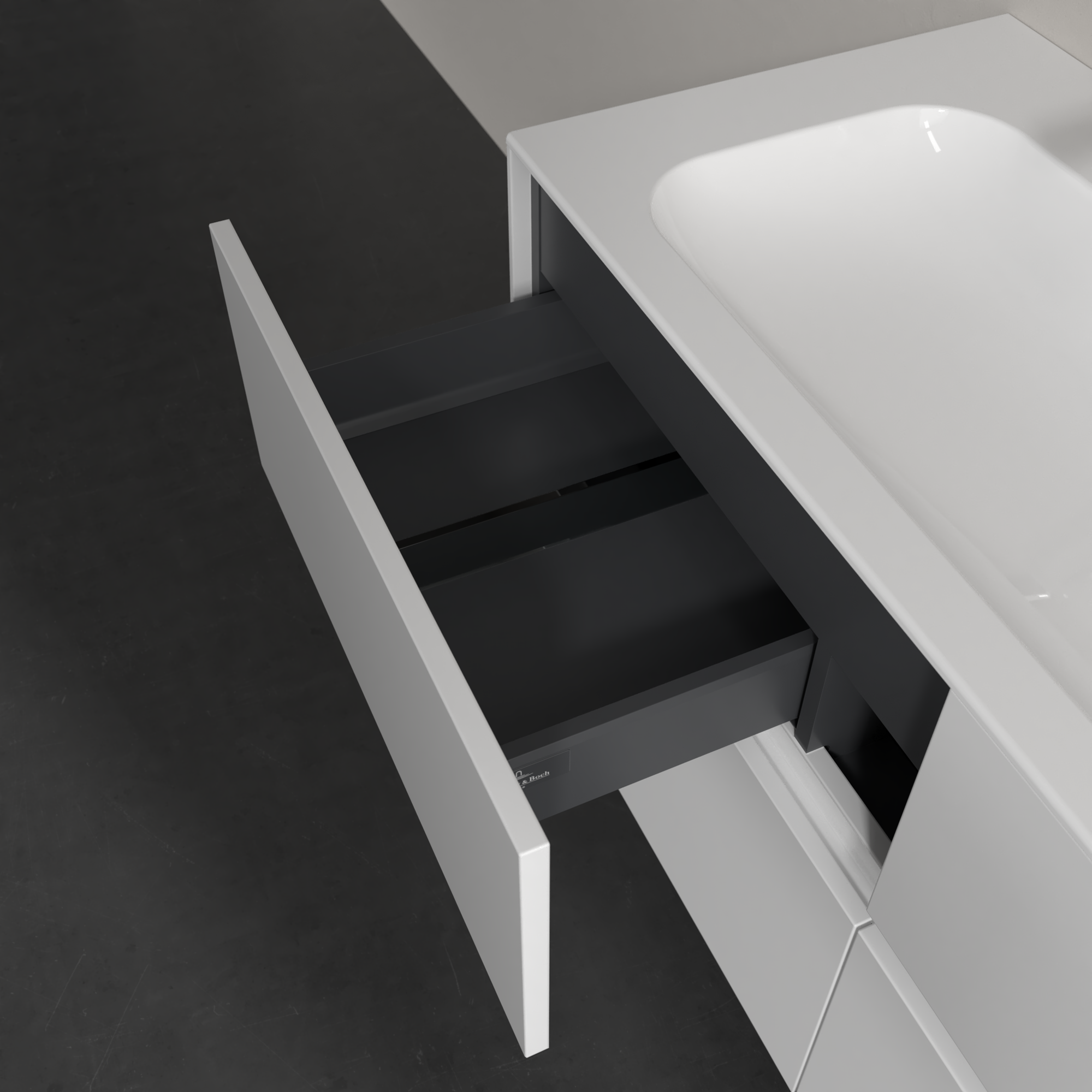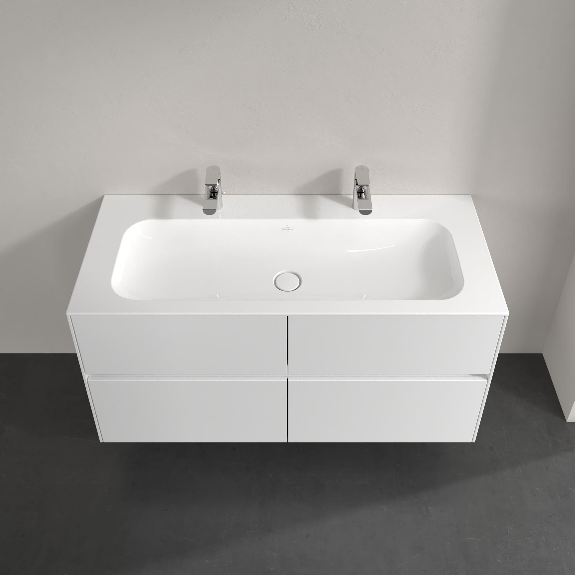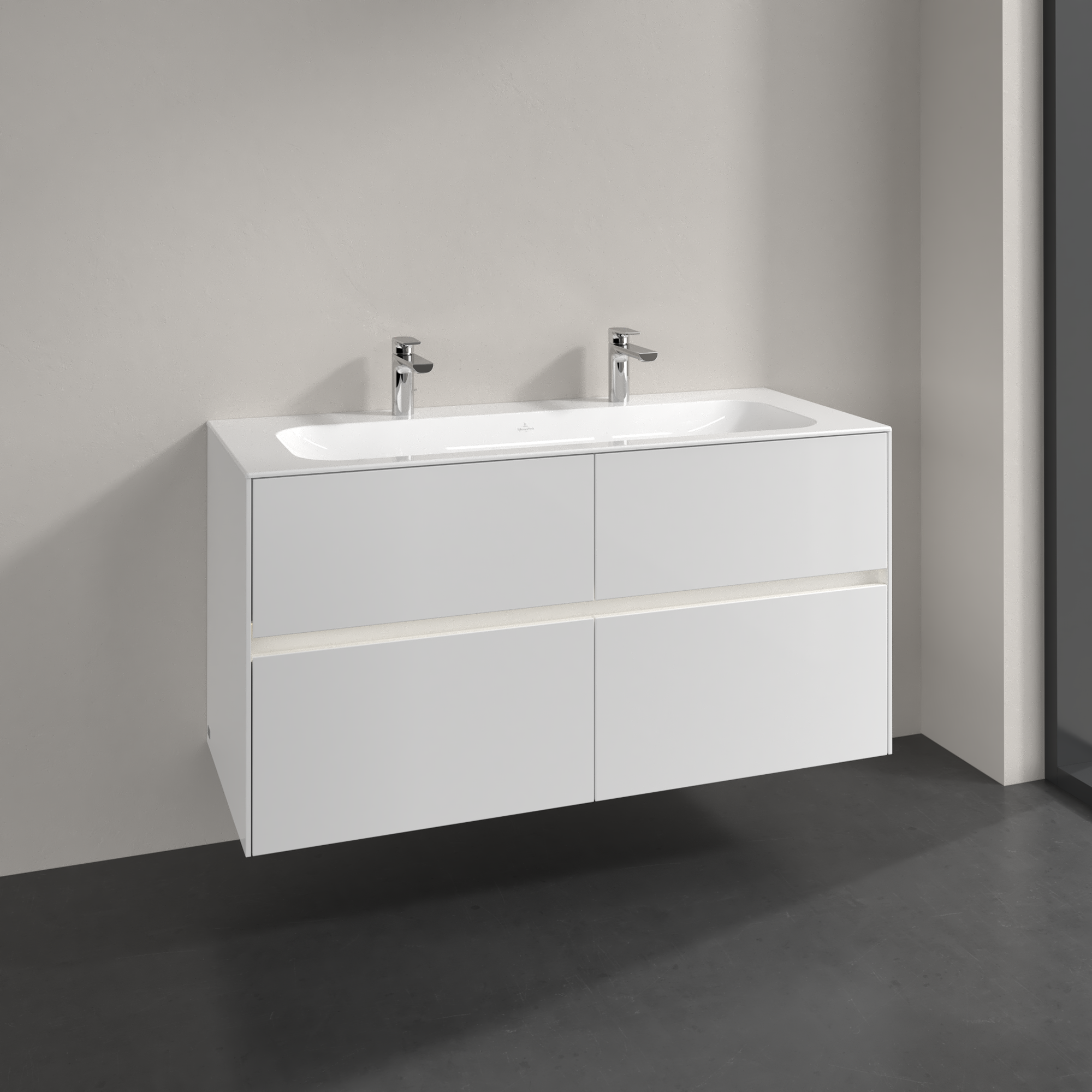 Collaro Meuble sous plan, avec éclairage, 4 tiroirs sur rails, 1196x603x498mm, Caisson: Glossy White, Façade: Glossy White