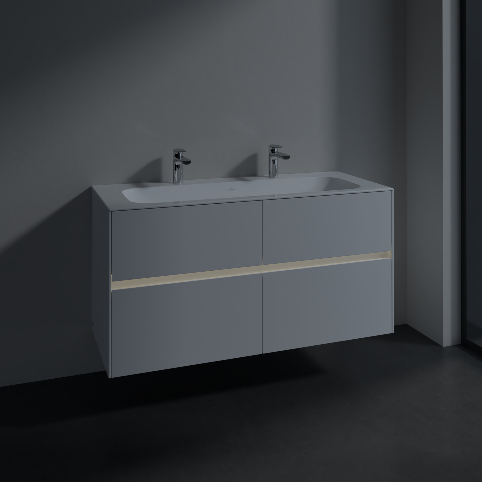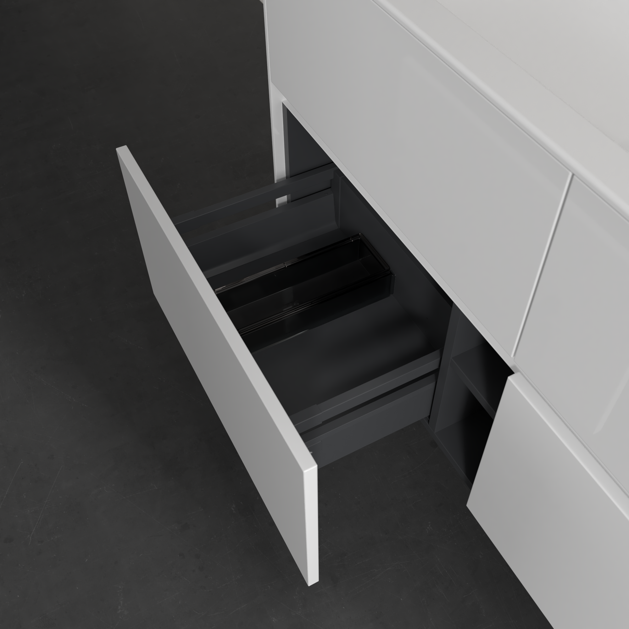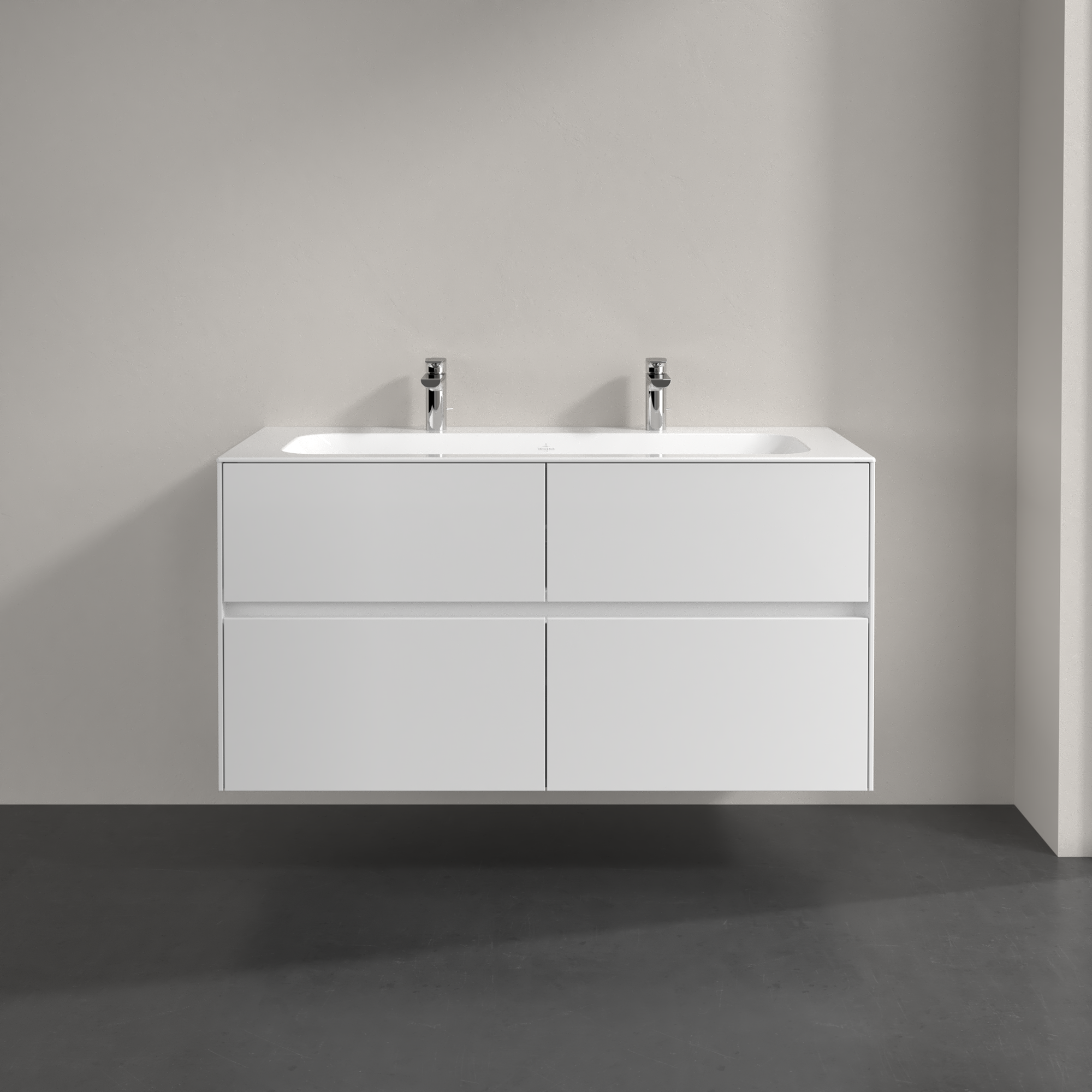 Collaro Meuble sous plan, avec éclairage, 4 tiroirs sur rails, 1196x603x498mm, Caisson: Glossy White, Façade: Glossy White