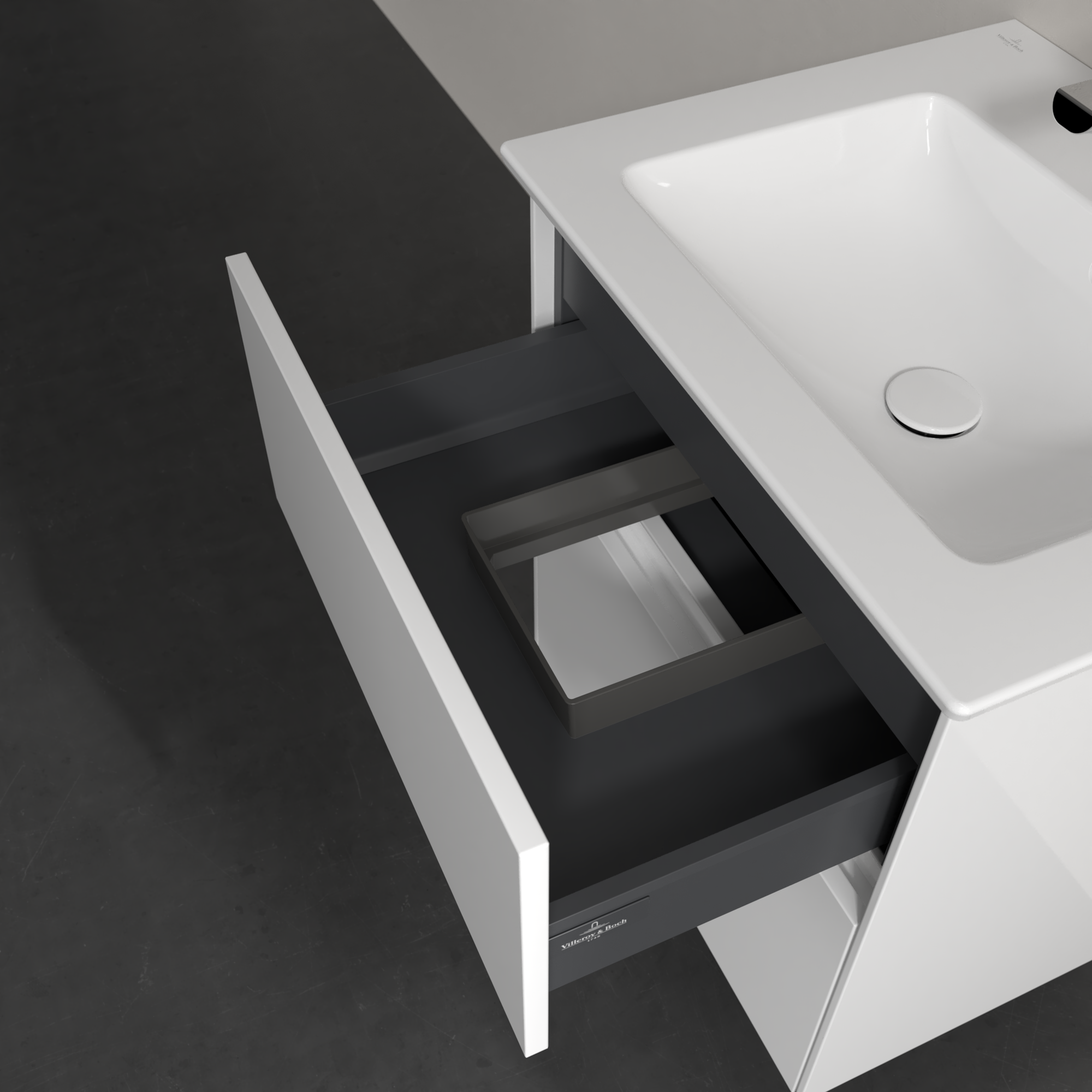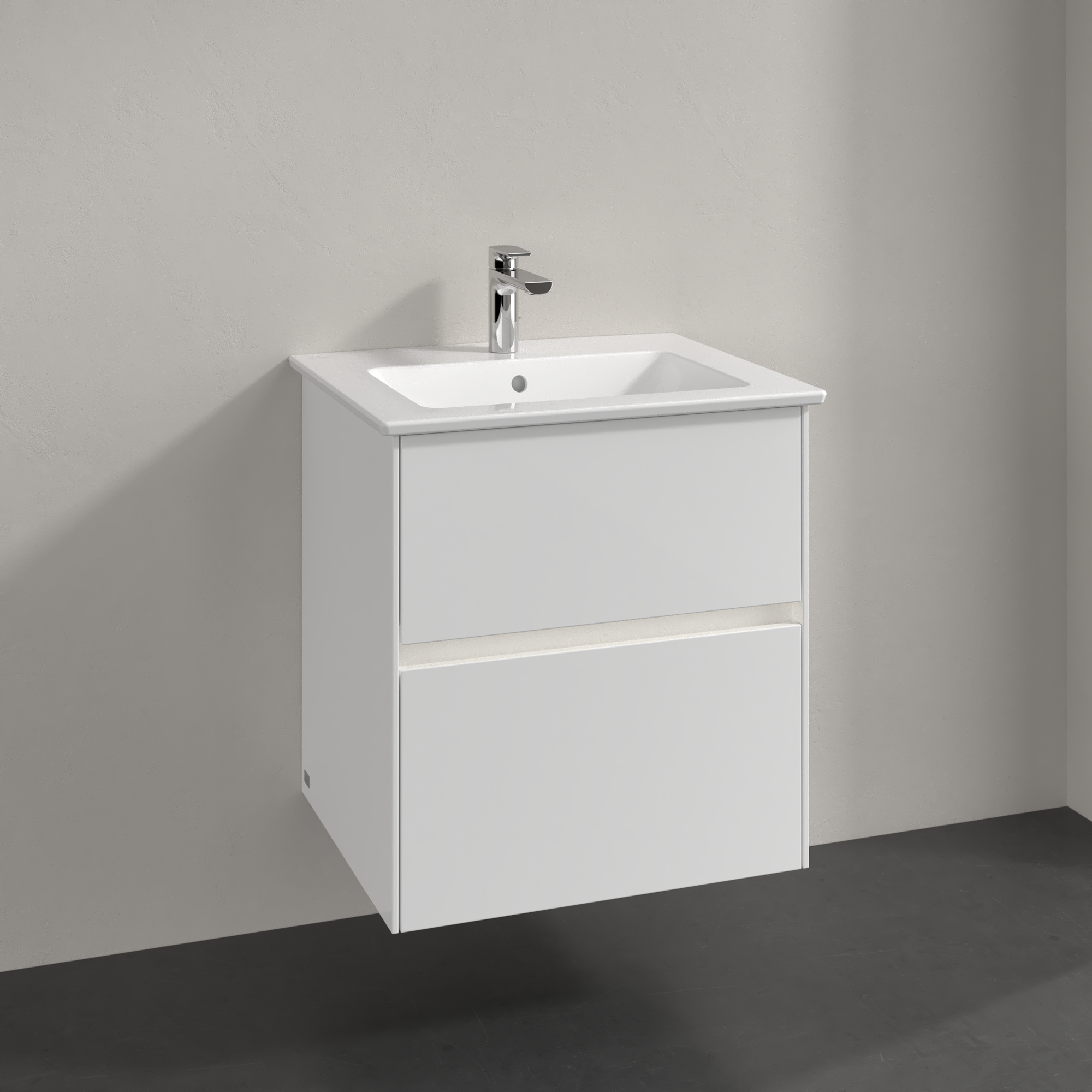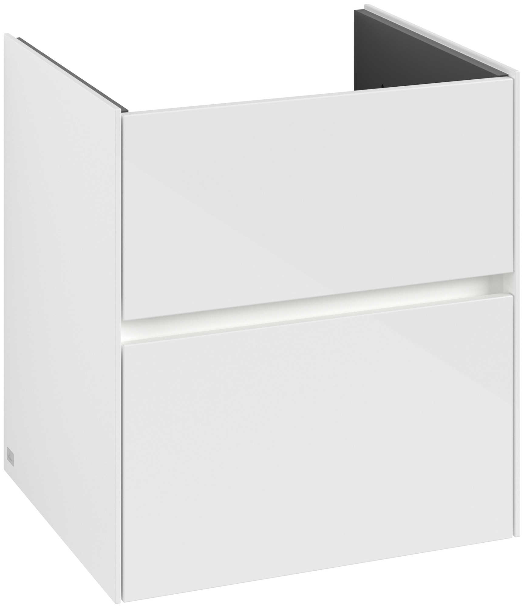Collaro Meuble sous plan, avec éclairage, 2 tiroirs sur rails, 561x610x480mm, Caisson: Glossy White, Façade: Glossy White