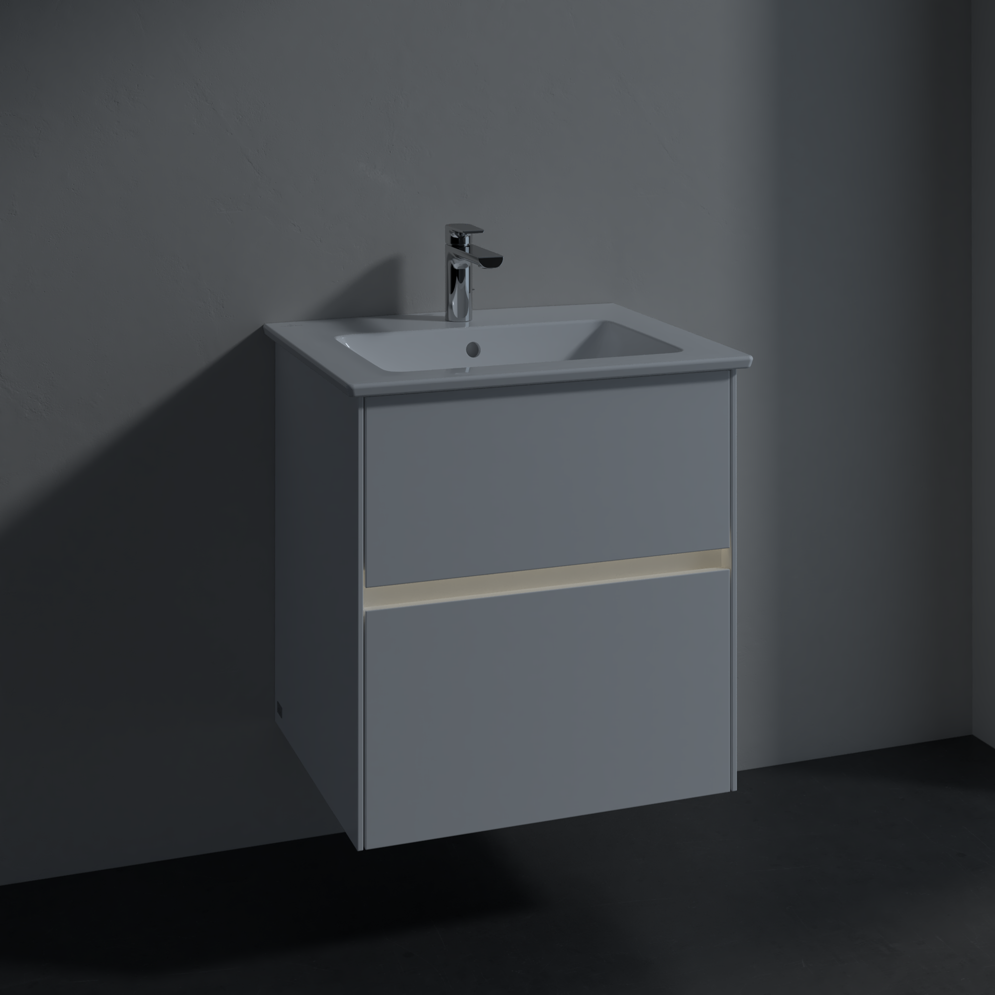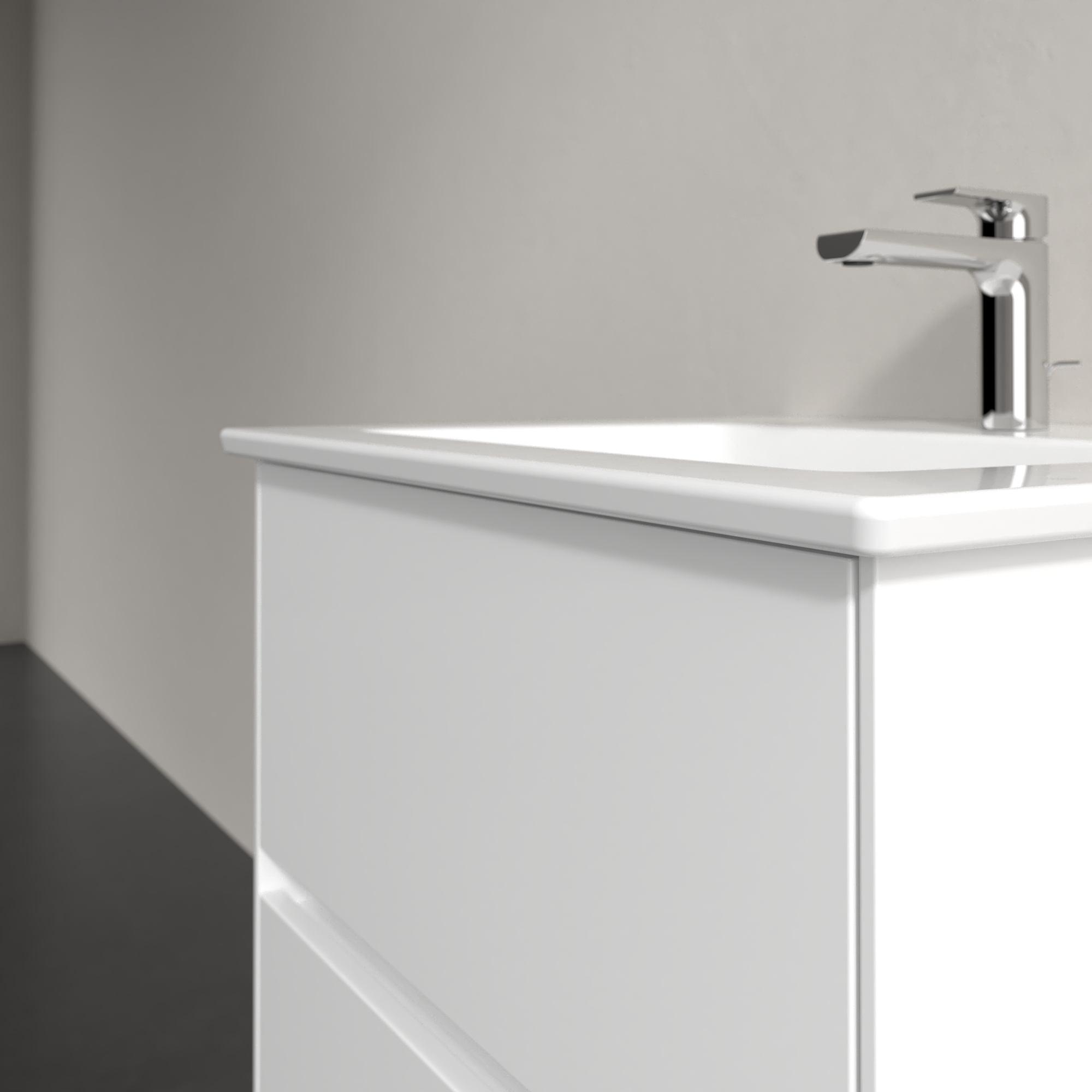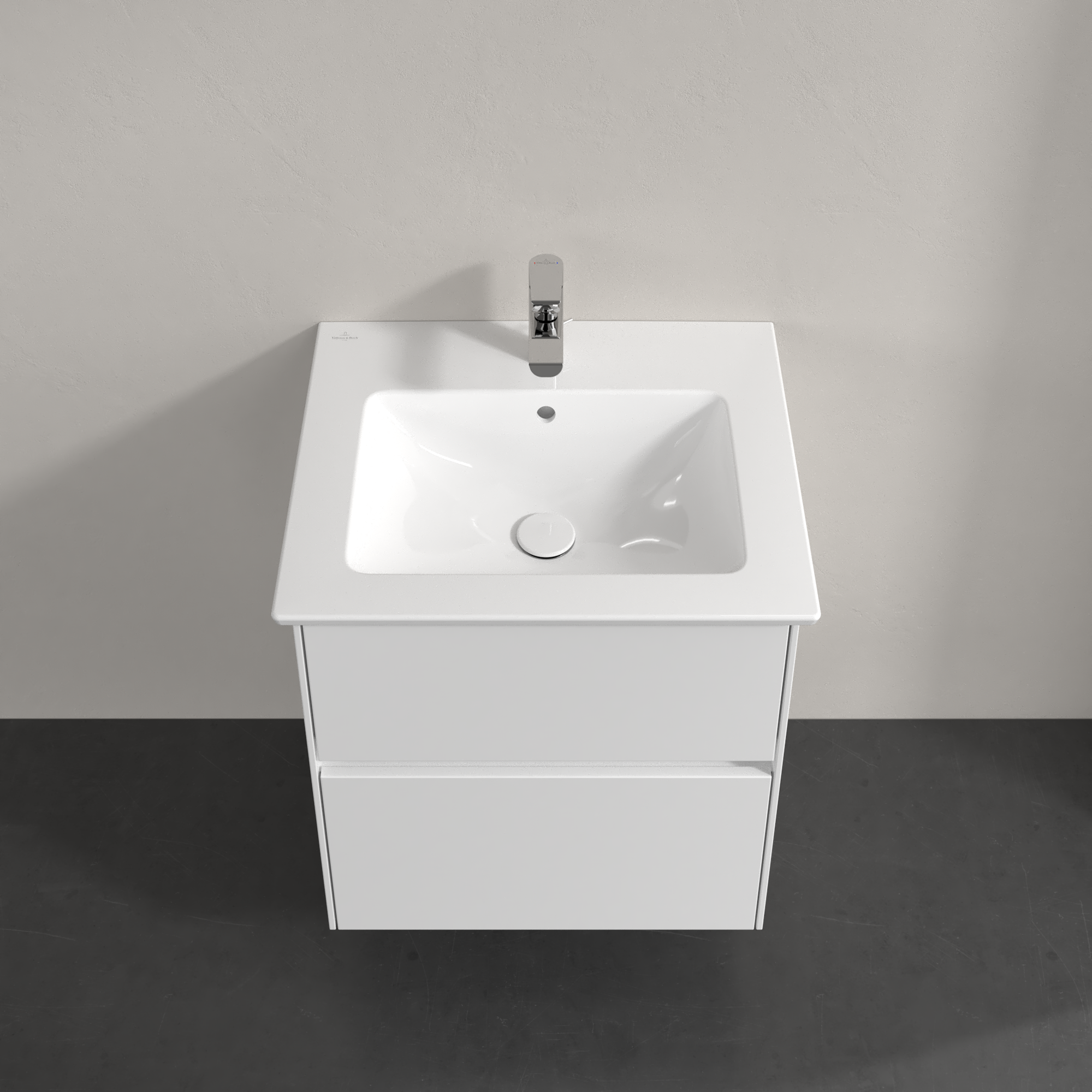 Collaro Meuble sous plan, avec éclairage, 2 tiroirs sur rails, 561x610x480mm, Caisson: Glossy White, Façade: Glossy White