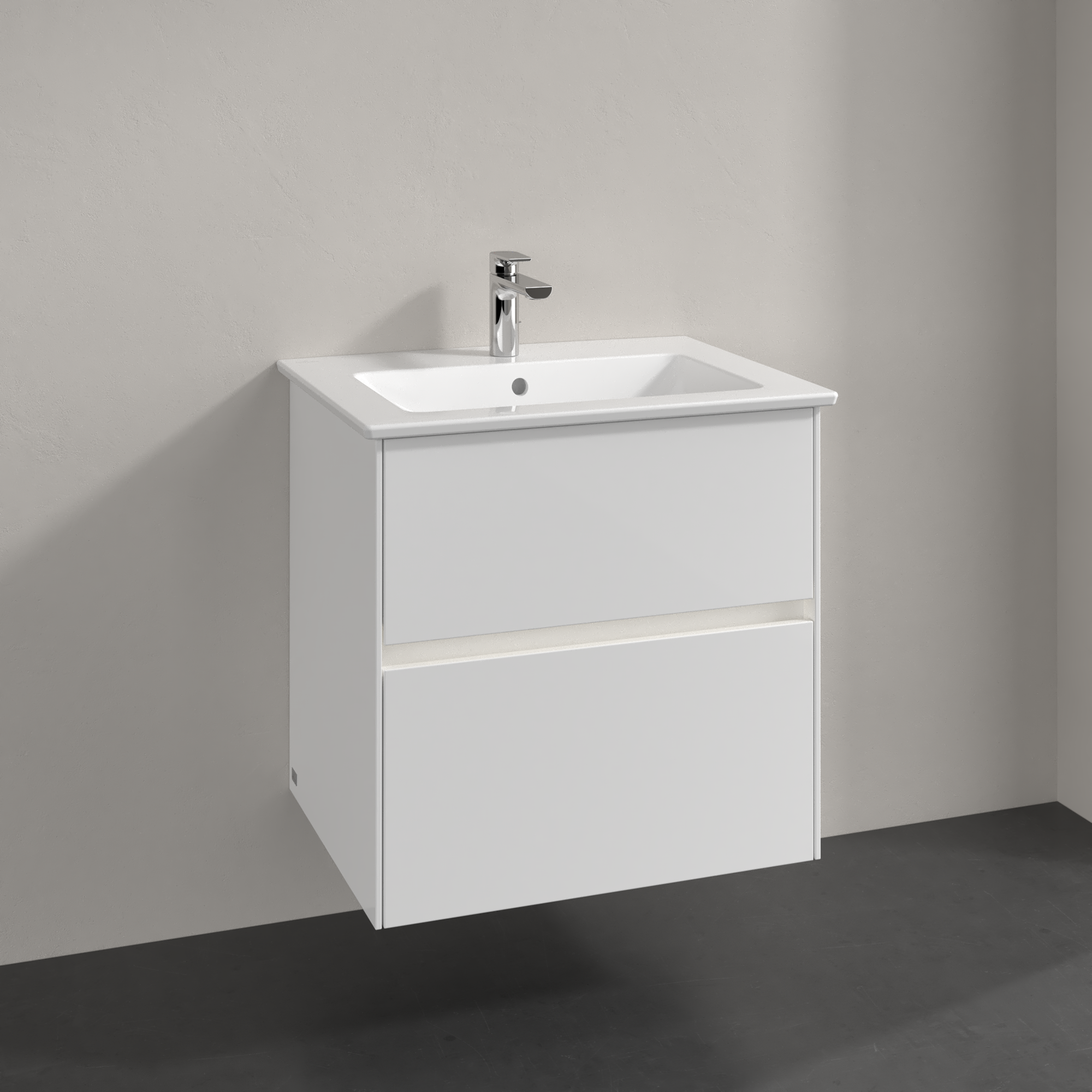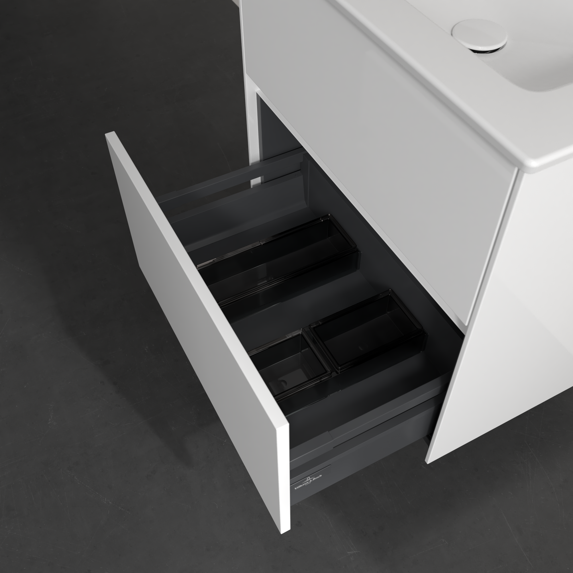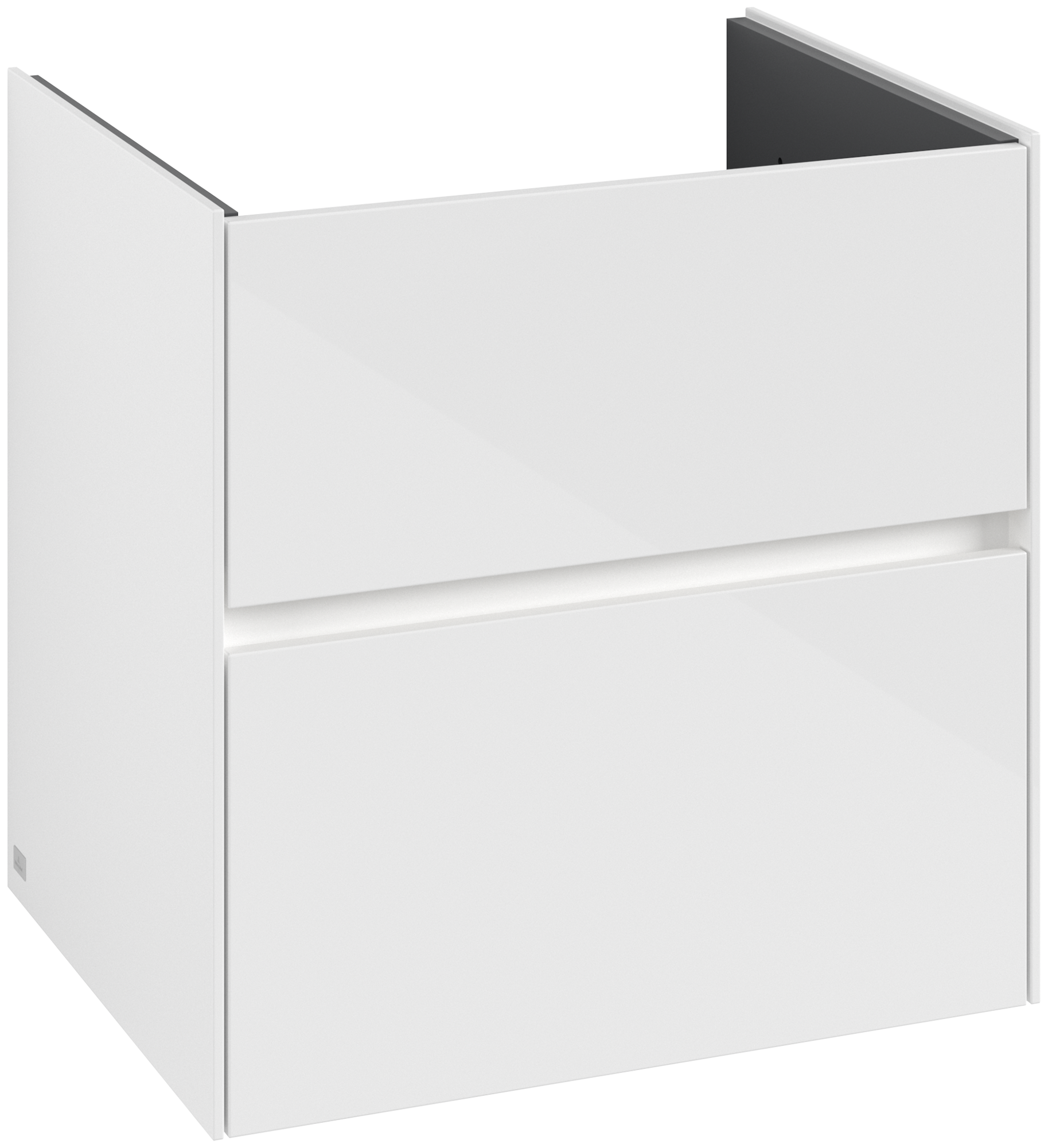Collaro Meuble sous plan, avec éclairage, 2 tiroirs sur rails, 611x610x480mm, Caisson: Glossy White, Façade: Glossy White