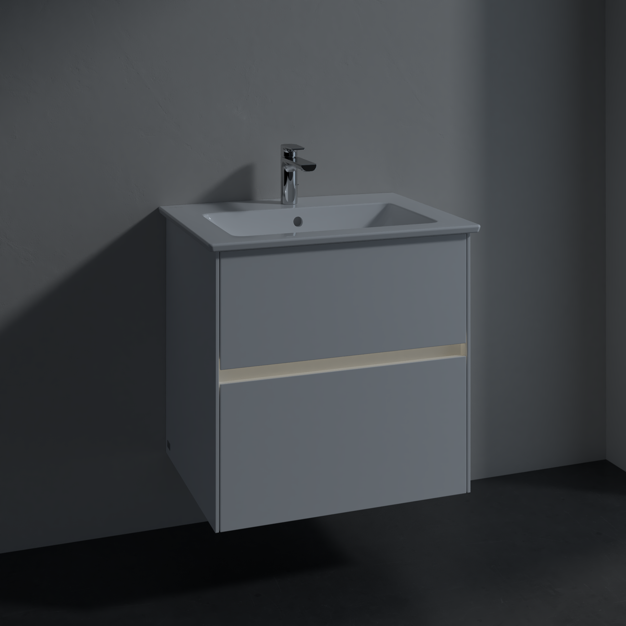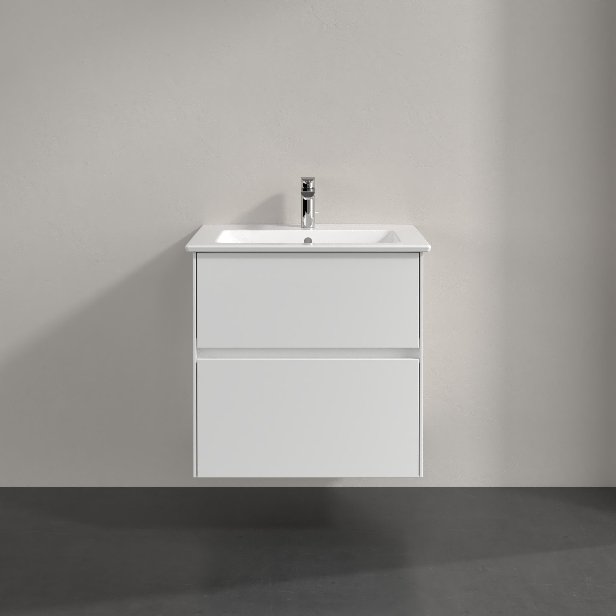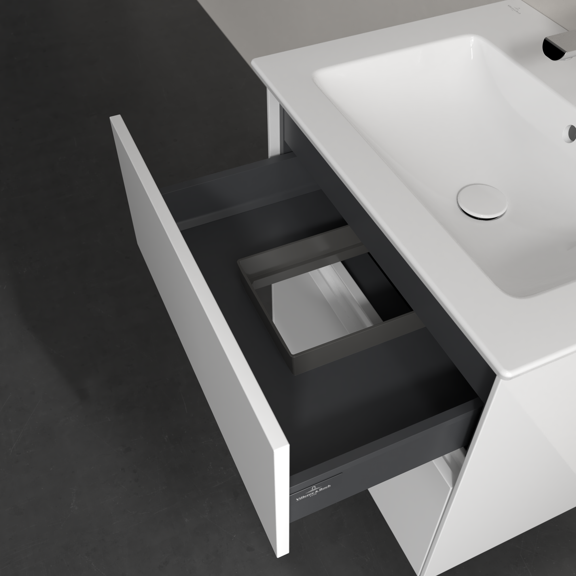 Collaro Meuble sous plan, avec éclairage, 2 tiroirs sur rails, 611x610x480mm, Caisson: Glossy White, Façade: Glossy White