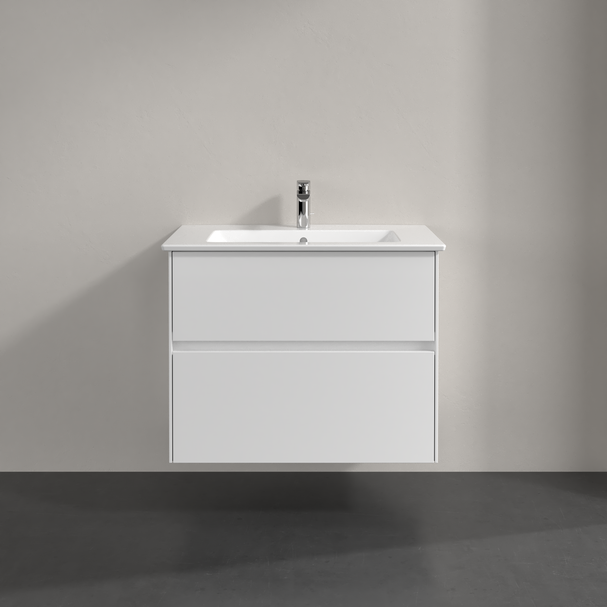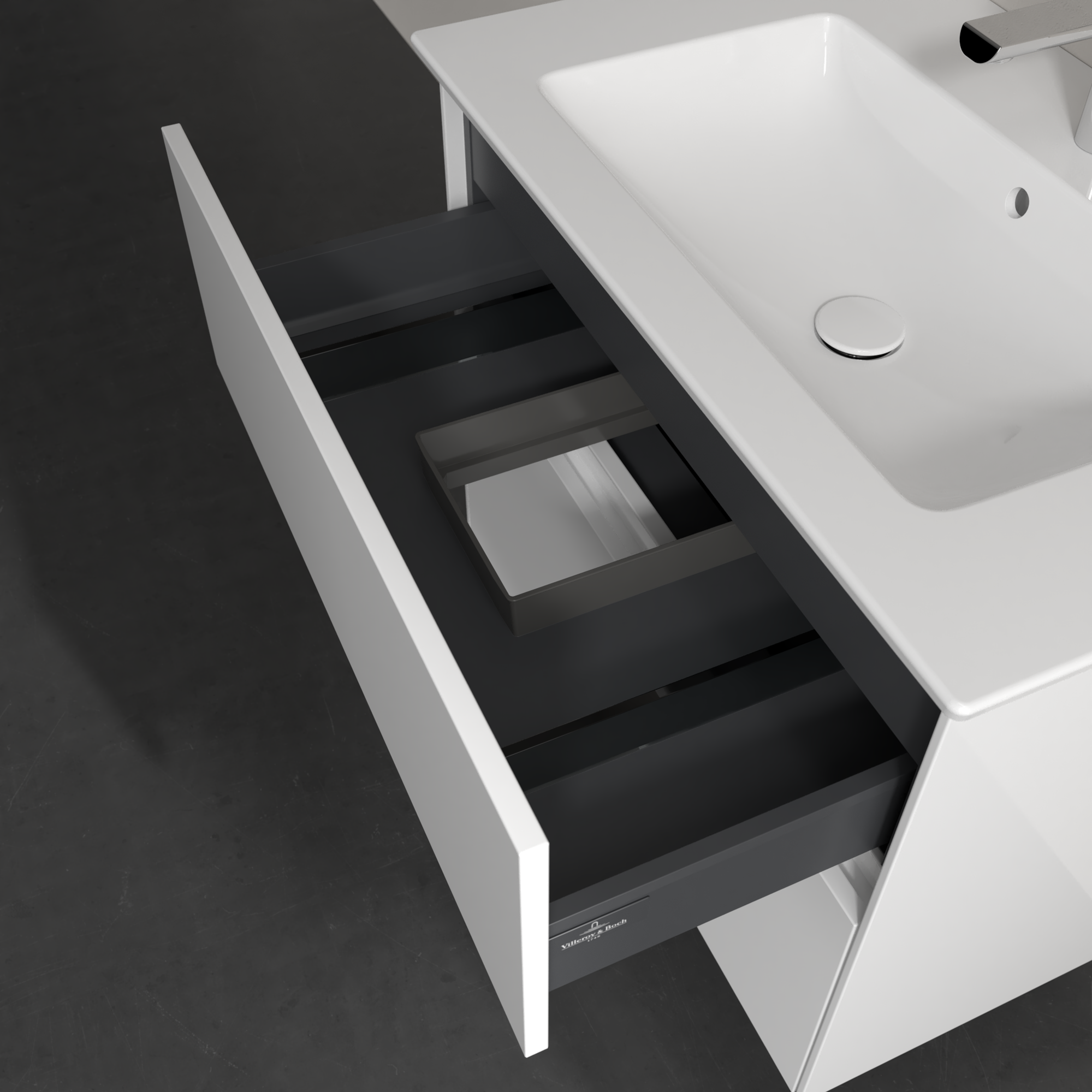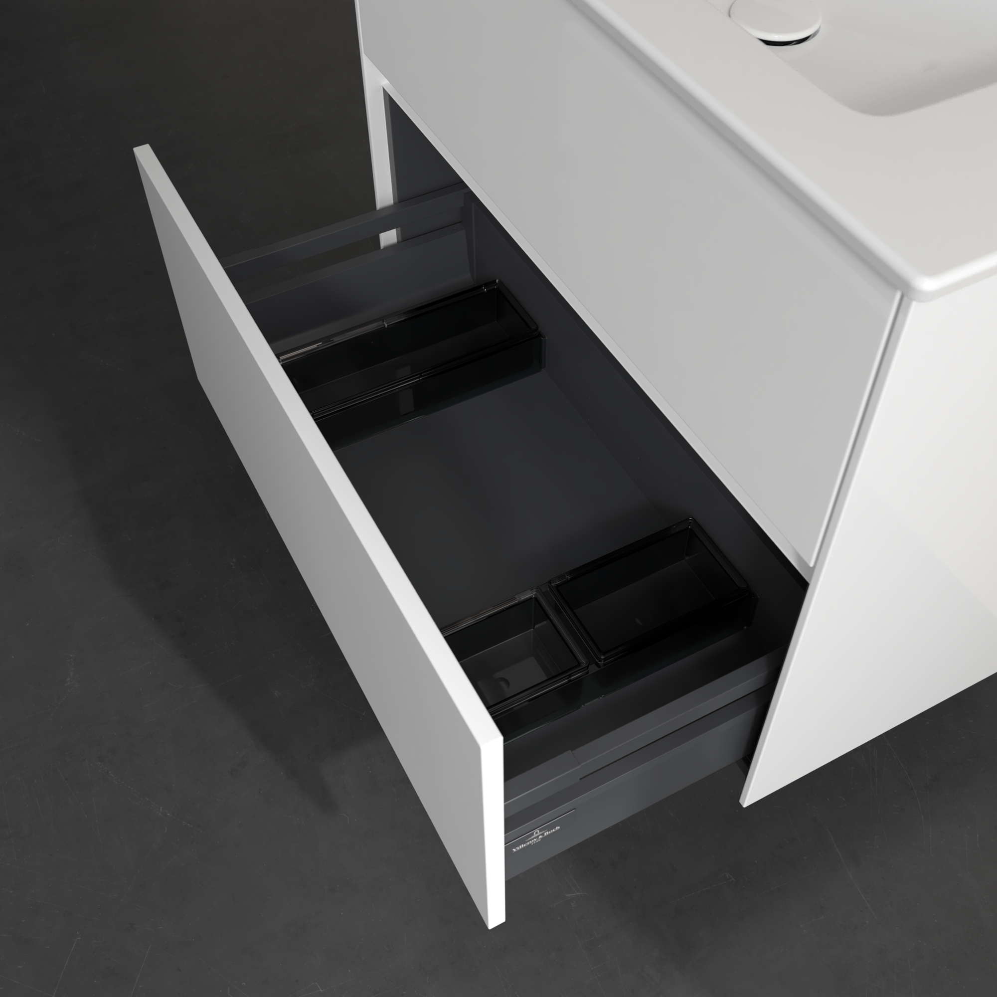 Collaro Meuble sous plan, avec éclairage, 2 tiroirs sur rails, 761x610x480mm, Caisson: Glossy White, Façade: Glossy White