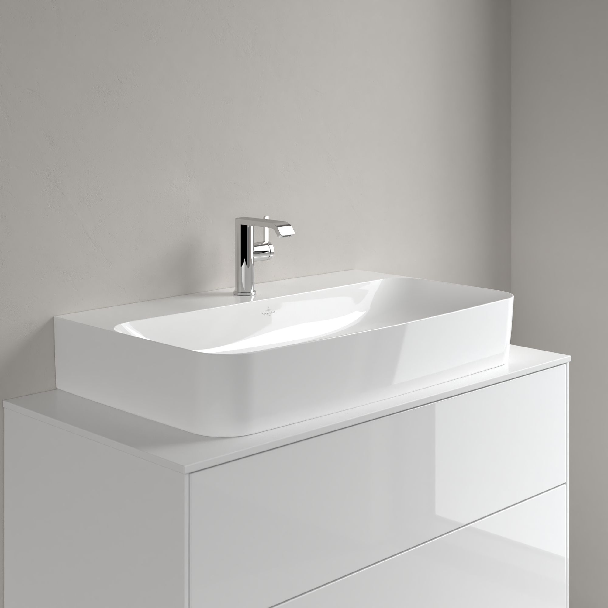 Finion Lavabos, 800x470x165mm, avec trop-plein invisible, Blanc CeramicPlus