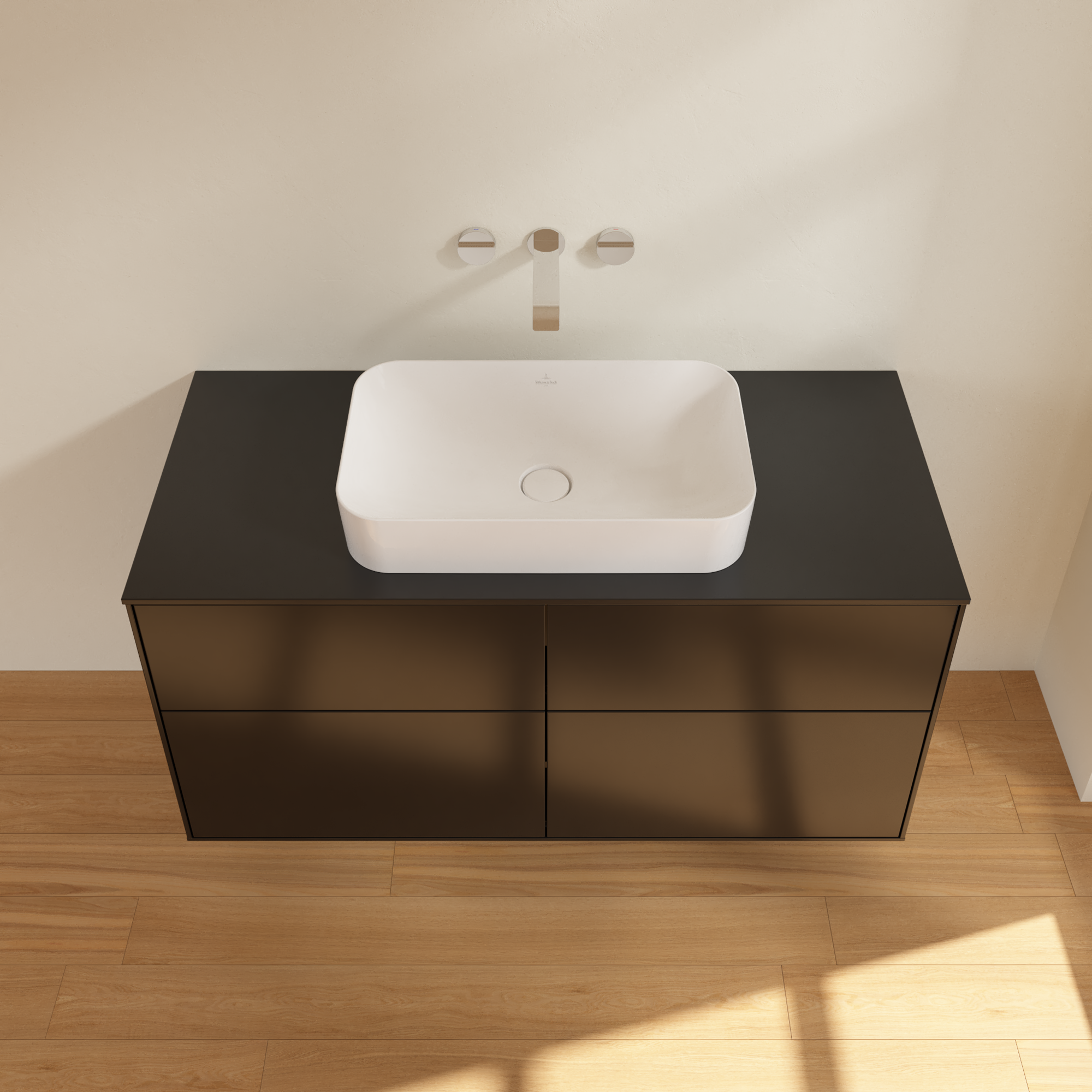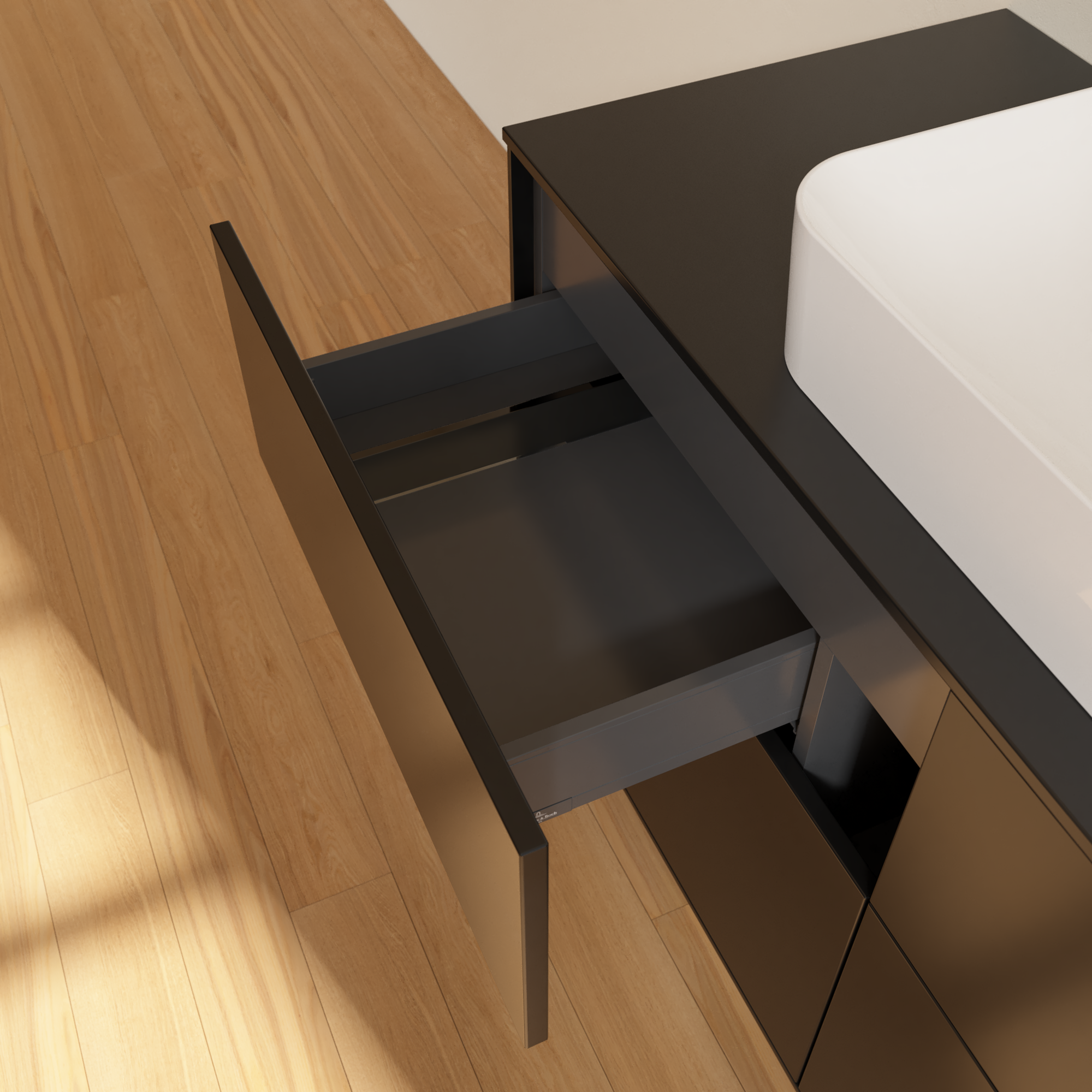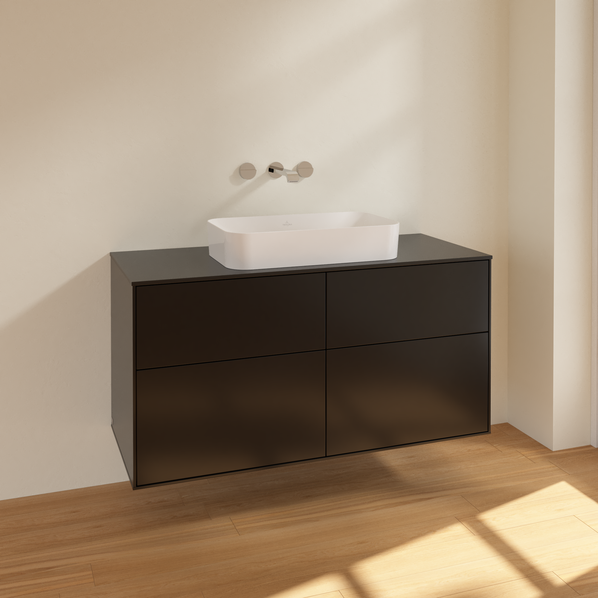 Finion Meuble sous plan, 4 tiroirs sur rails, 1200x603x501mm, Caisson: Black Matt Lacquer, Façade: Black Matt Lacquer, Plaque de recouvrement: Glass Black Matt