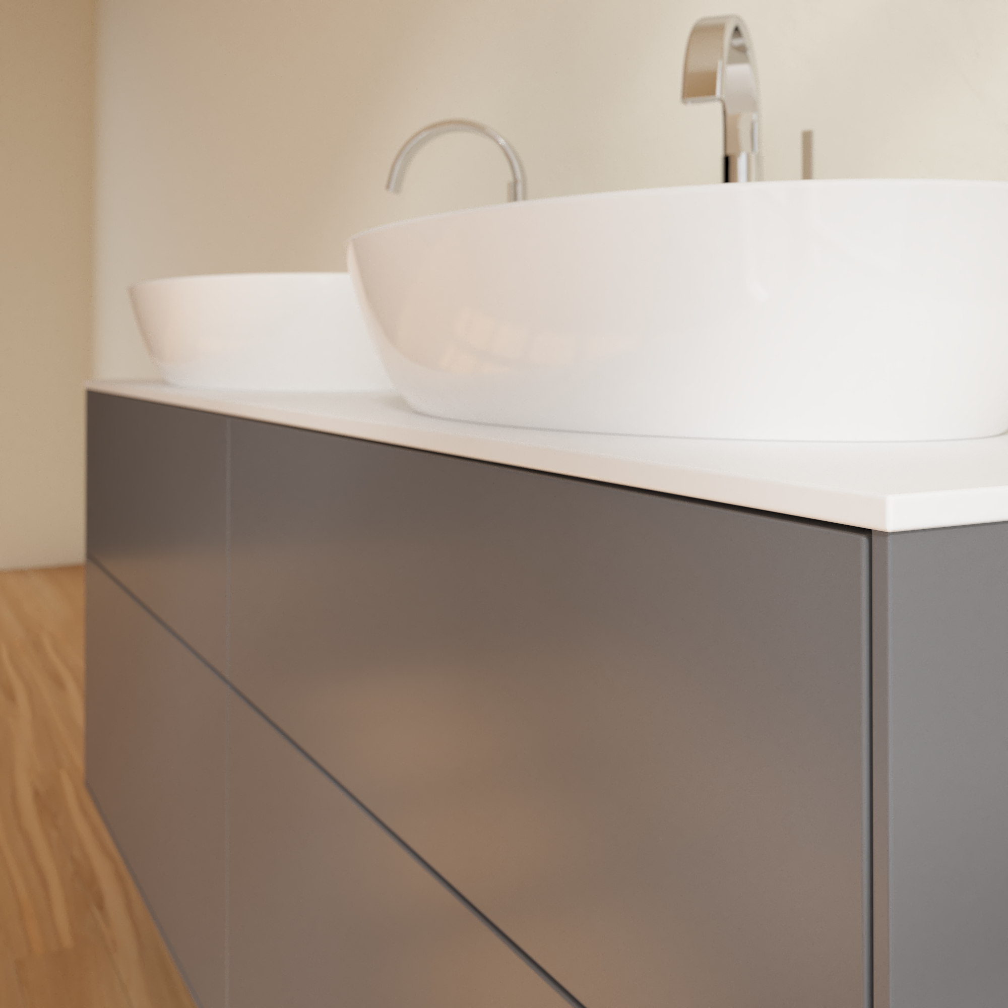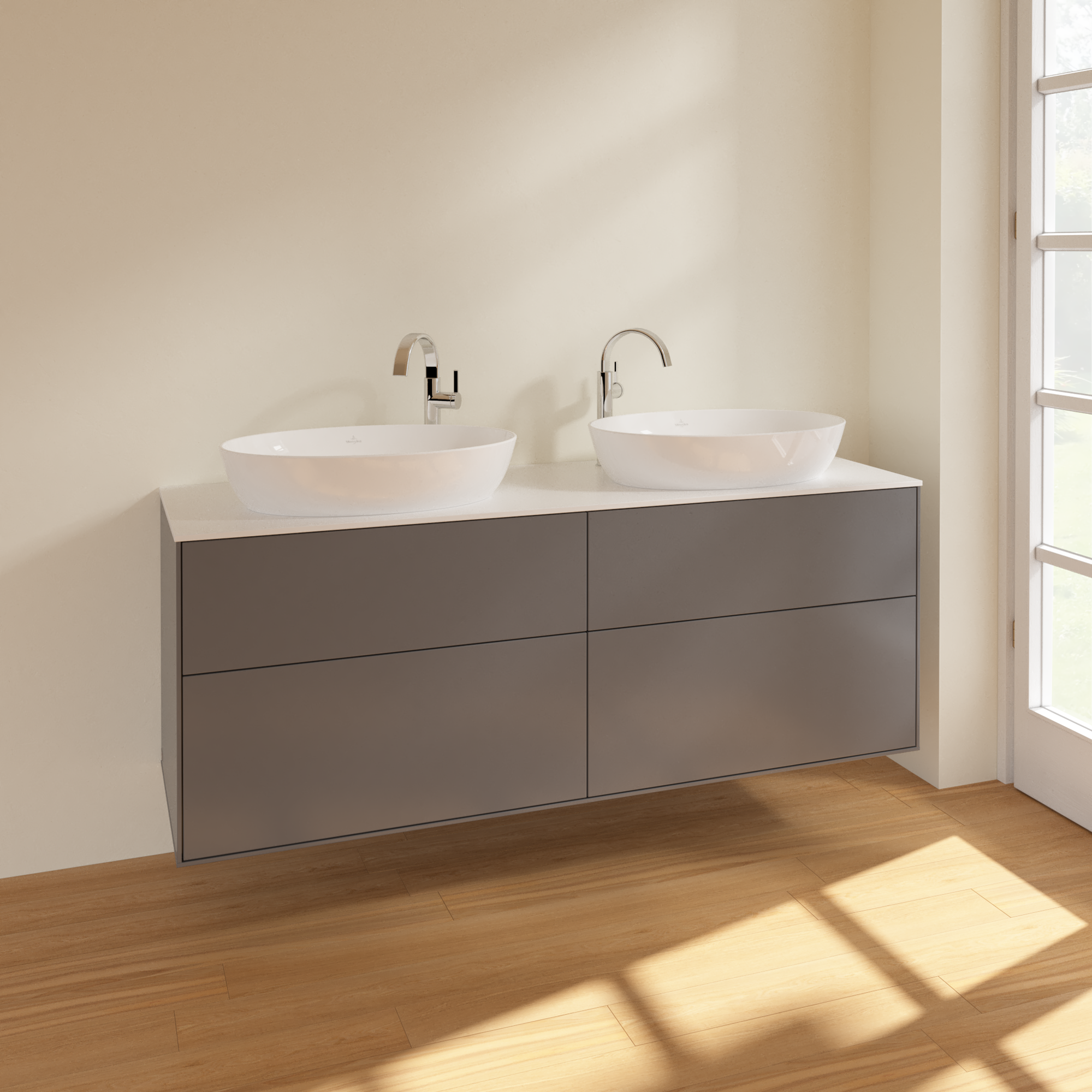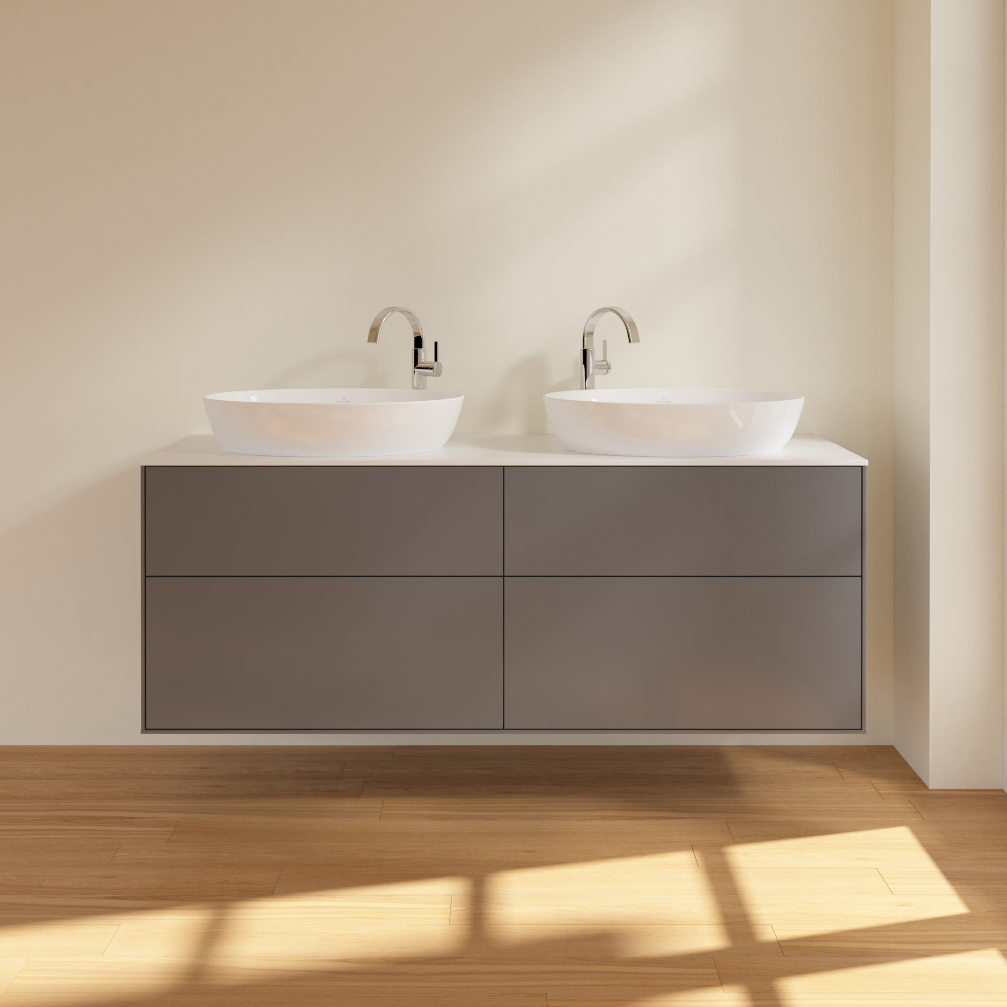 Finion Meuble sous plan, 4 tiroirs sur rails, 1600x603x501mm, Caisson: Anthracite Matt Lacquer, Façade: Anthracite Matt Lacquer, Plaque de recouvrement: Glass White Matt