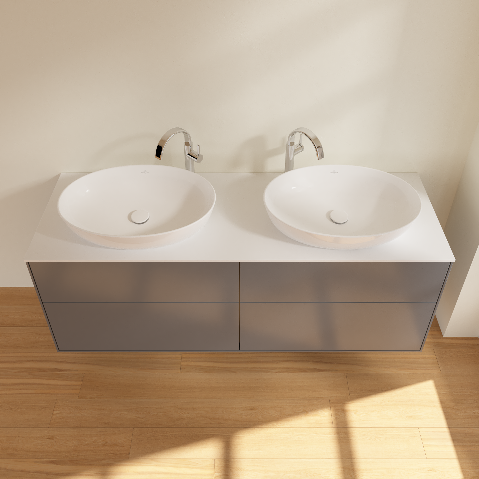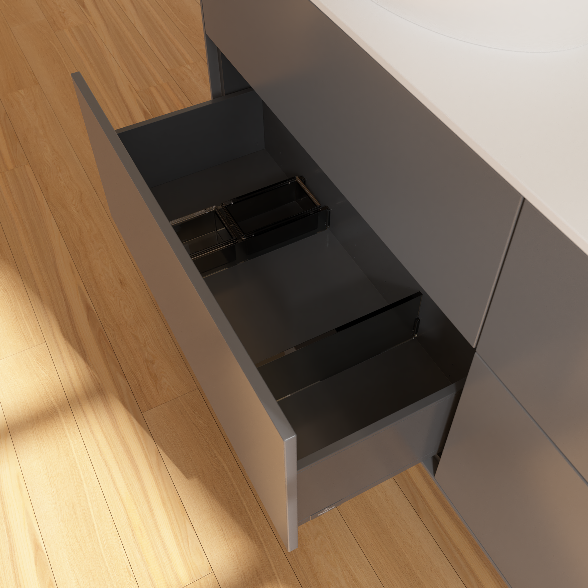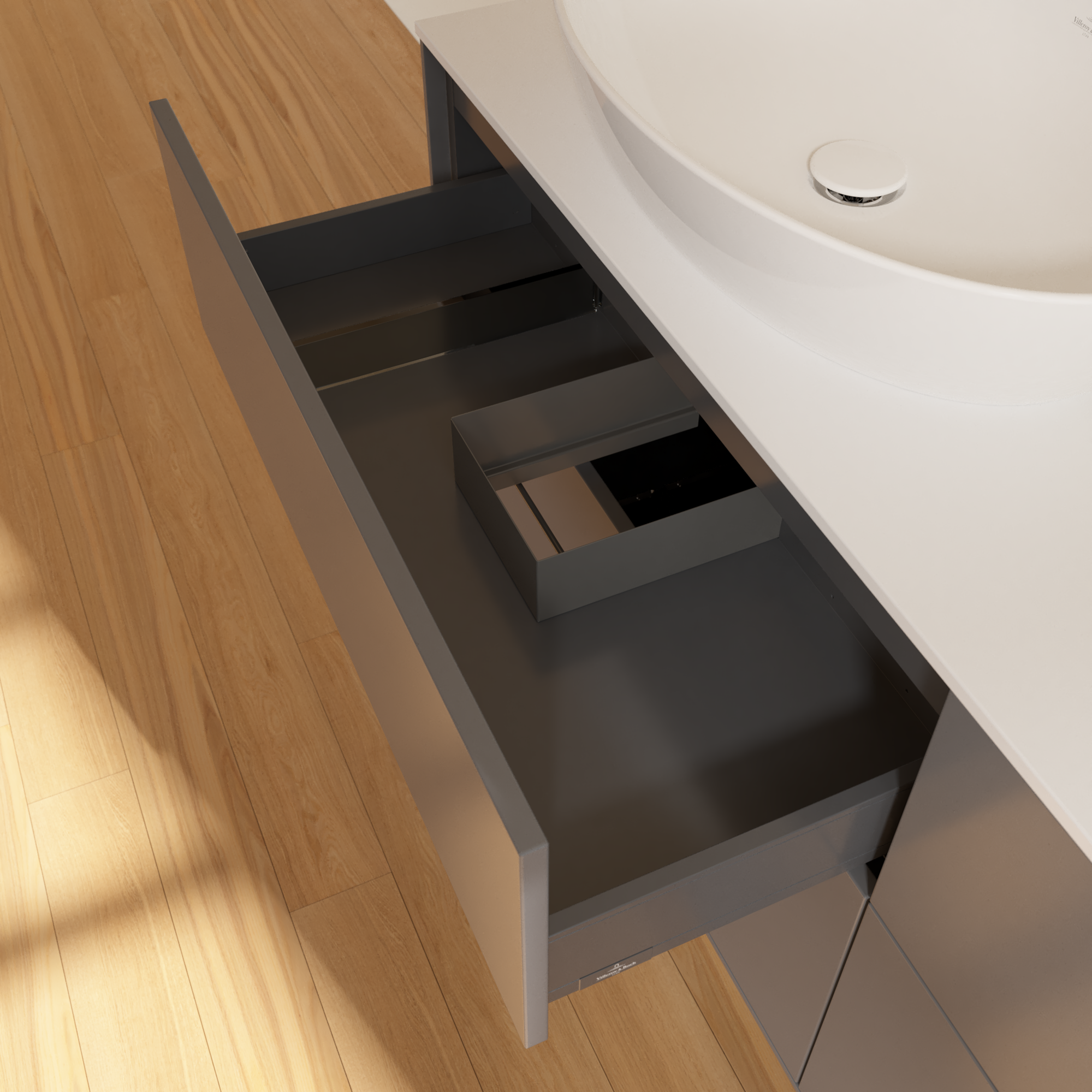 Finion Meuble sous plan, 4 tiroirs sur rails, 1600x603x501mm, Caisson: Anthracite Matt Lacquer, Façade: Anthracite Matt Lacquer, Plaque de recouvrement: Glass White Matt