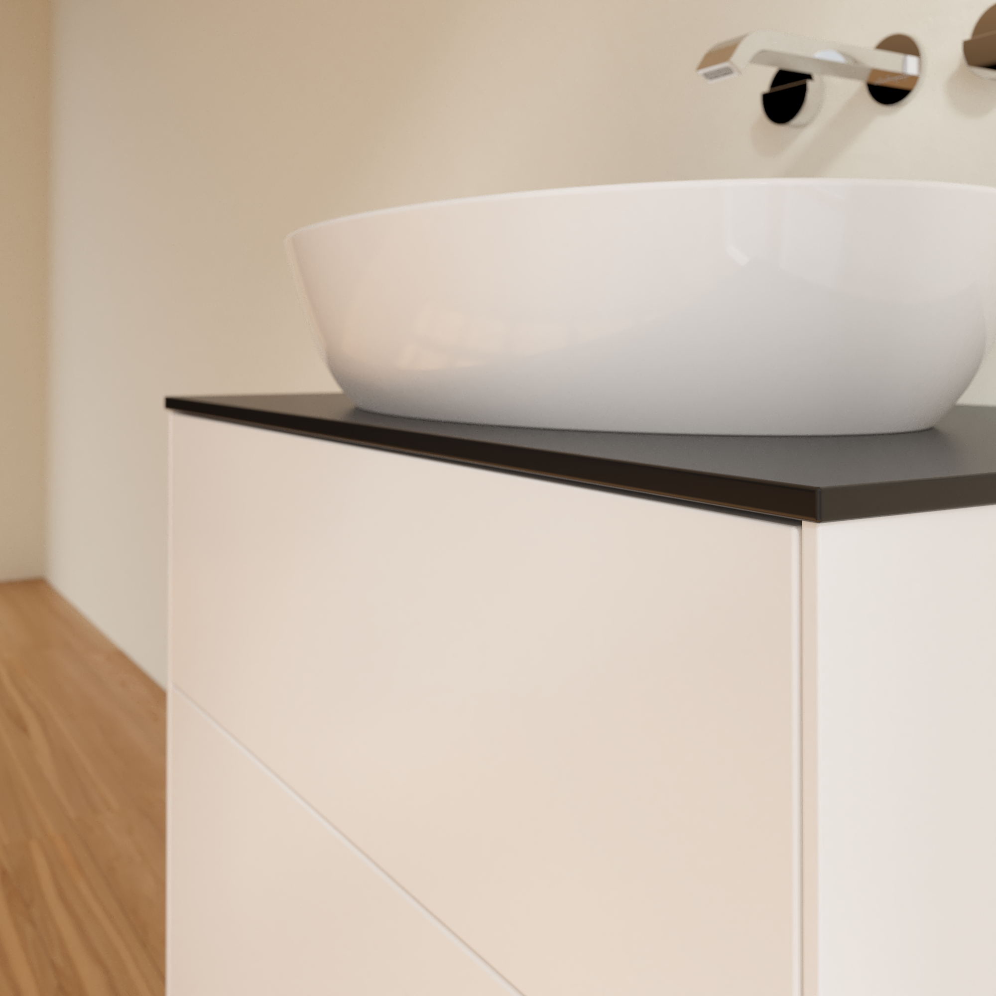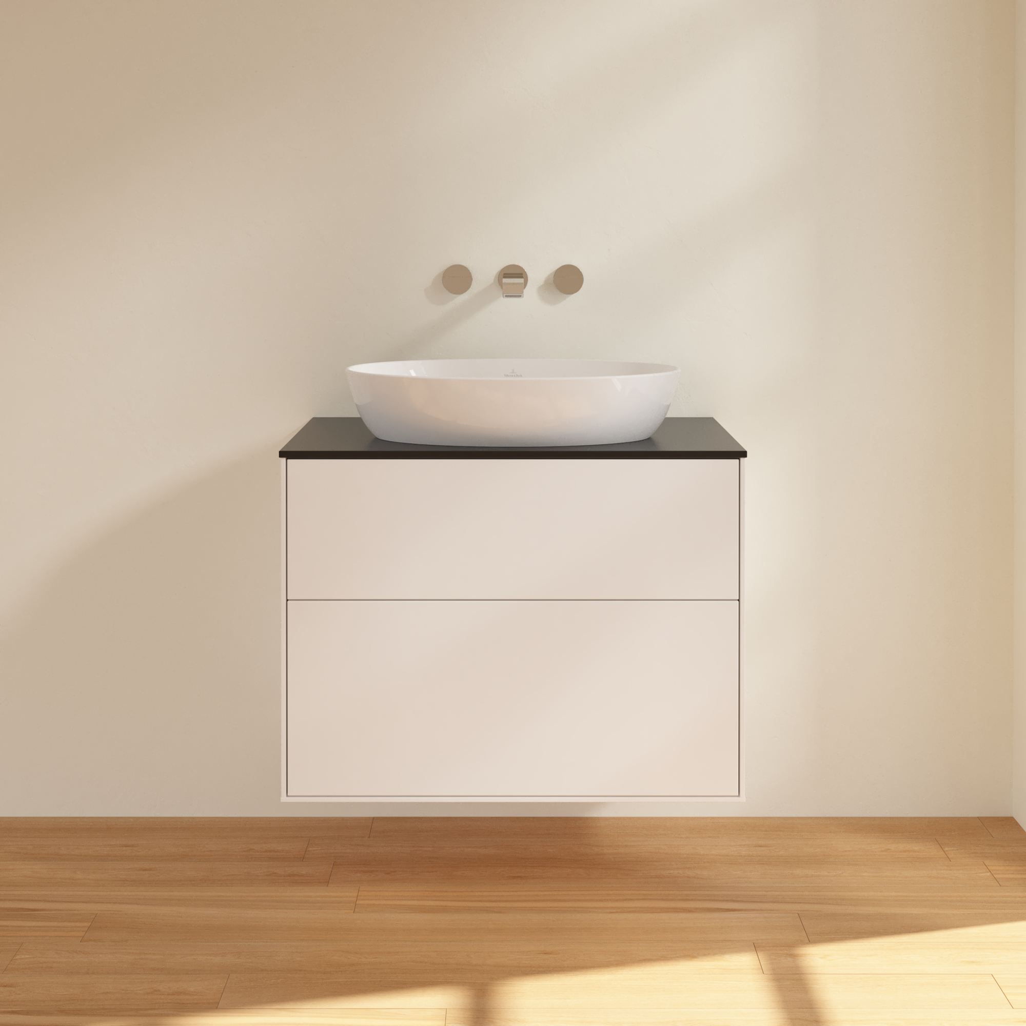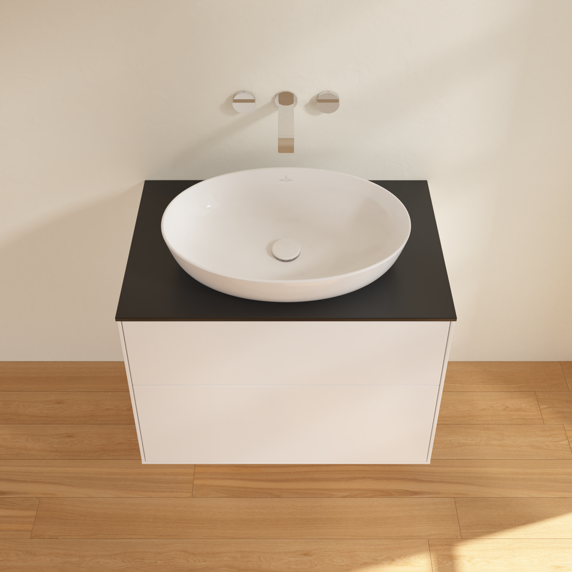 Finion Meuble sous plan, 2 tiroirs sur rails, 800x603x501mm, Caisson: White Matt Lacquer, Façade: White Matt Lacquer, Plaque de recouvrement: Glass Black Matt