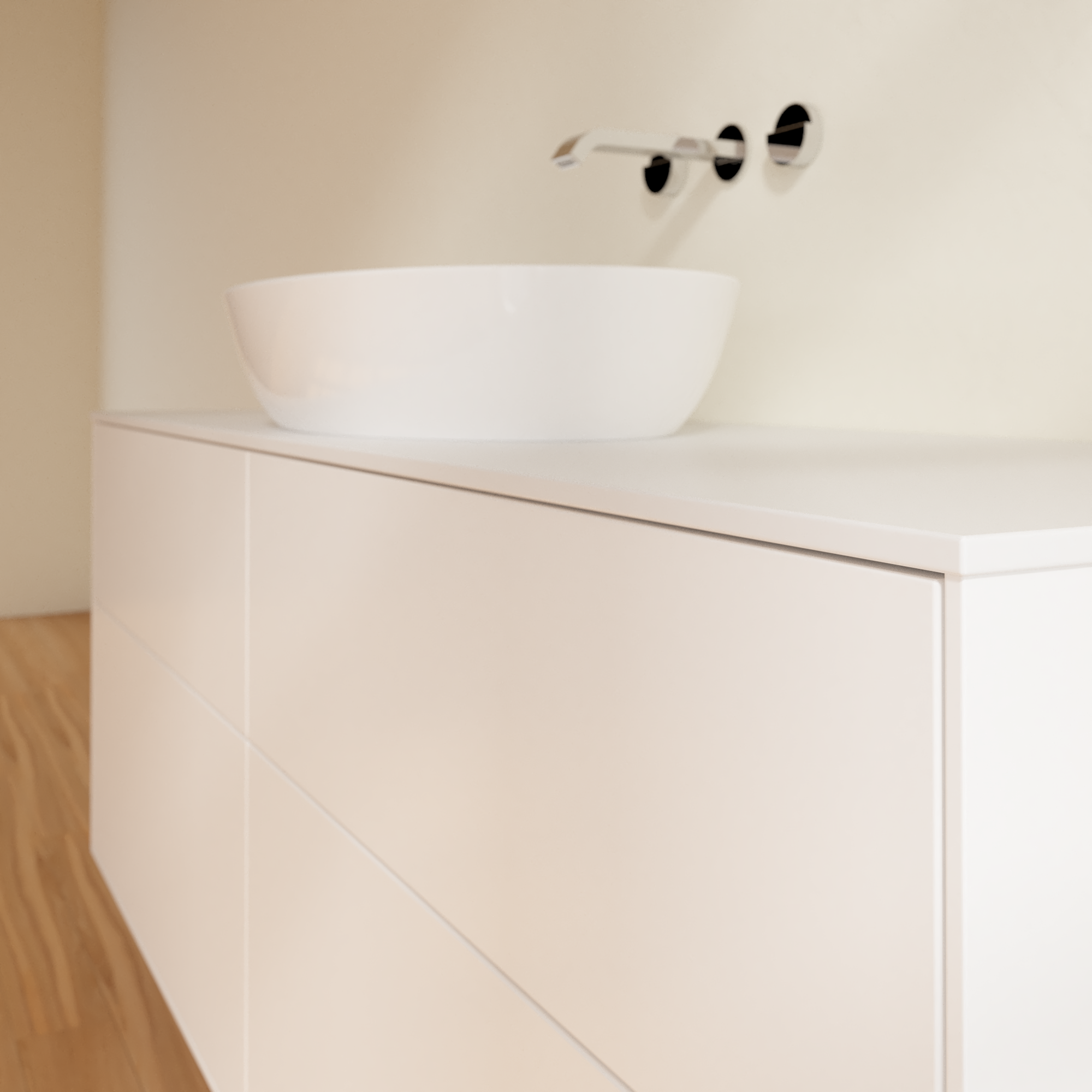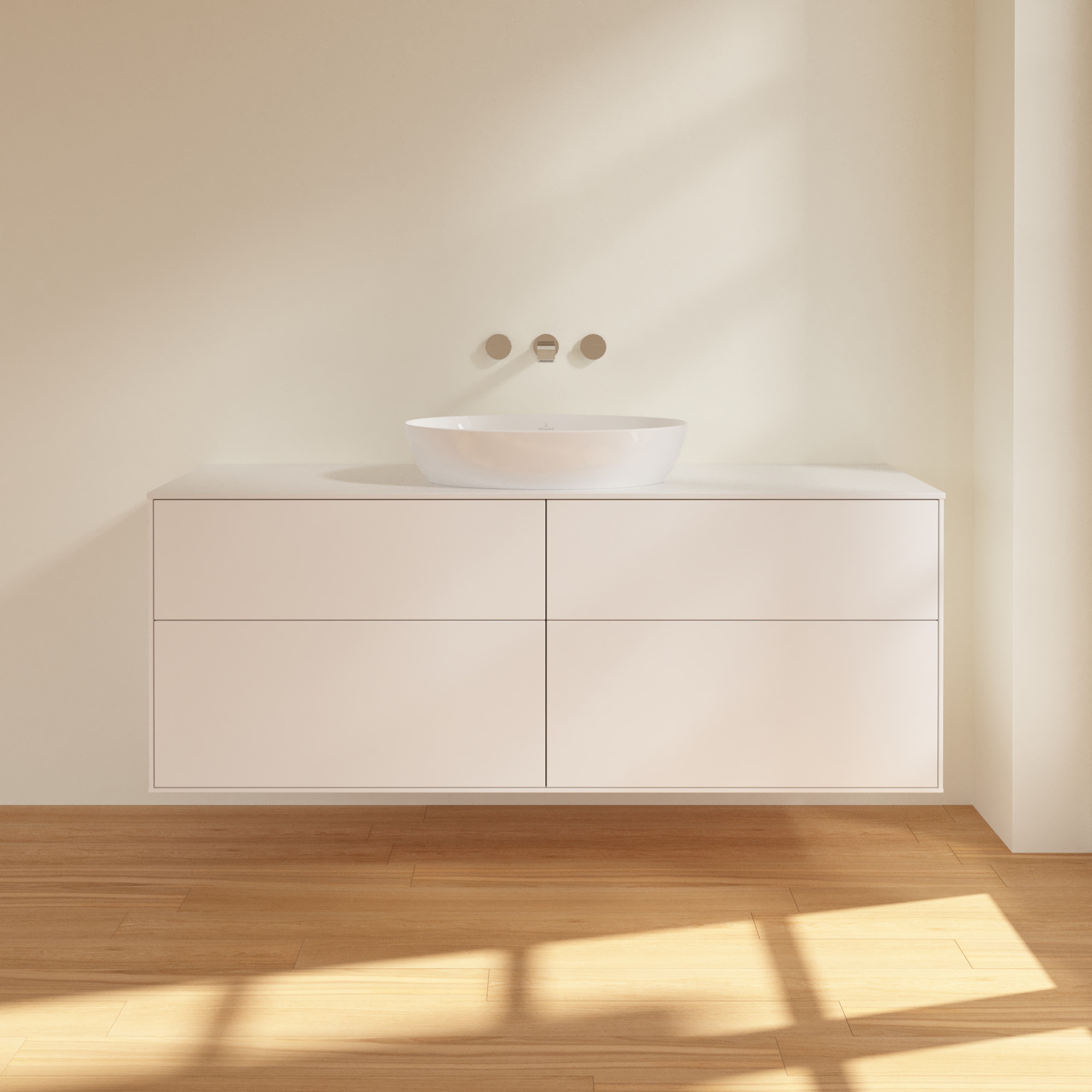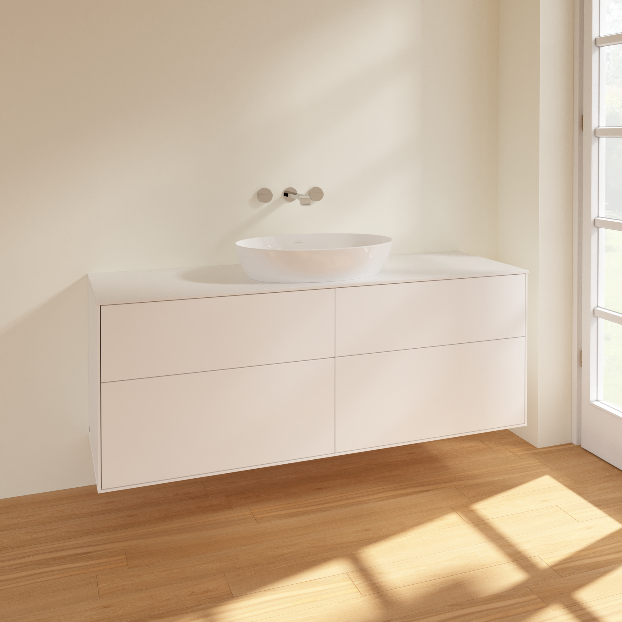 Finion Meuble sous plan, 4 tiroirs sur rails, 1600x603x501mm, Caisson: White Matt Lacquer, Façade: White Matt Lacquer, Plaque de recouvrement: Glass White Matt