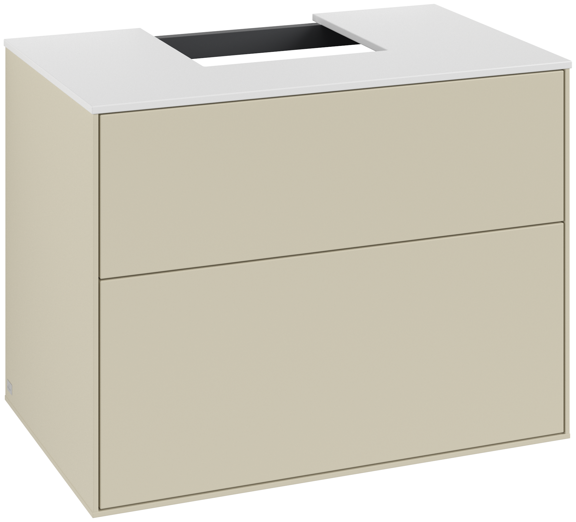 Finion Meuble sous plan, avec éclairage, 2 tiroirs sur rails, 800x603x501mm, Caisson: Silk Grey Matt Lacquer, Façade: Silk Grey Matt Lacquer, Plaque de recouvrement: Glass White Matt