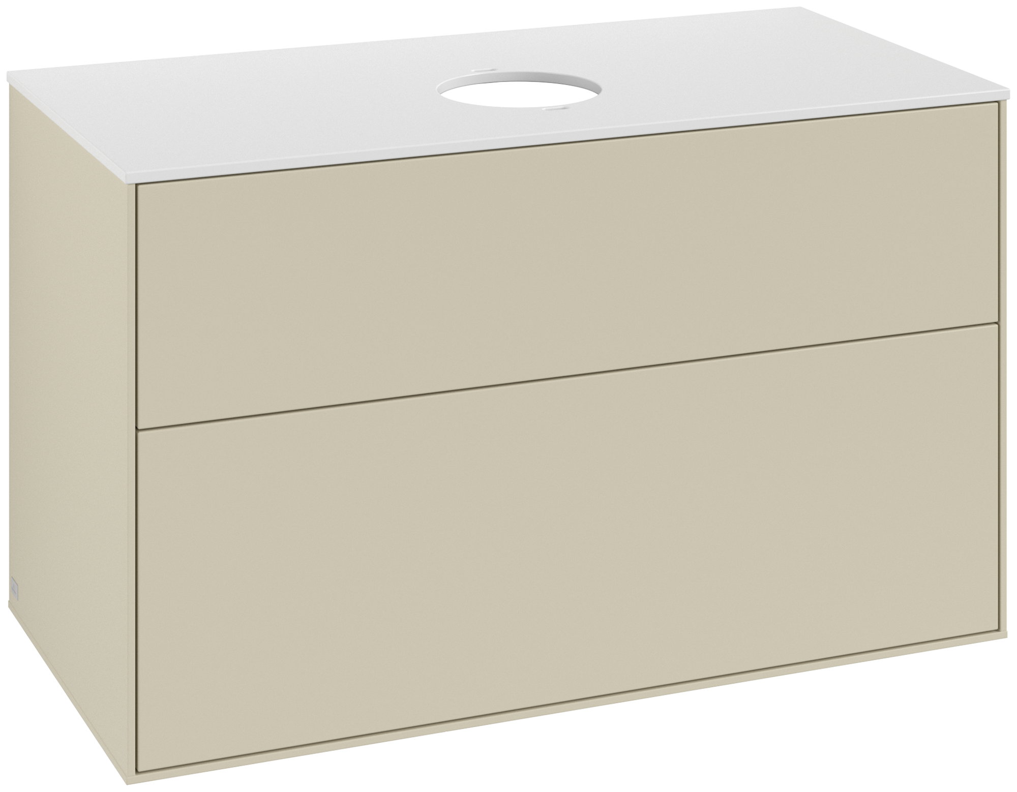 Finion Meuble sous plan, avec éclairage, 2 tiroirs sur rails, 1000x603x501mm, Caisson: Silk Grey Matt Lacquer, Façade: Silk Grey Matt Lacquer, Plaque de recouvrement: Glass White Matt