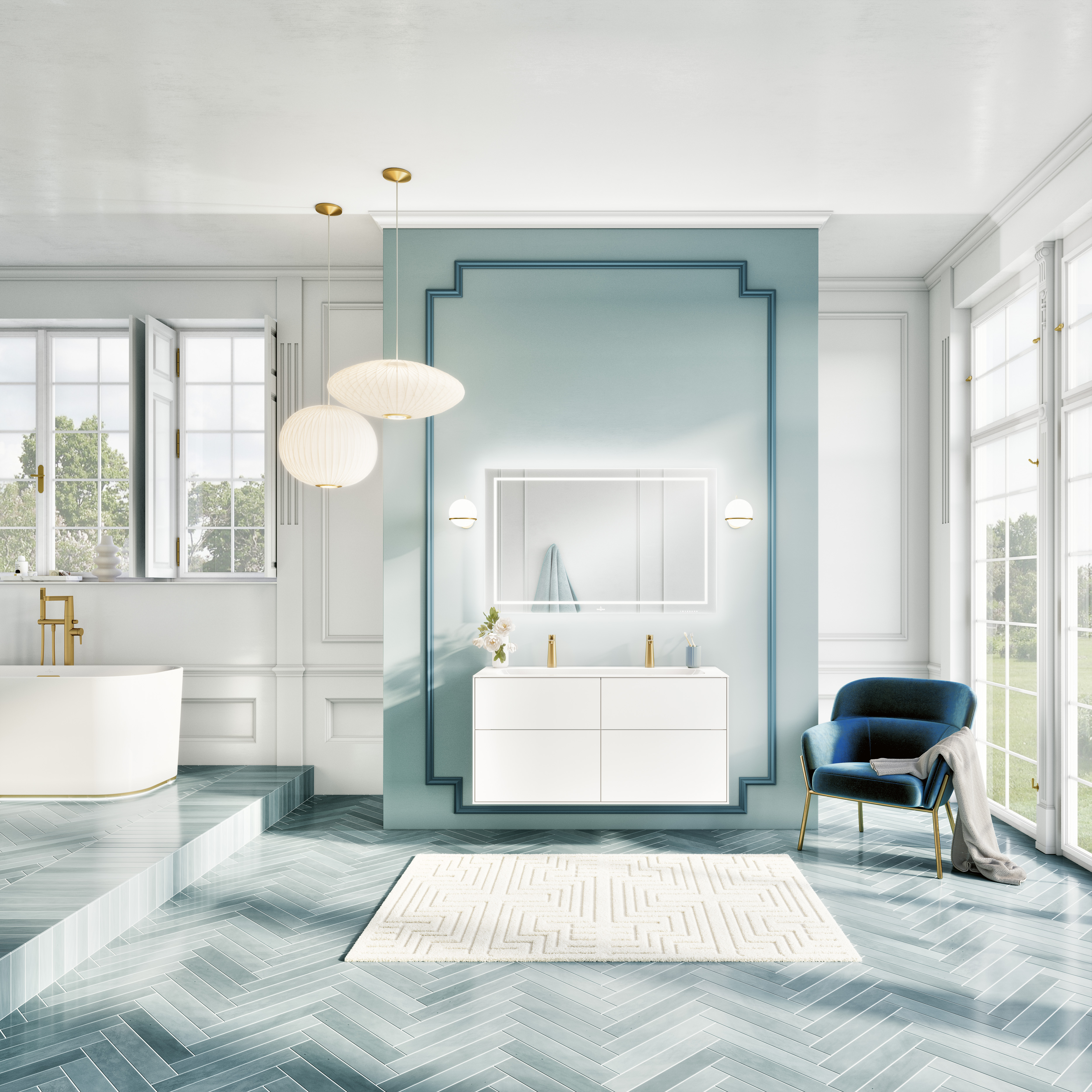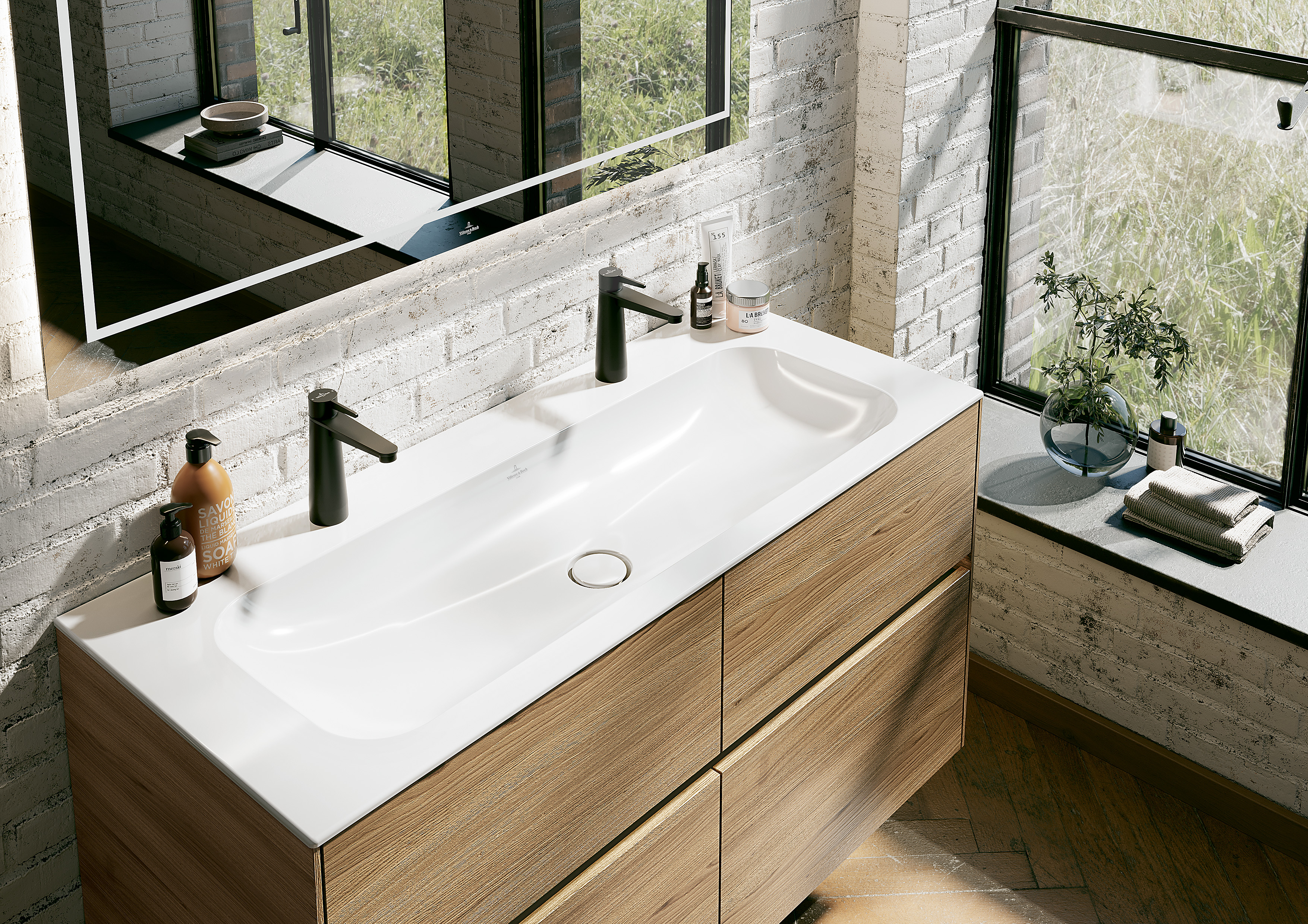 Pour deux robinets, trous de robinetterie percés
