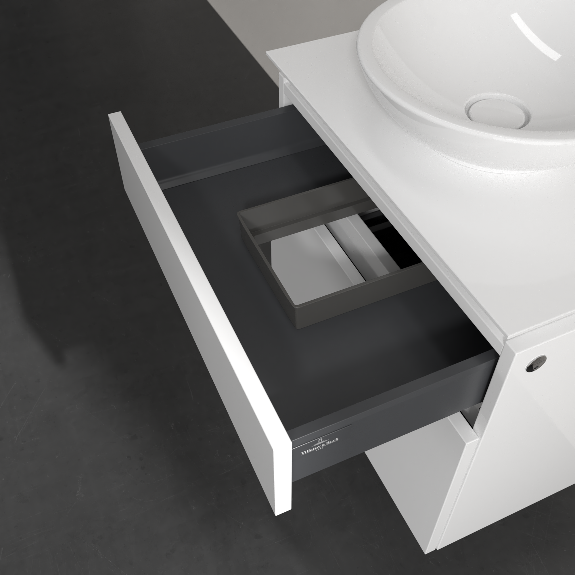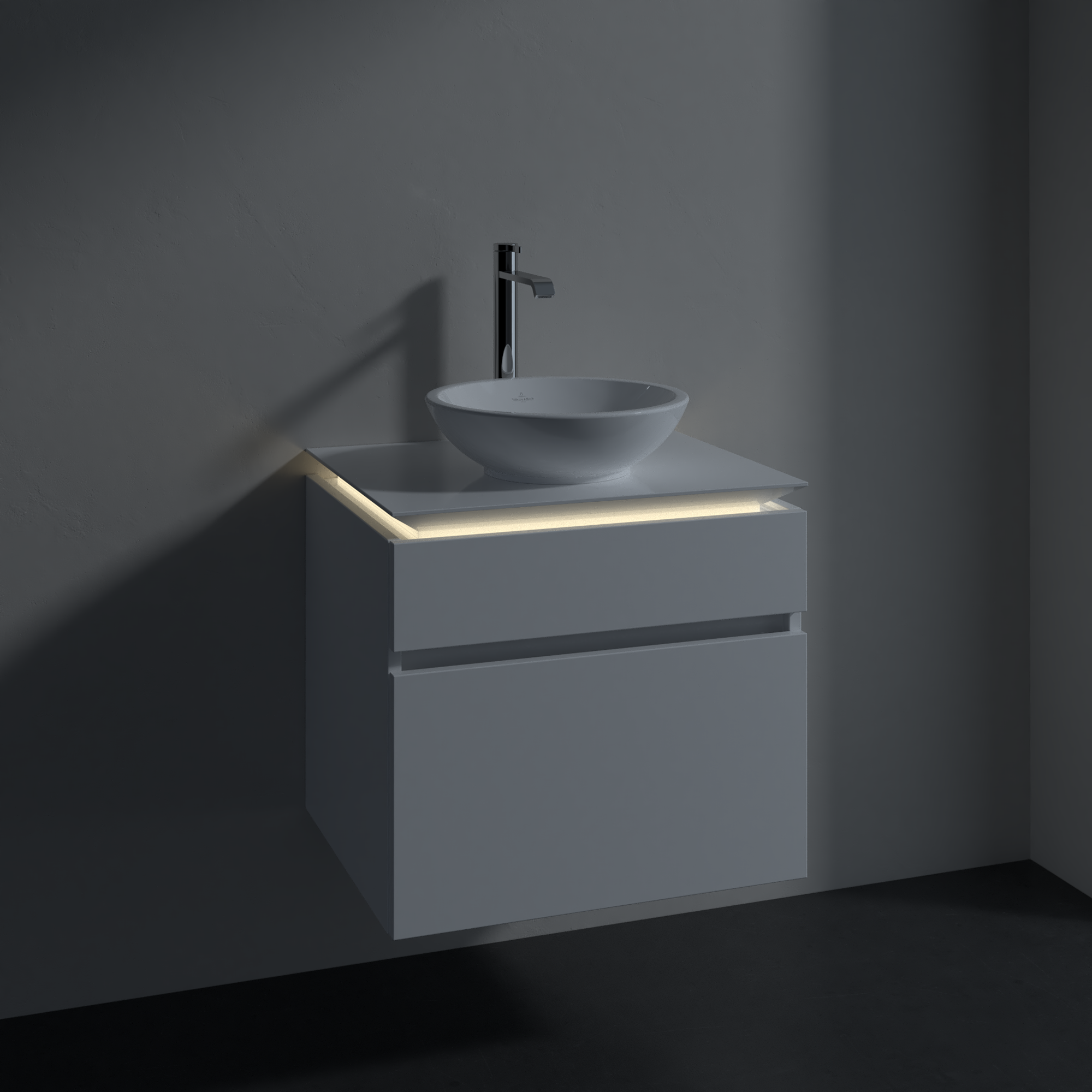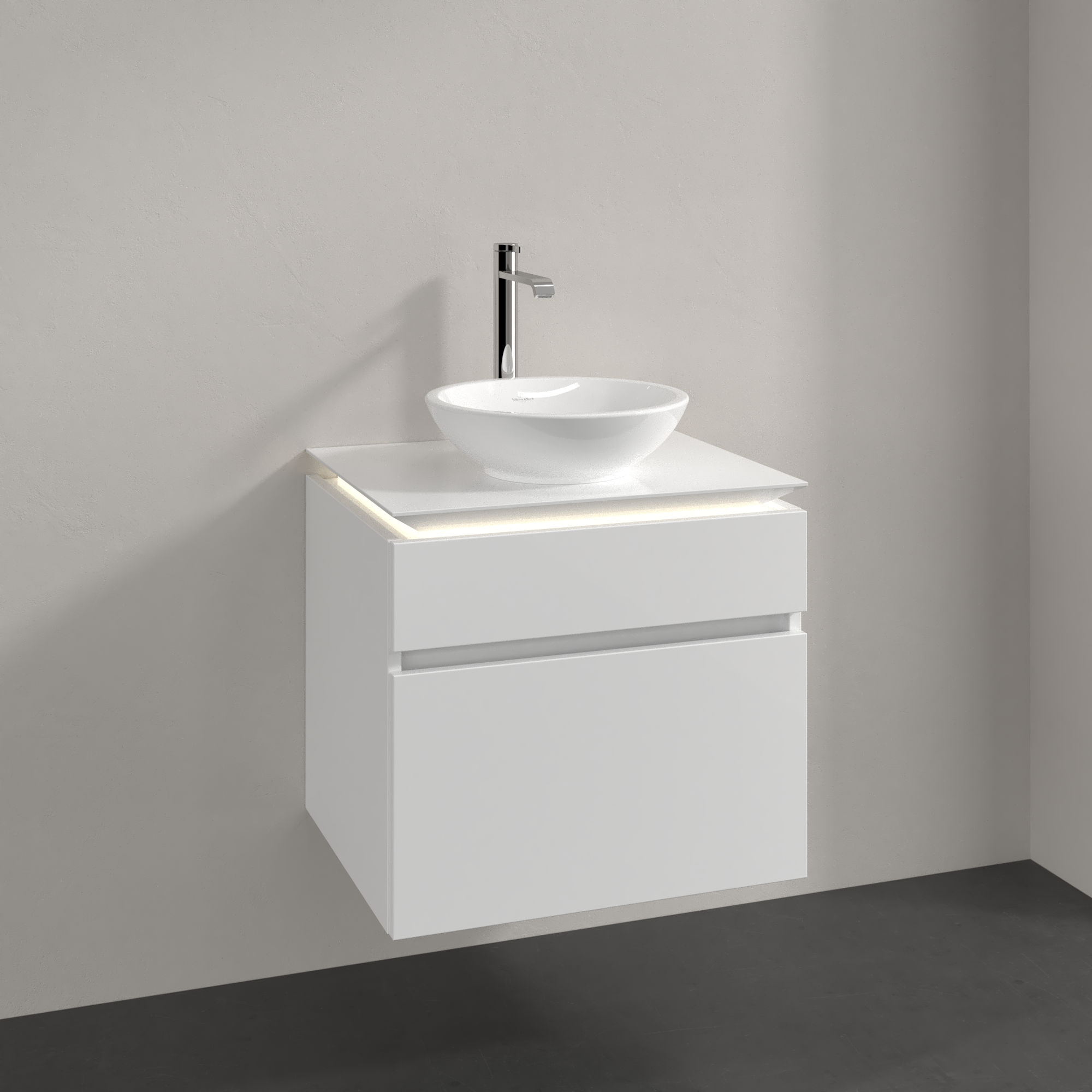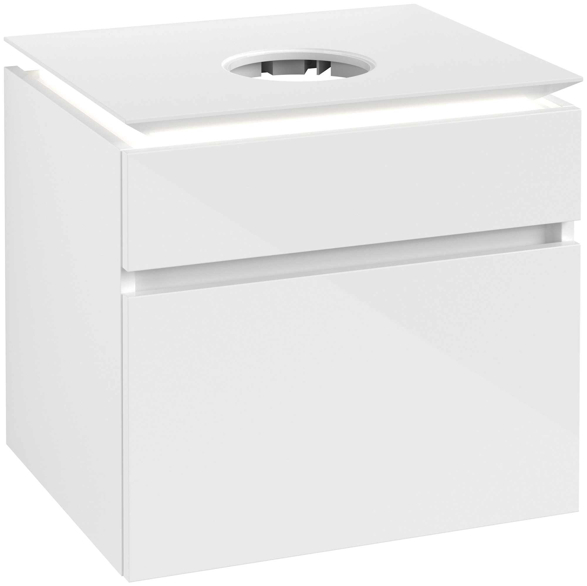 Legato Meuble sous plan, avec éclairage, 2 tiroirs sur rails, 600x550x500mm, Caisson: Glossy White, Façade: Glossy White