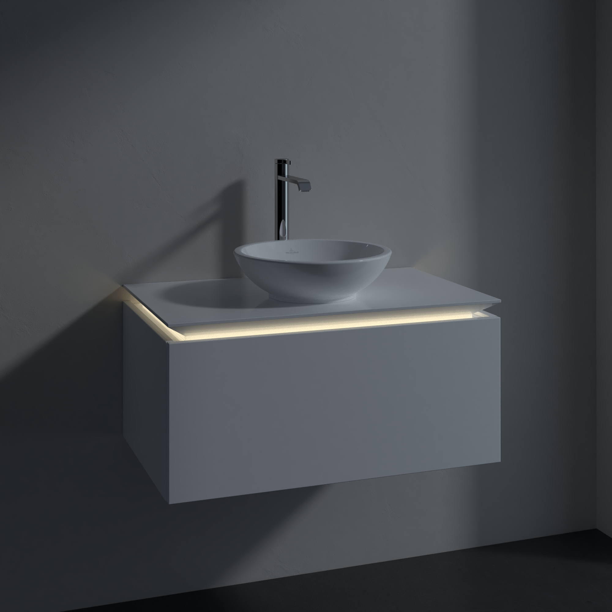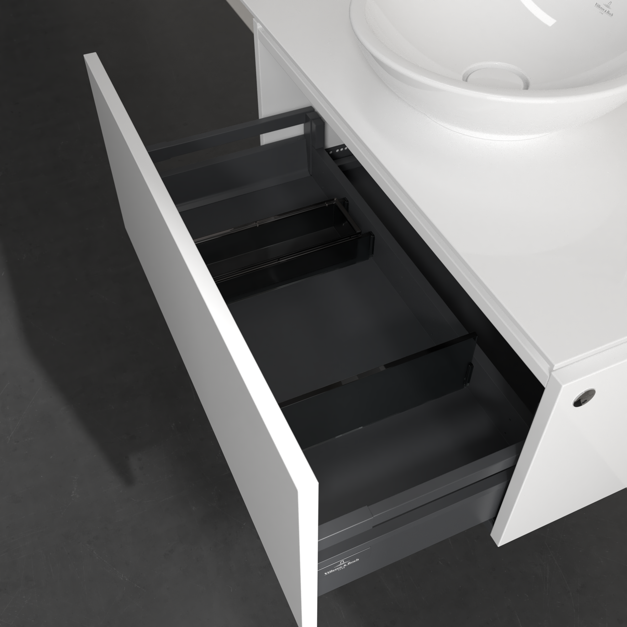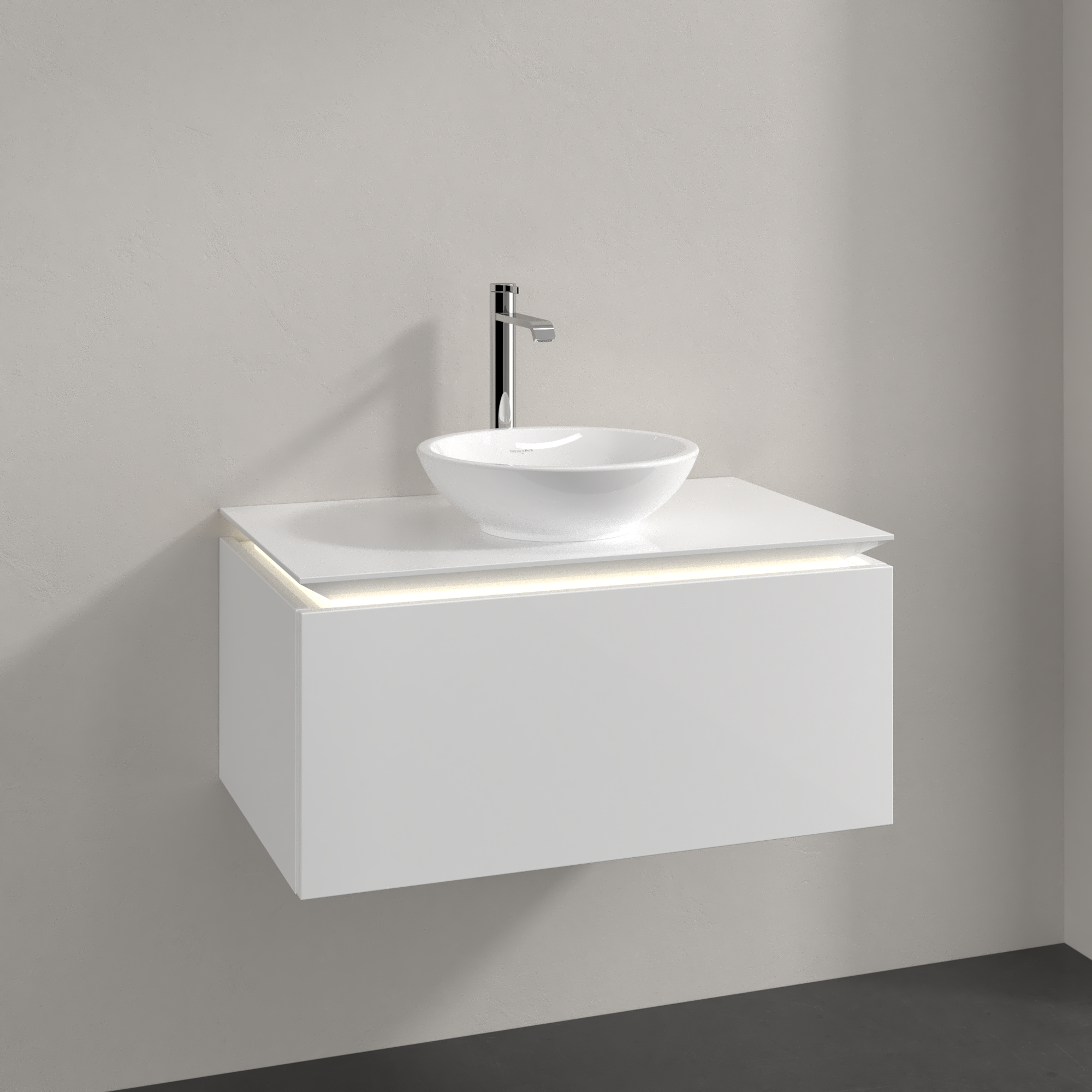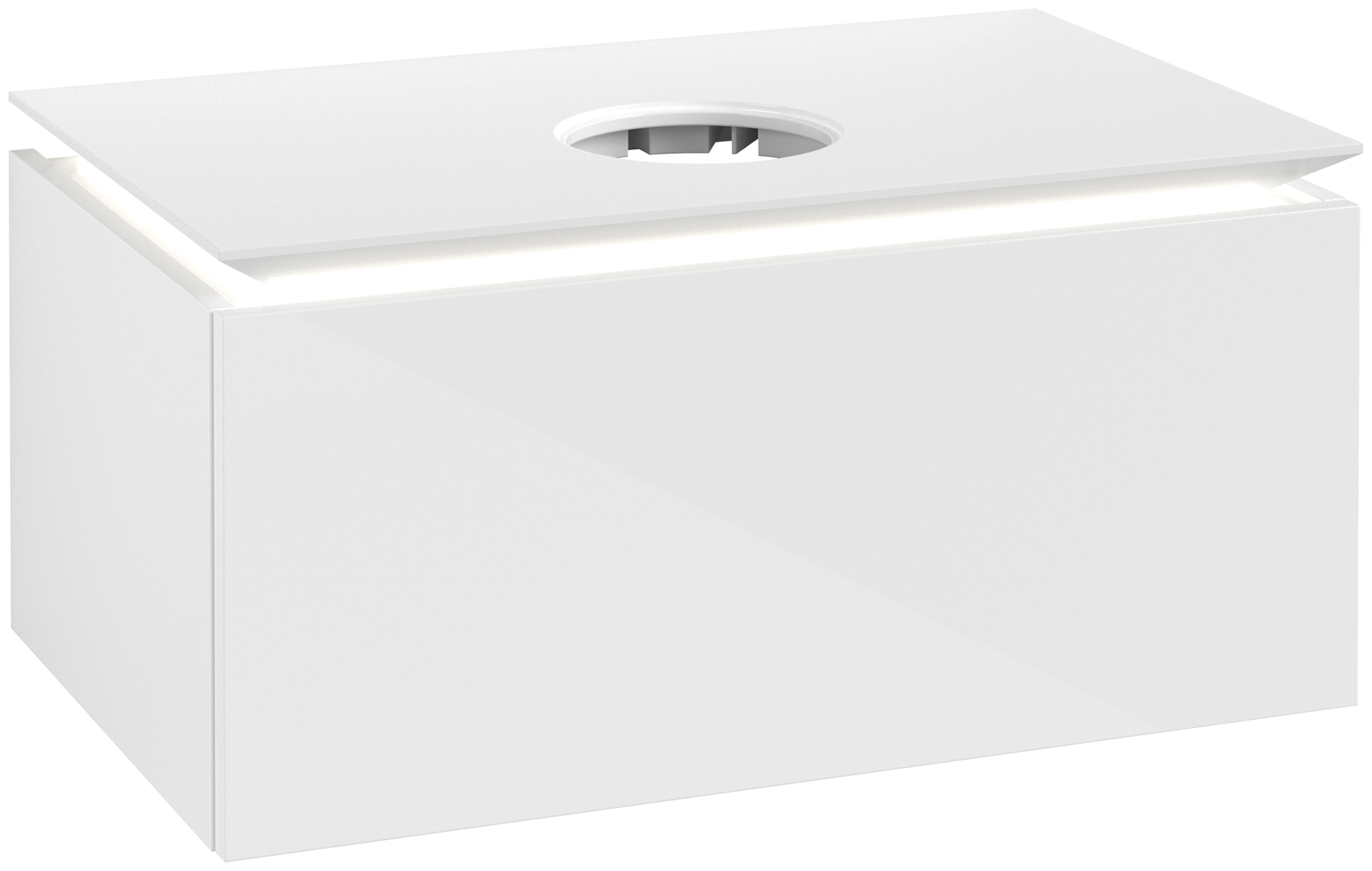 Legato Meuble sous plan, avec éclairage, 1 tiroir sur rails, 800x380x500mm, Caisson: Glossy White, Façade: Glossy White