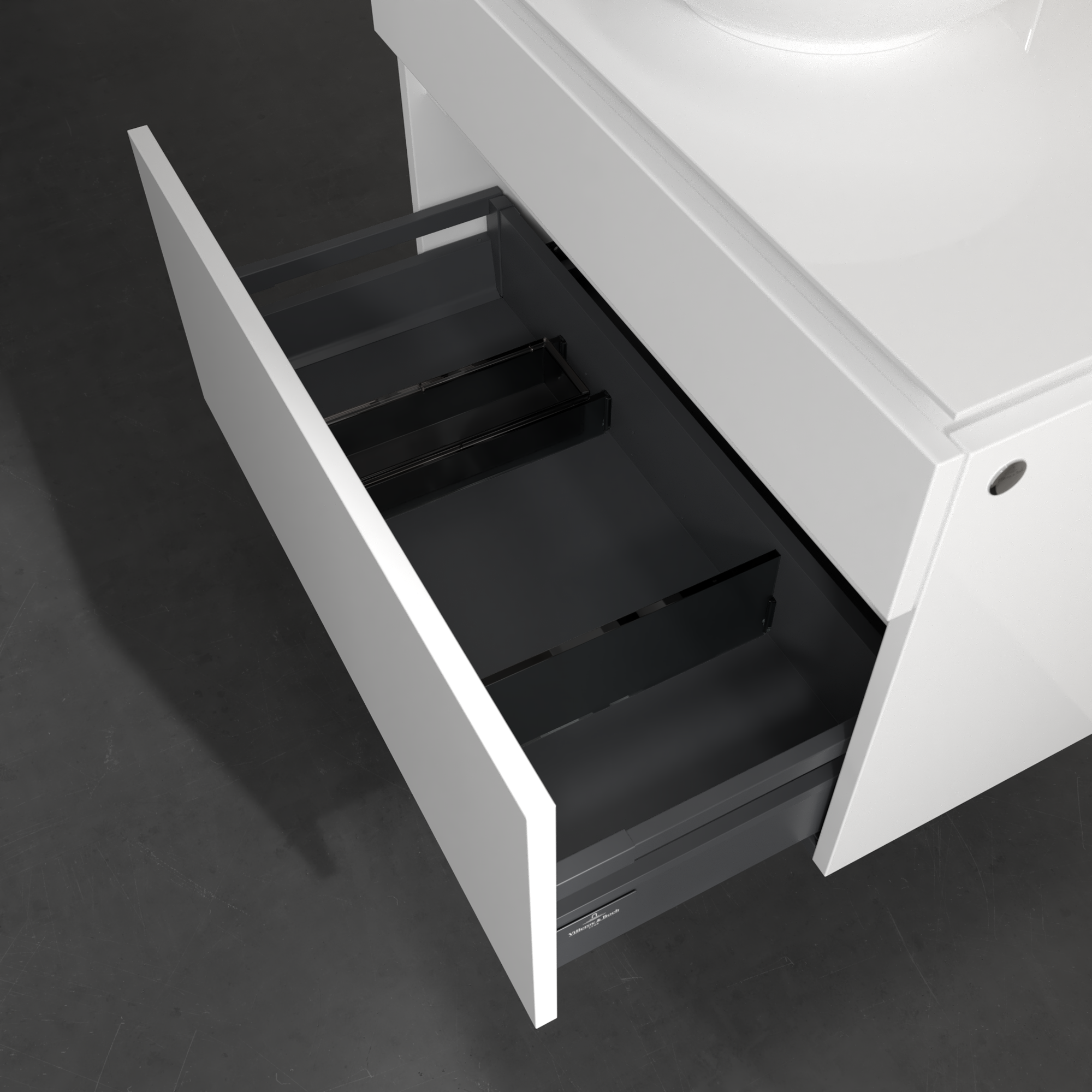Legato Meuble sous plan, 2 tiroirs sur rails, 800x550x500mm, Caisson: Glossy White, Façade: Glossy White