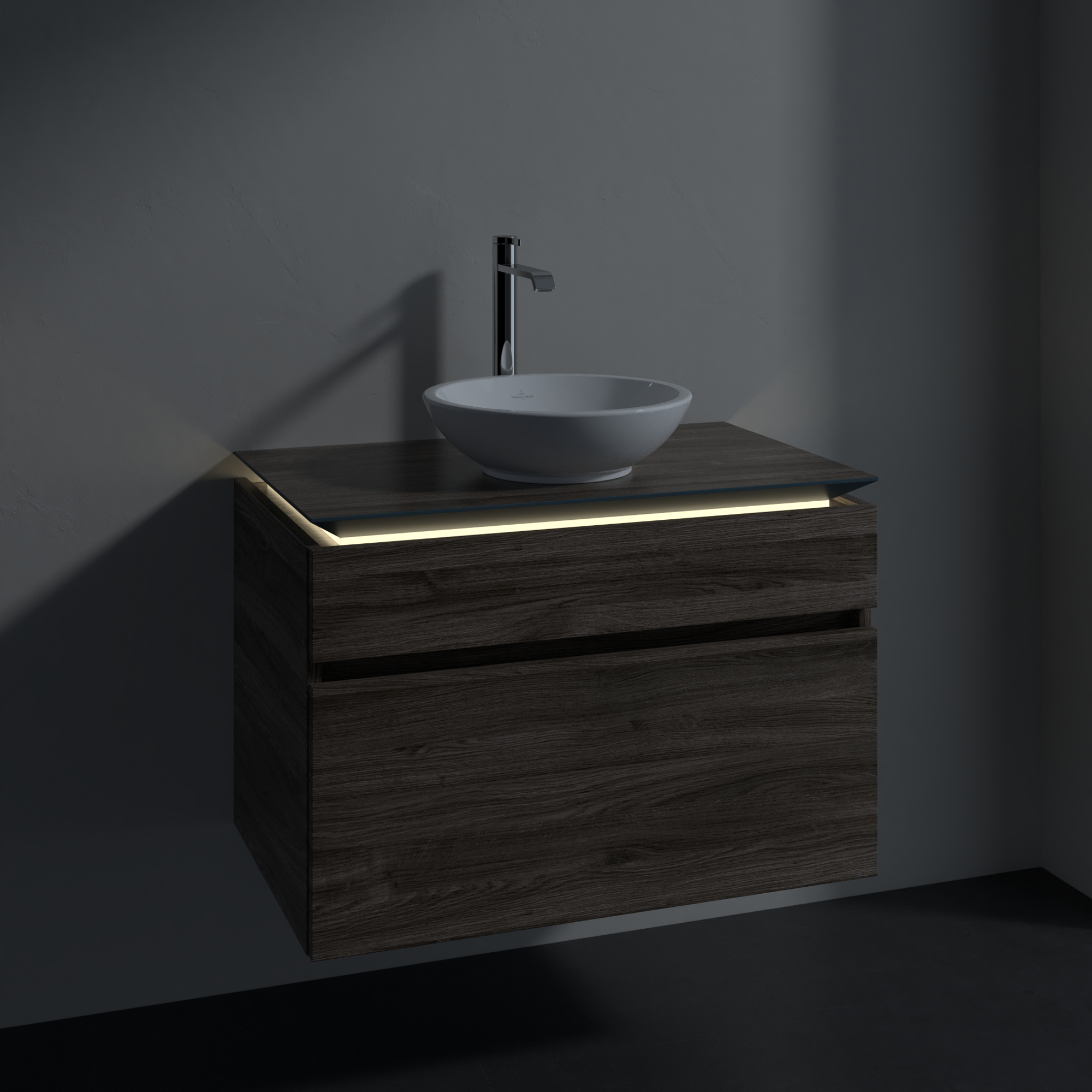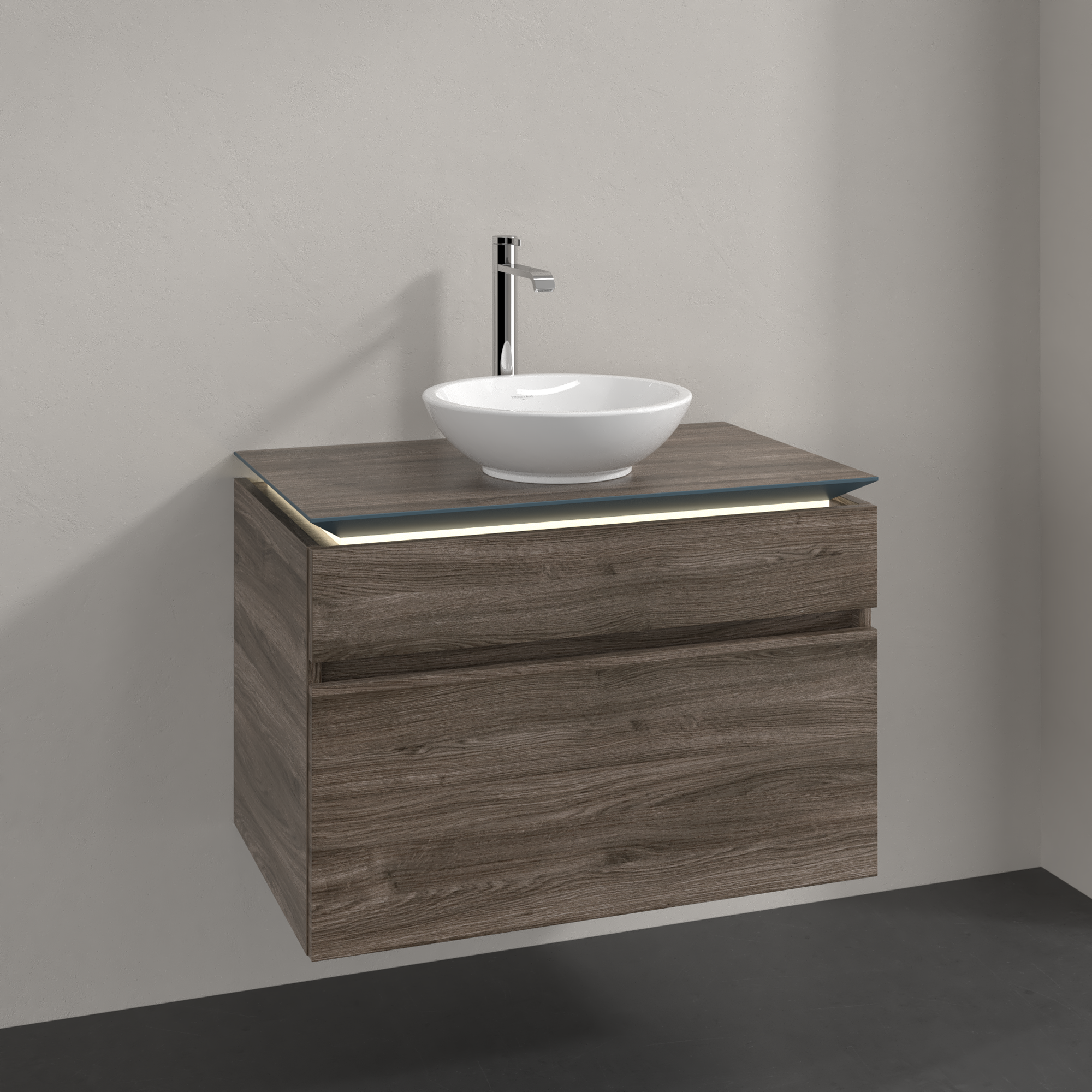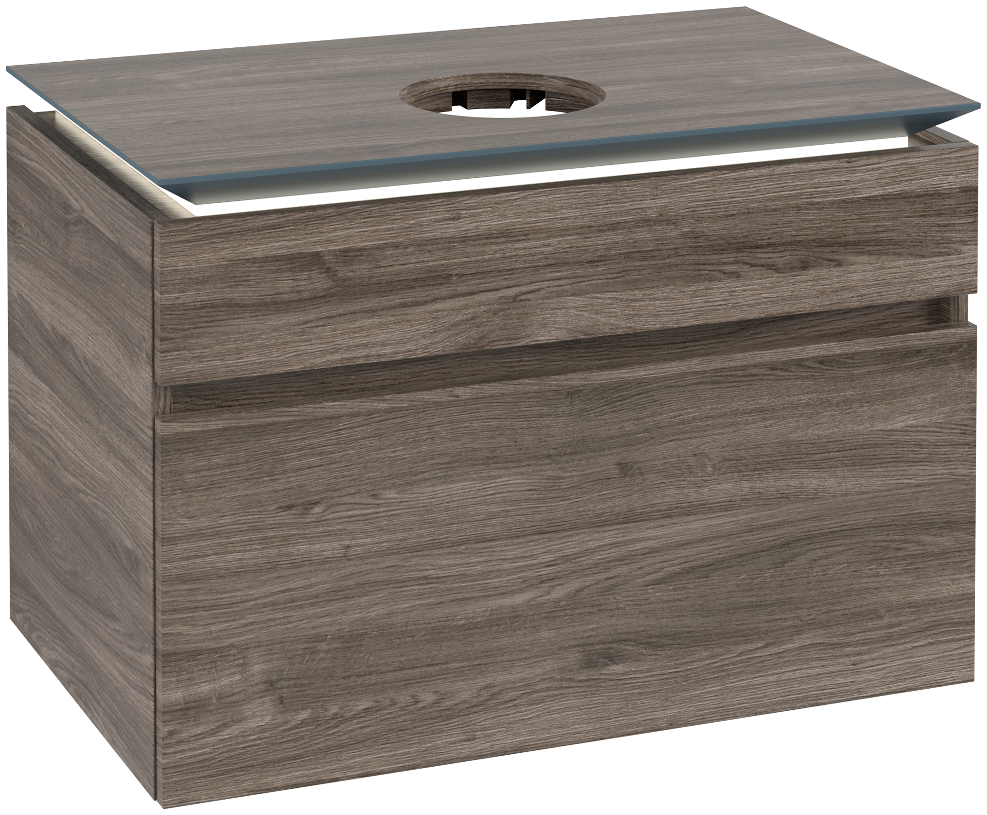 Legato Meuble sous plan, avec éclairage, 2 tiroirs sur rails, 800x550x500mm, Caisson: Stone Oak, Façade: Stone Oak