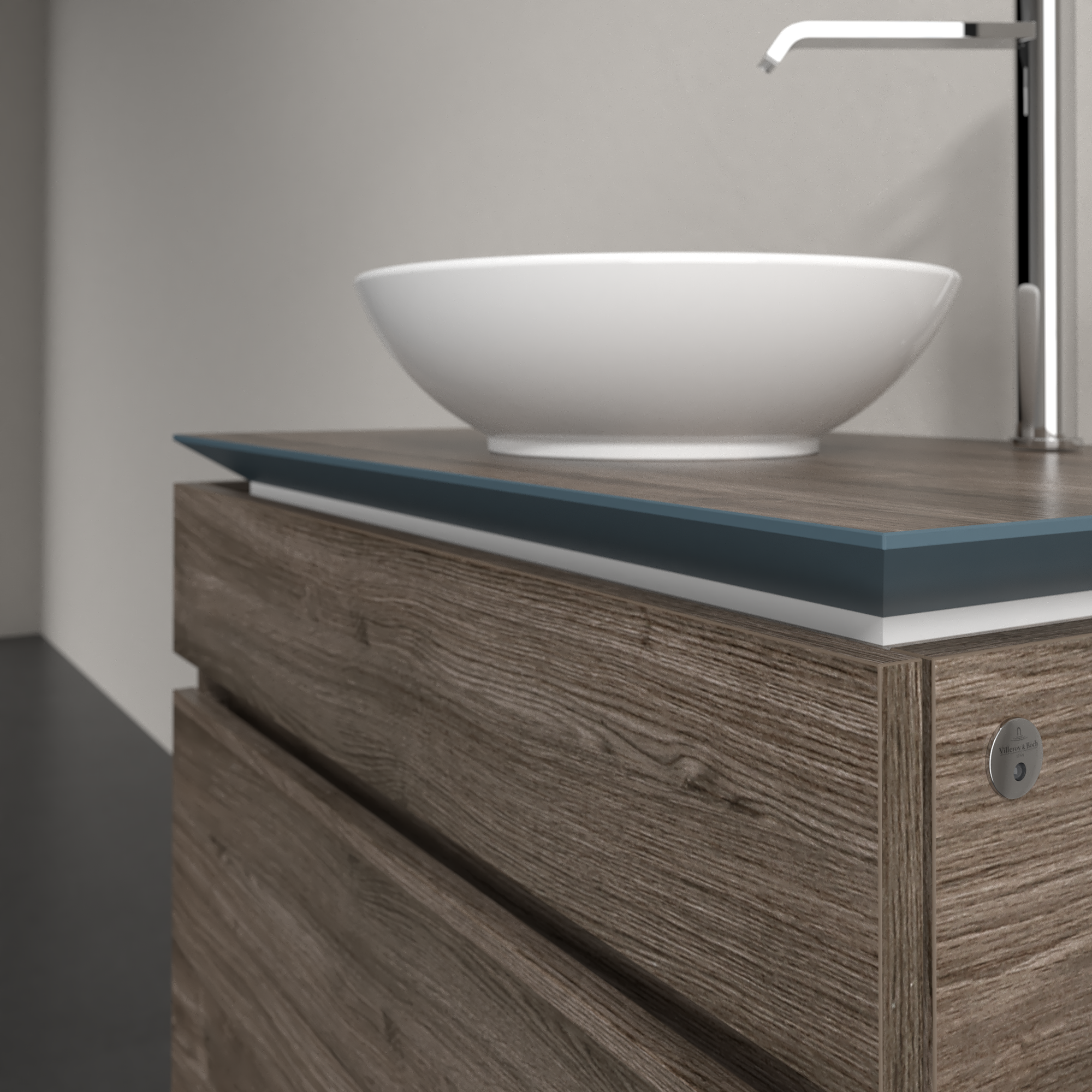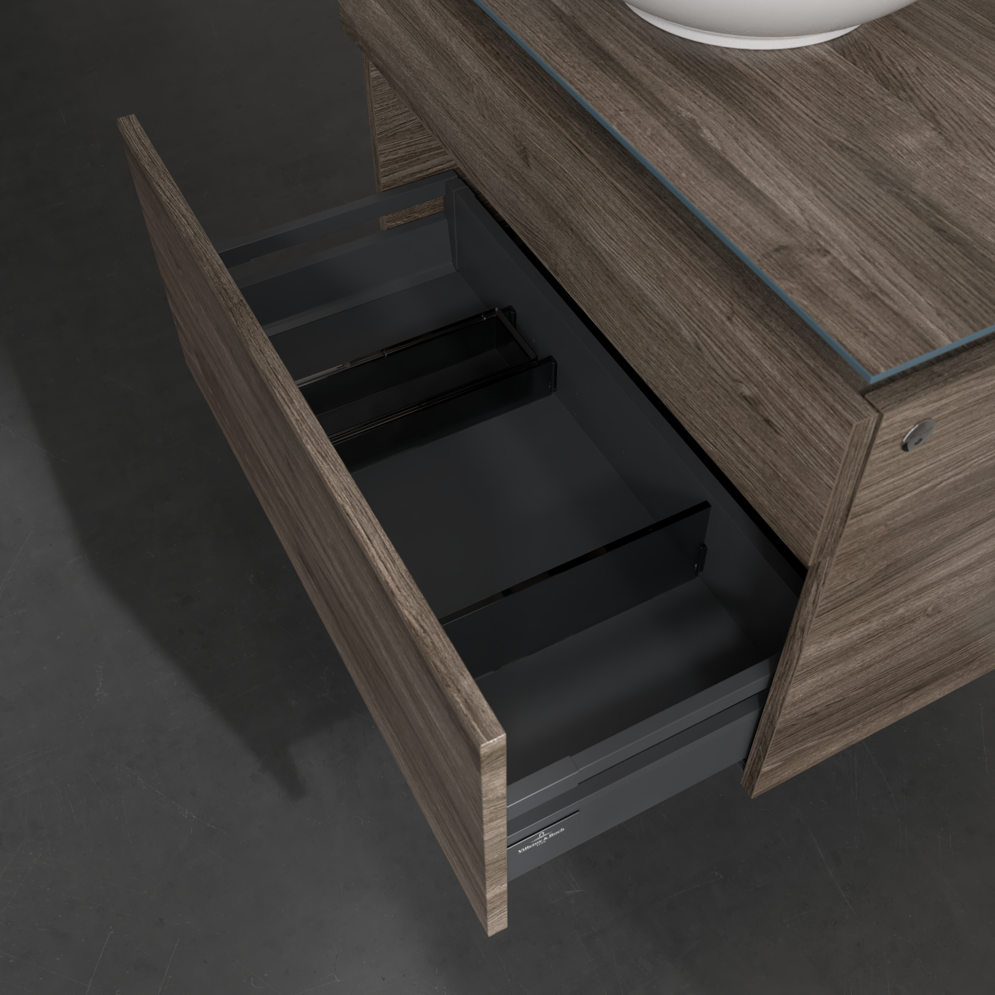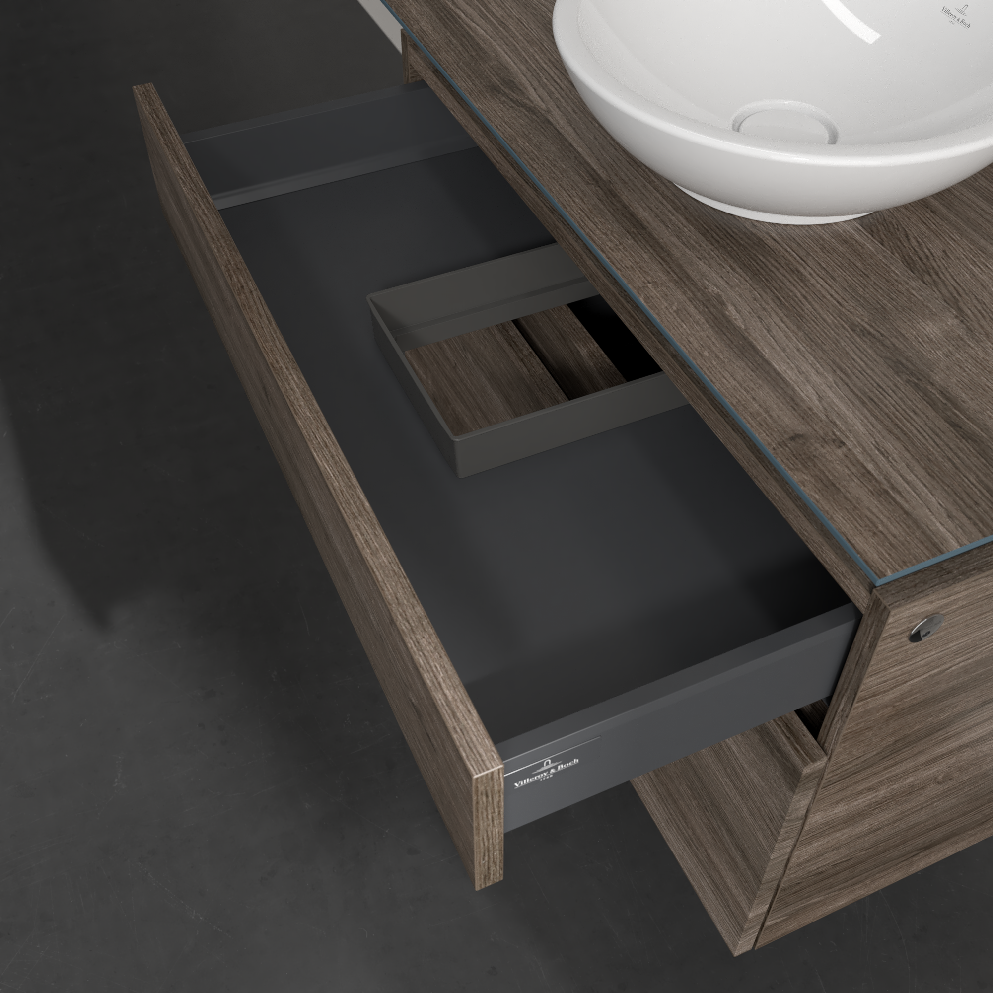 Legato Meuble sous plan, avec éclairage, 2 tiroirs sur rails, 800x550x500mm, Caisson: Stone Oak, Façade: Stone Oak