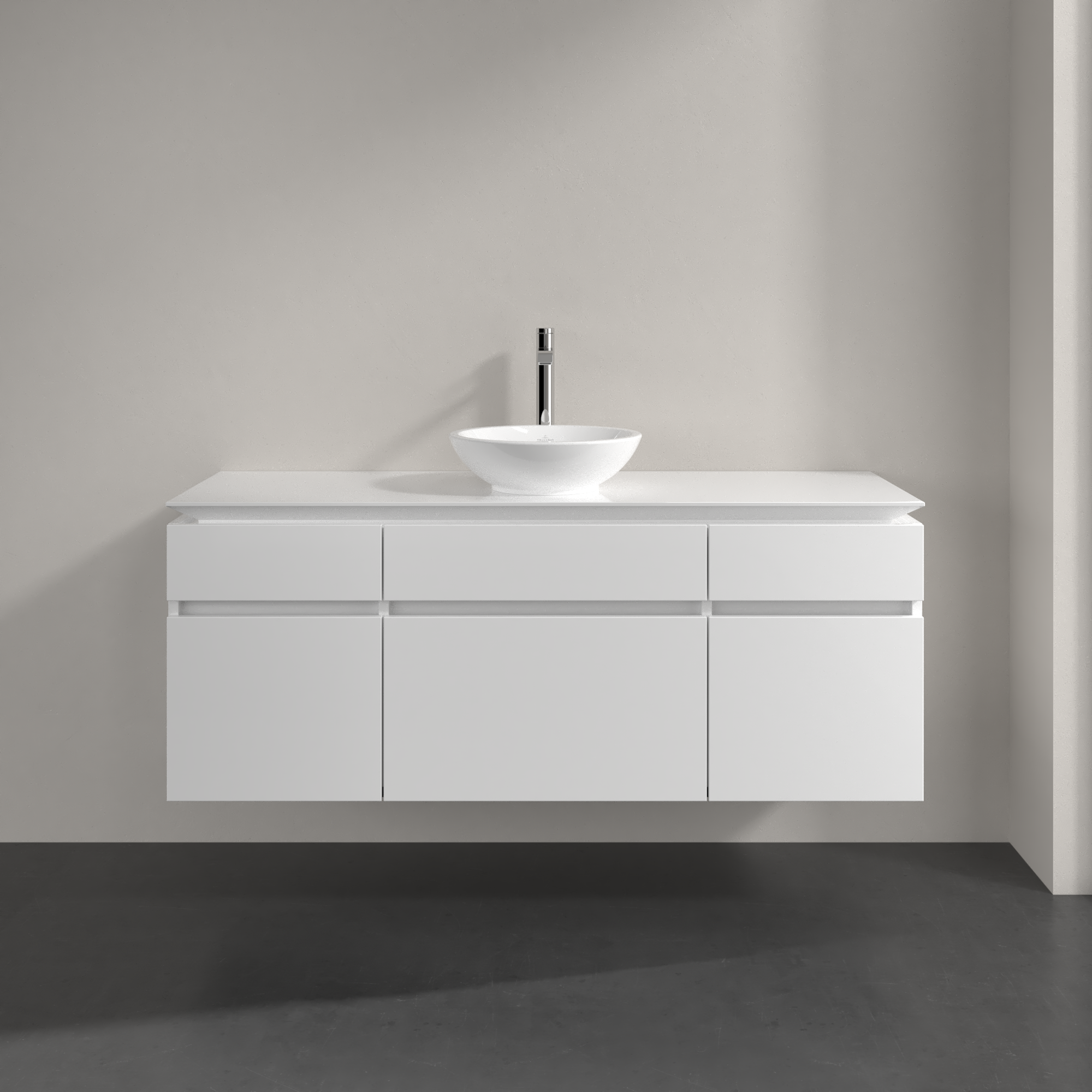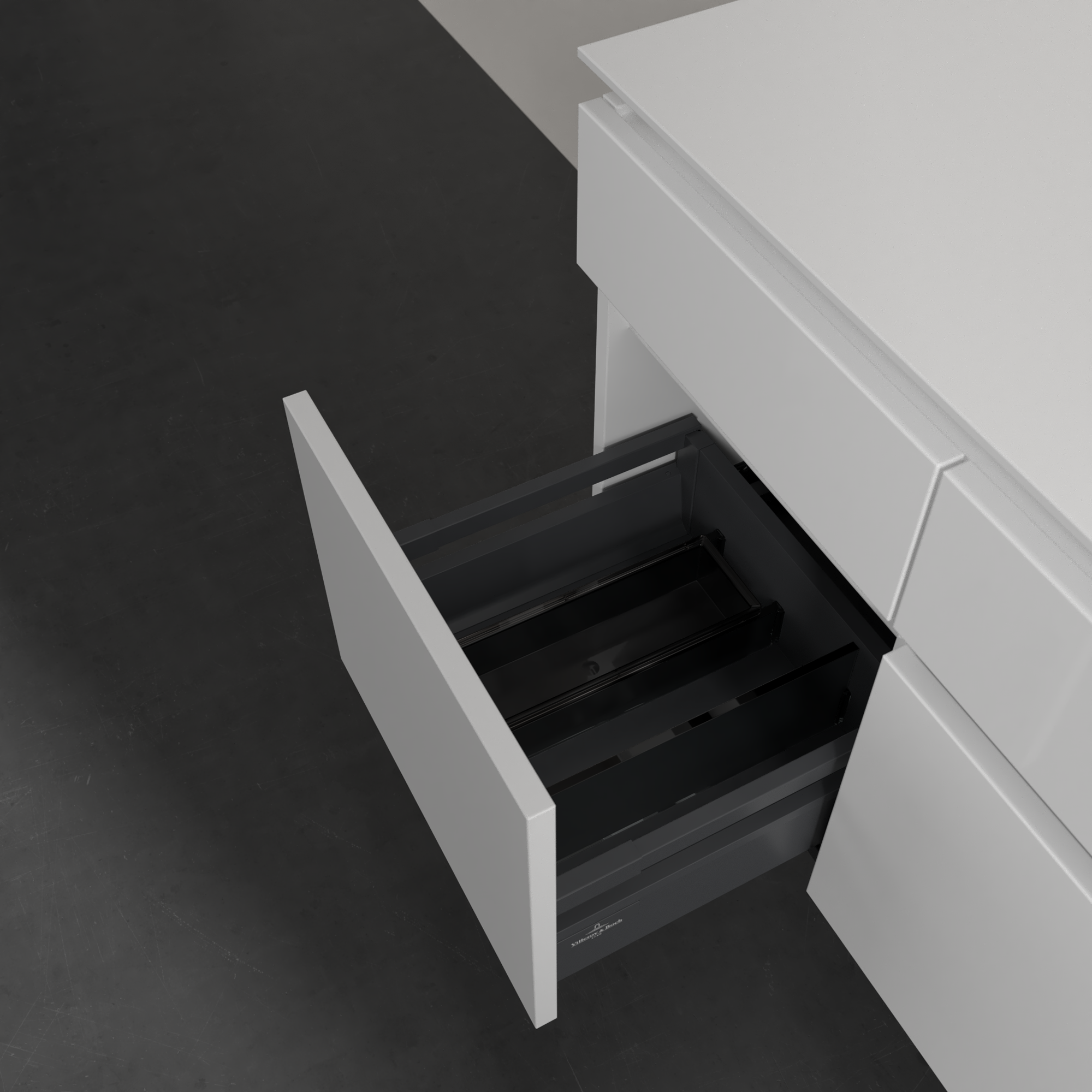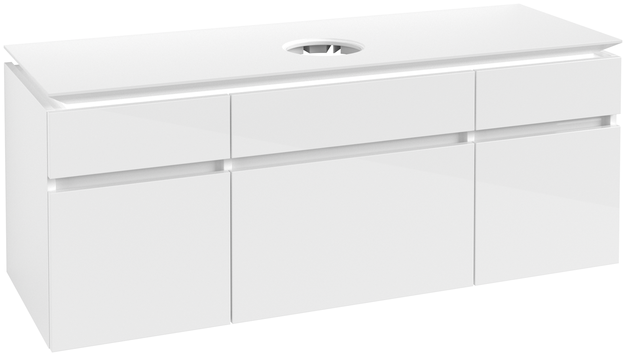 Legato Meuble sous plan, 5 tiroirs sur rails, 1400x550x500mm, Caisson: Glossy White, Façade: Glossy White