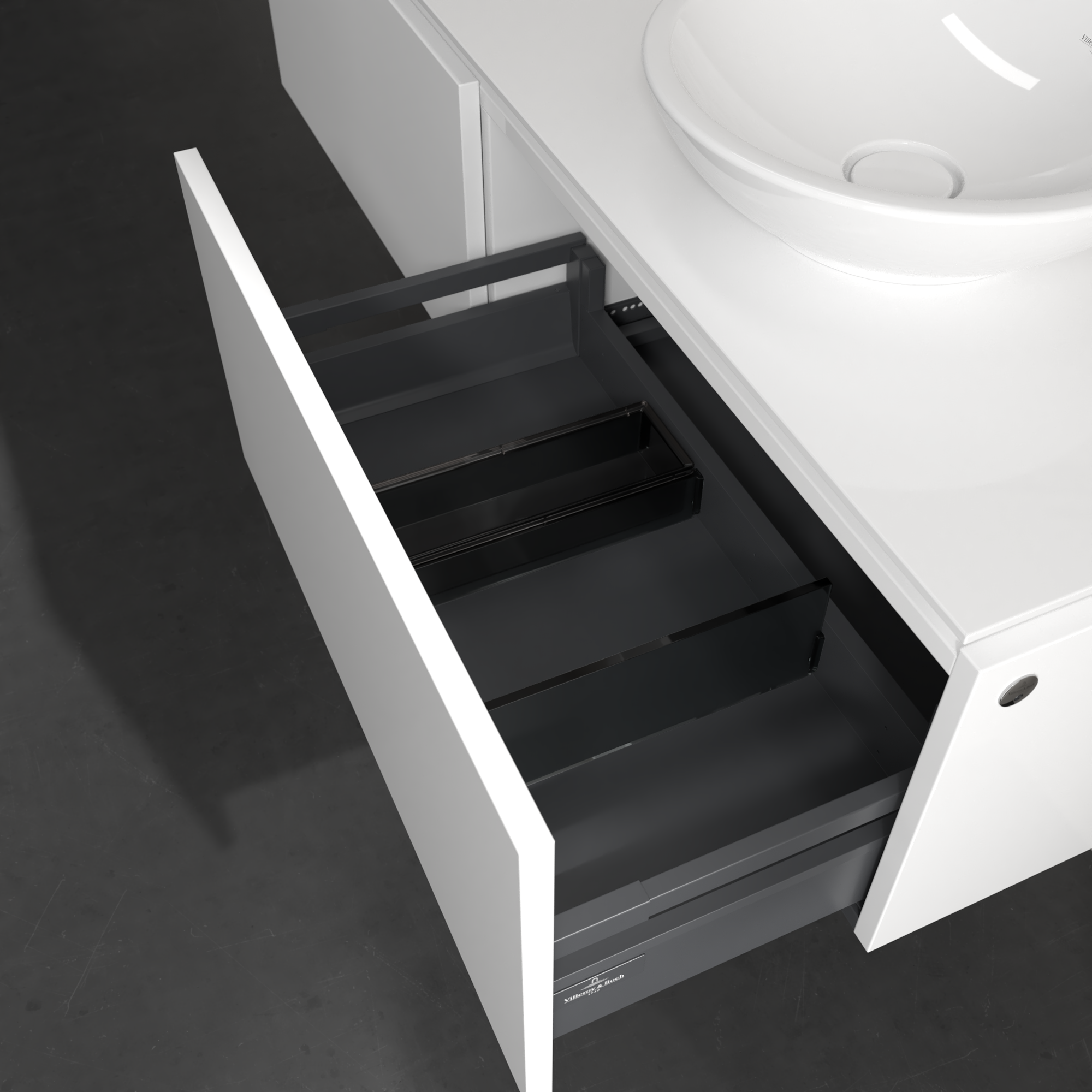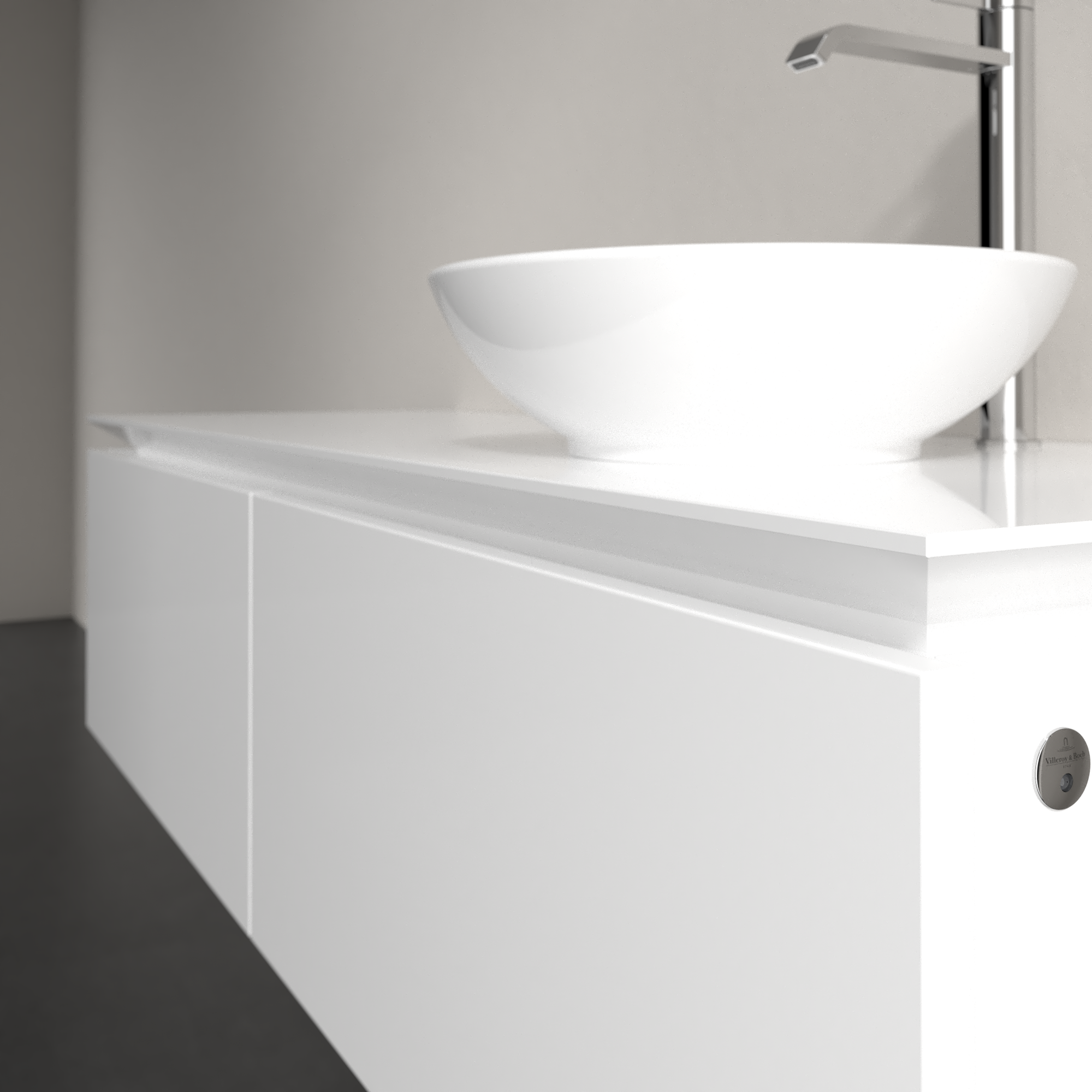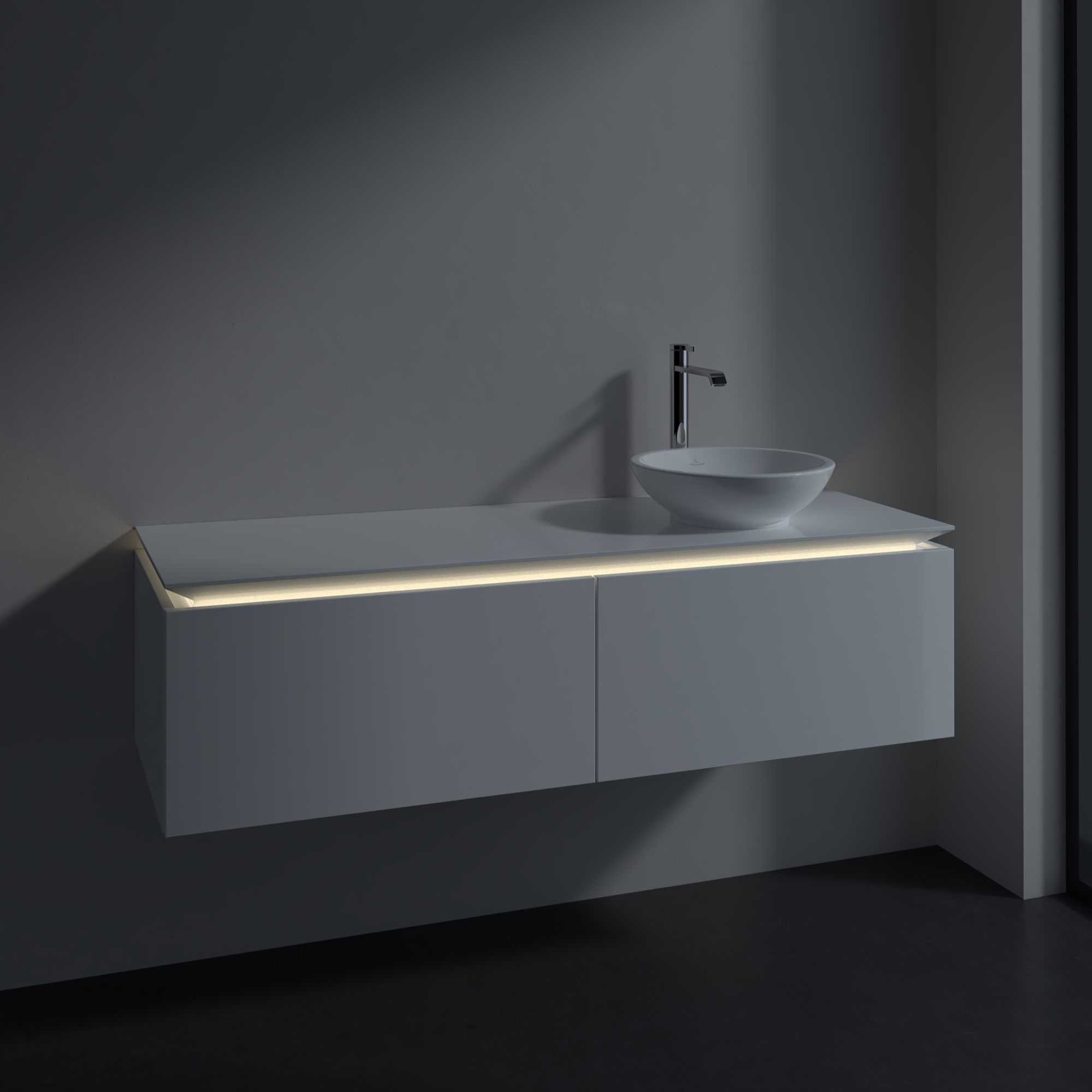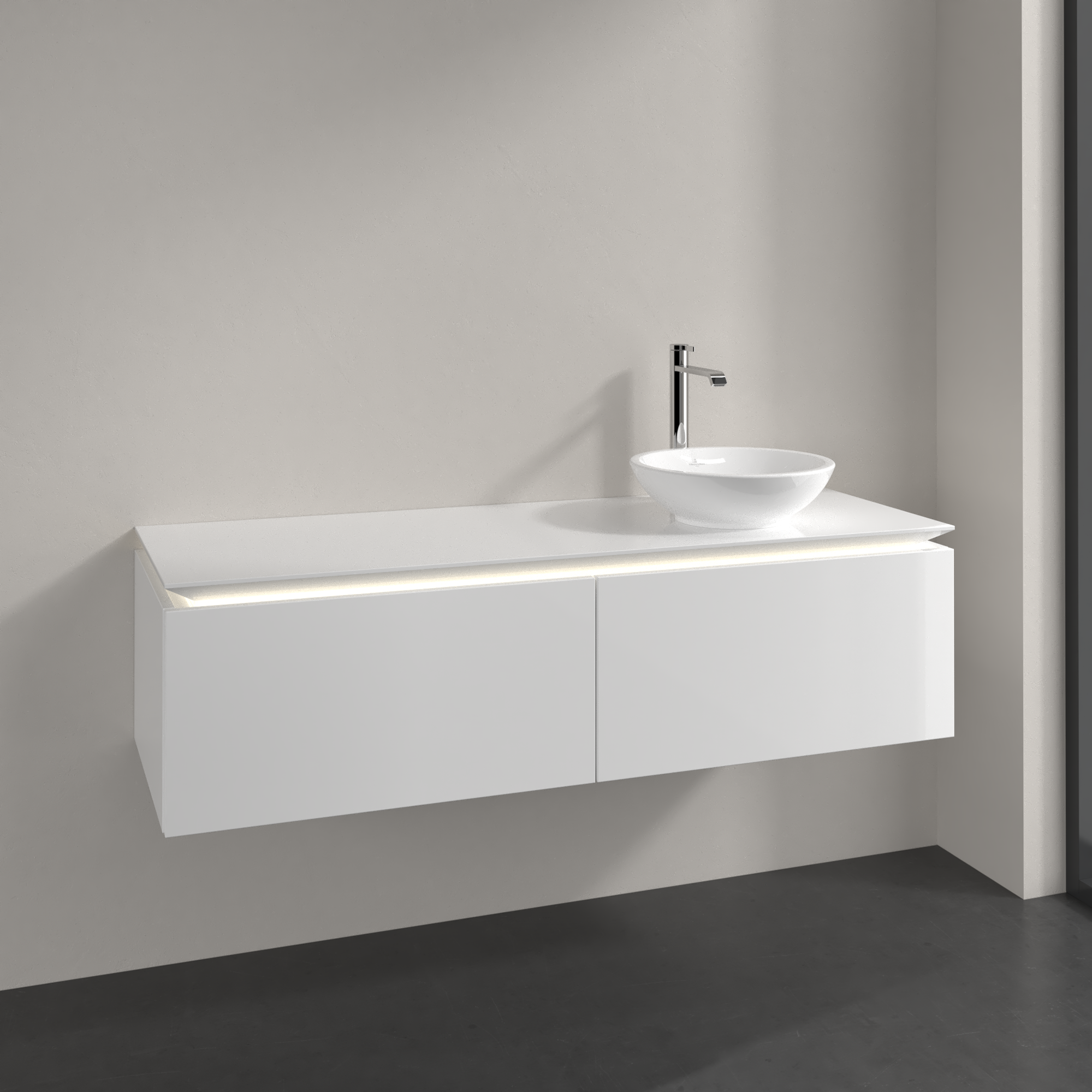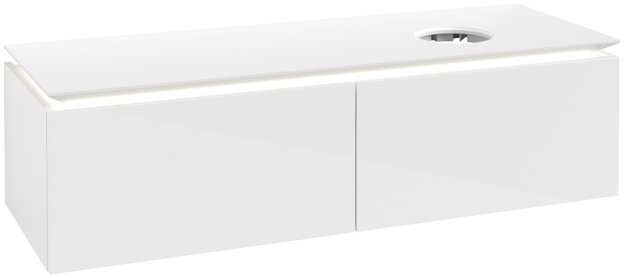 Legato Meuble sous plan, avec éclairage, 2 tiroirs sur rails, 1400x380x500mm, Caisson: Glossy White, Façade: Glossy White