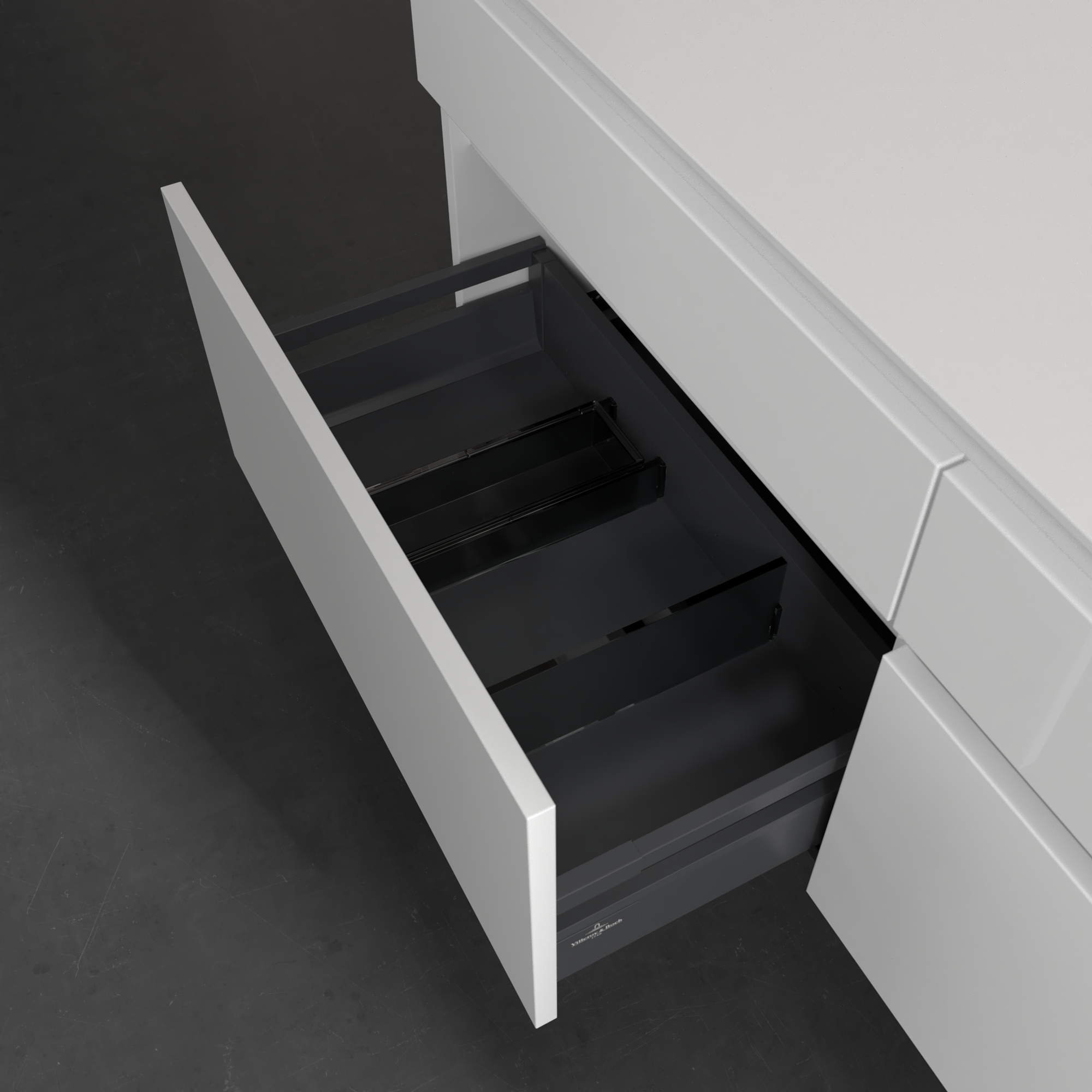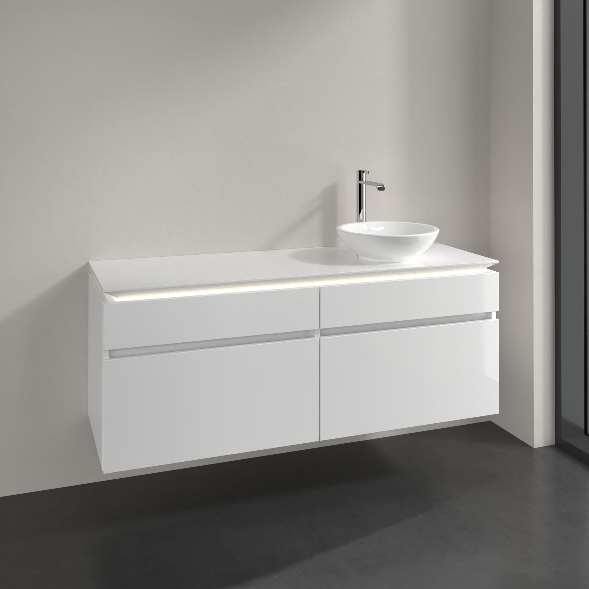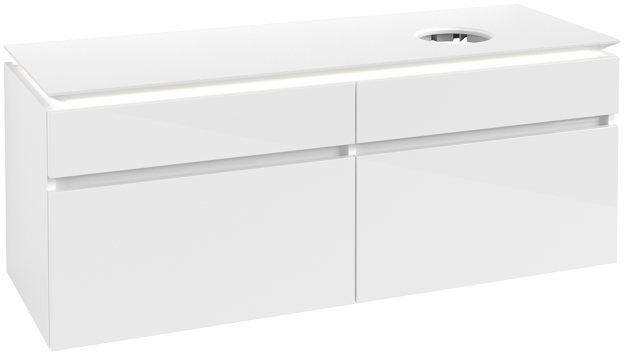 Legato Meuble sous plan, avec éclairage, 4 tiroirs sur rails, 1400x550x500mm, Caisson: Glossy White, Façade: Glossy White