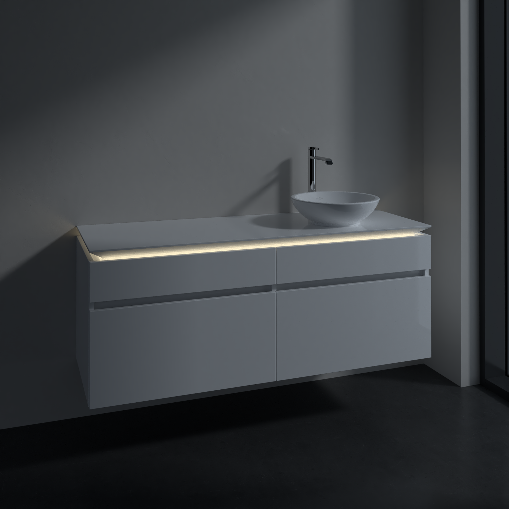 avec éclairage LED sous le plan de lavabo