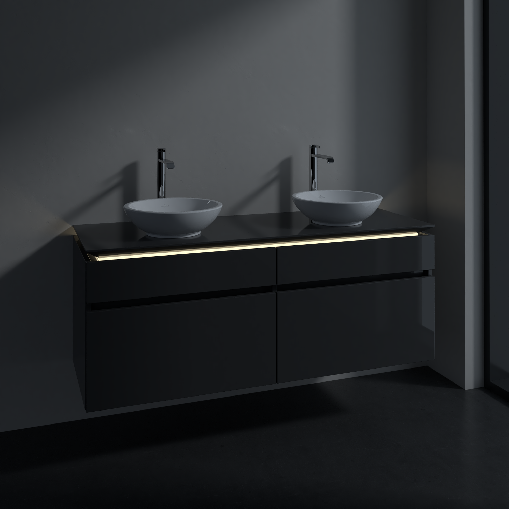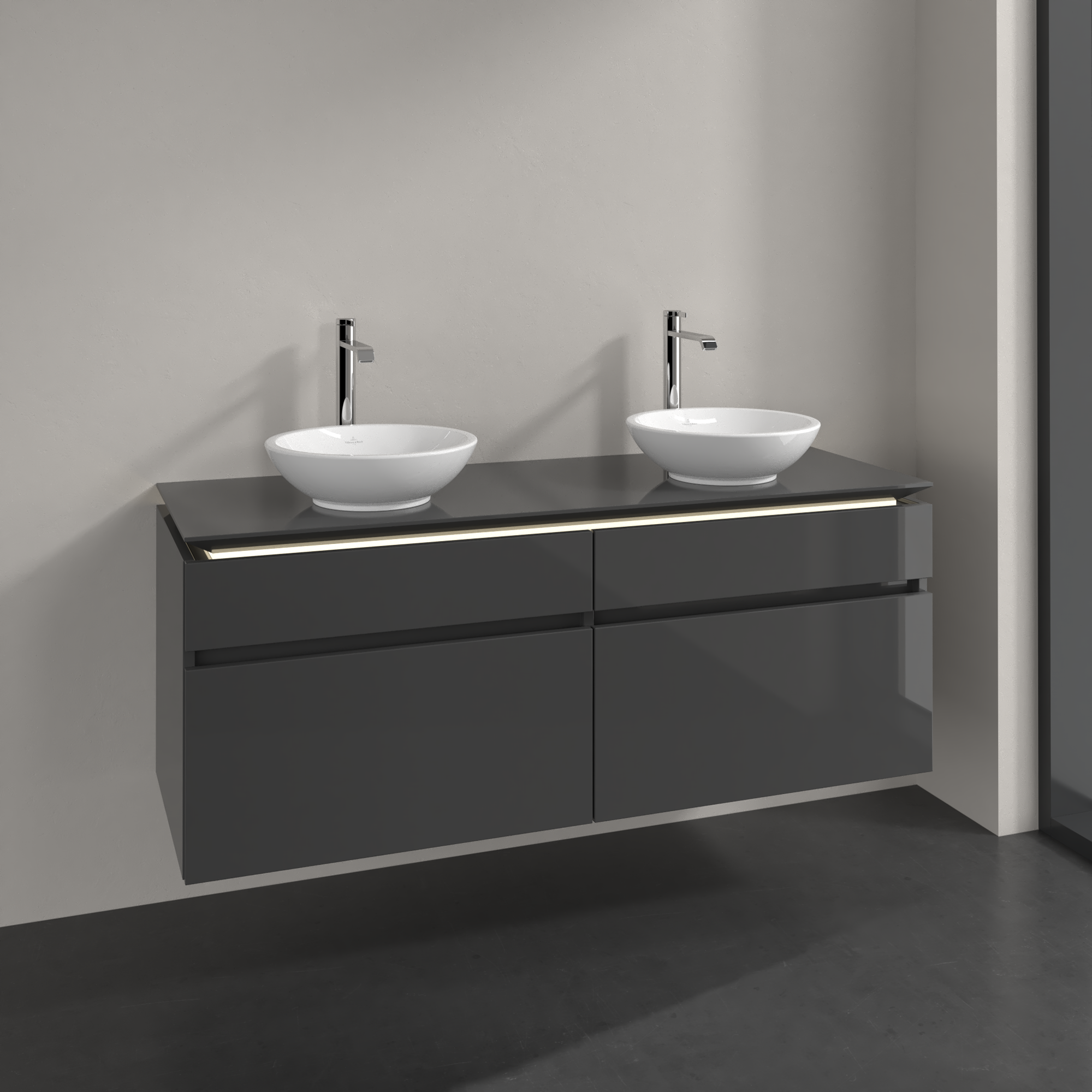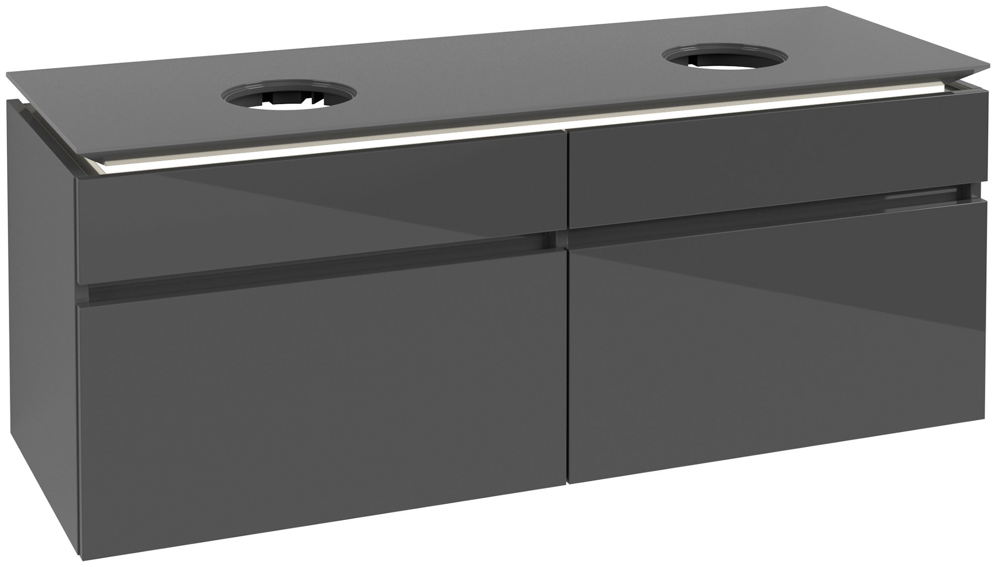 Legato Meuble sous plan, avec éclairage, 4 tiroirs sur rails, 1400x550x500mm, Caisson: Glossy Grey, Façade: Glossy Grey