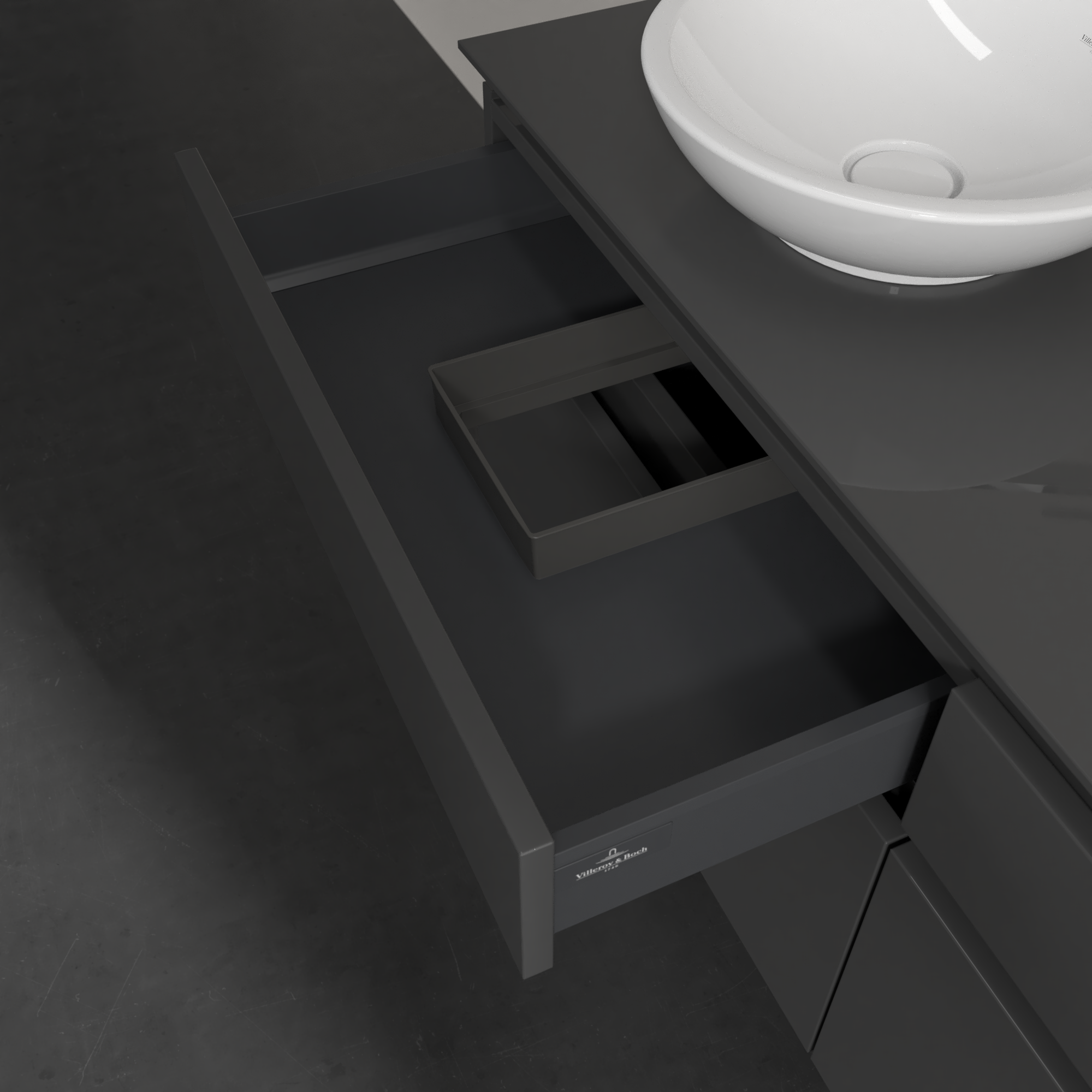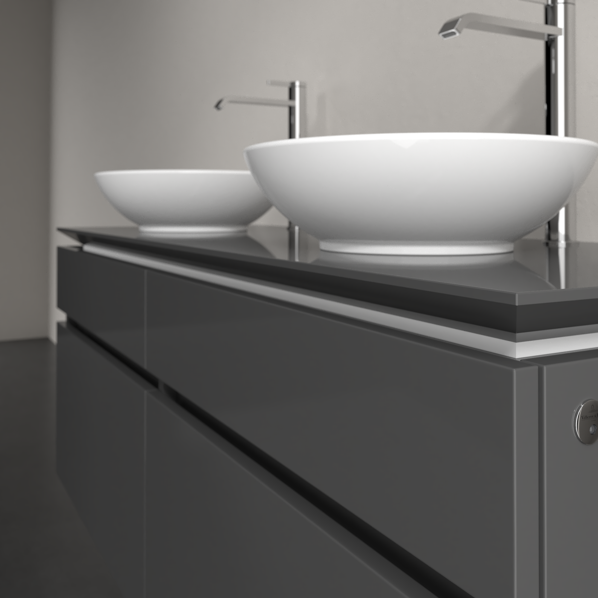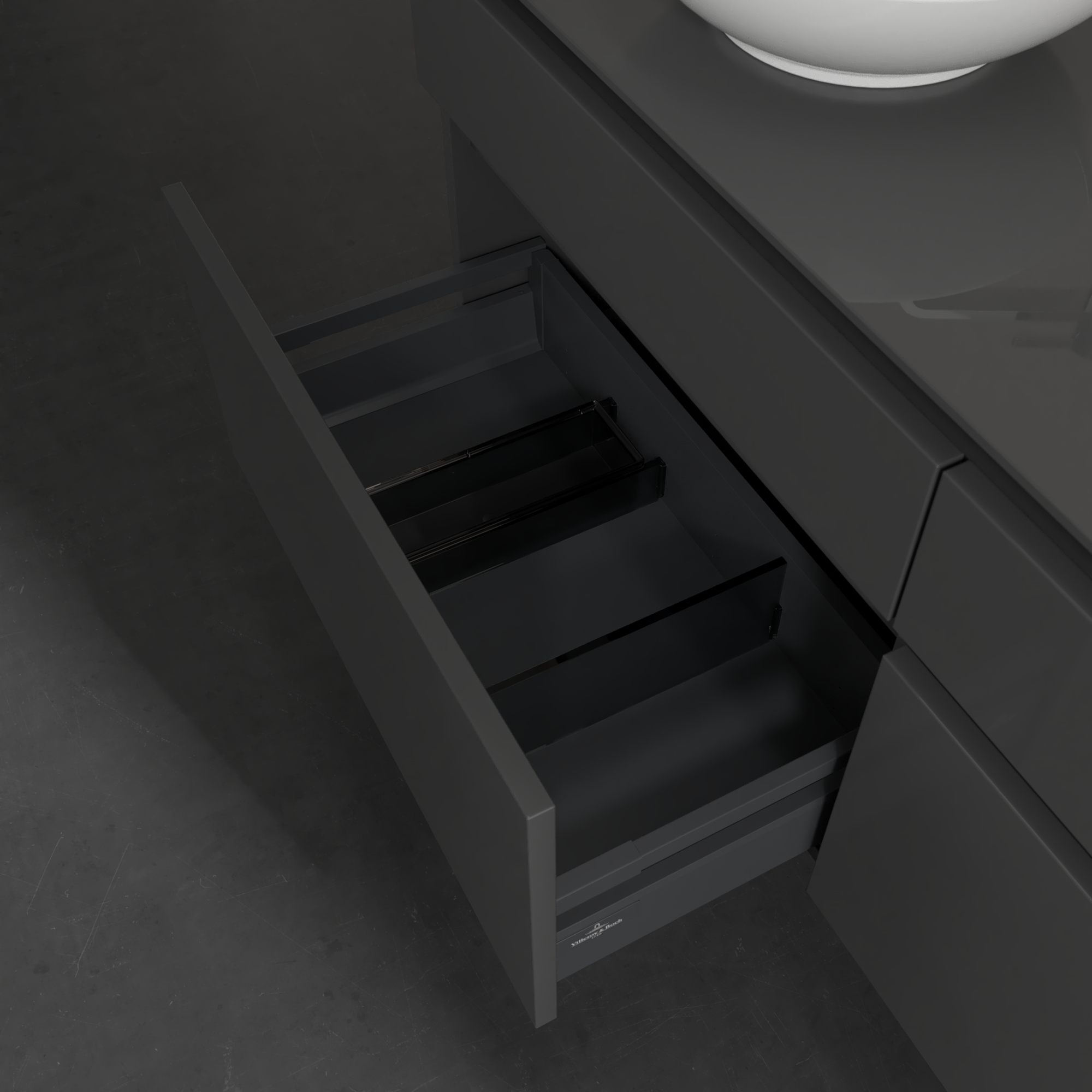 Legato Meuble sous plan, avec éclairage, 4 tiroirs sur rails, 1400x550x500mm, Caisson: Glossy Grey, Façade: Glossy Grey