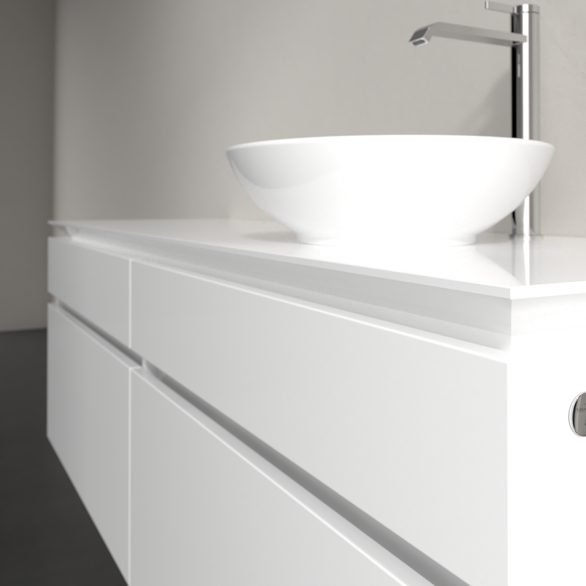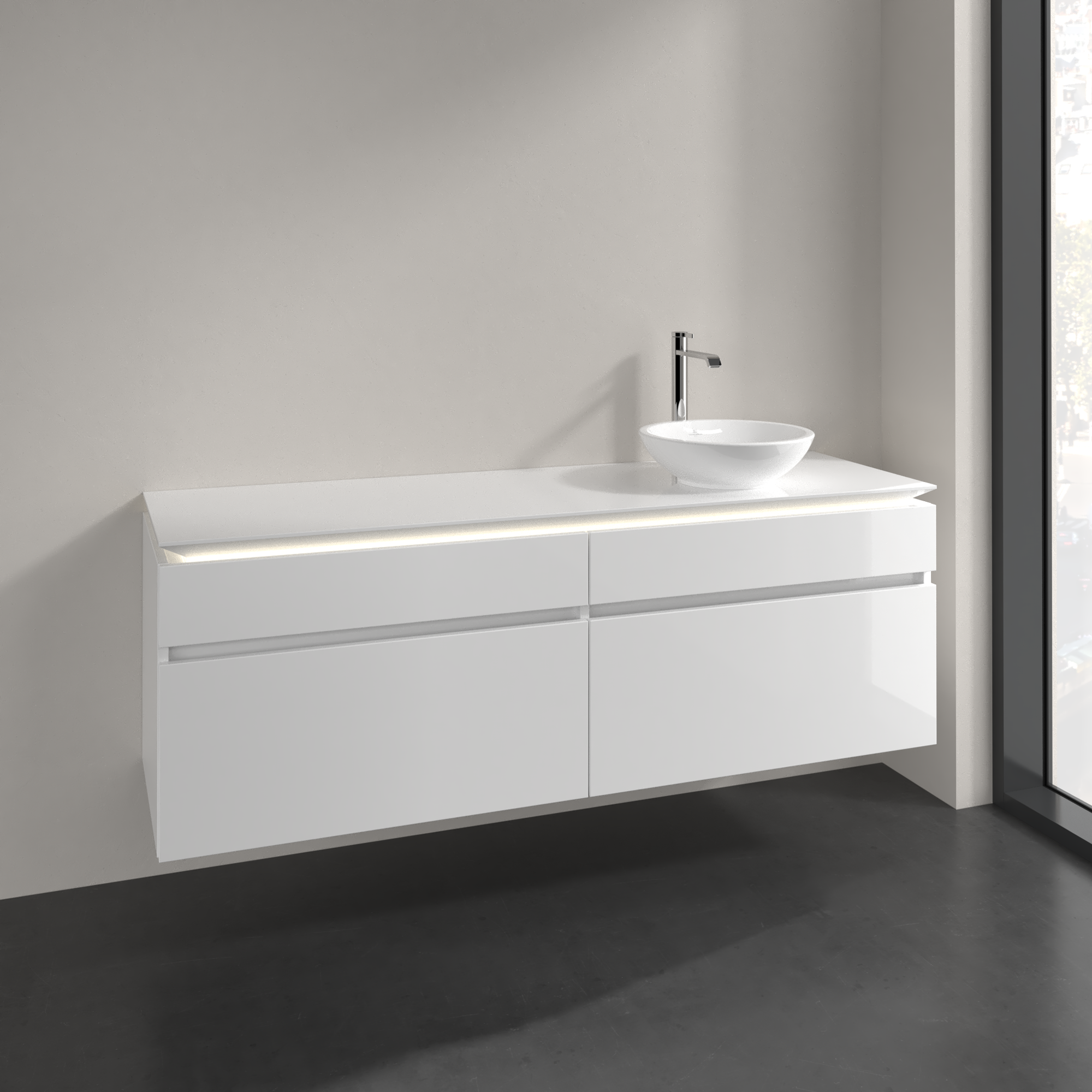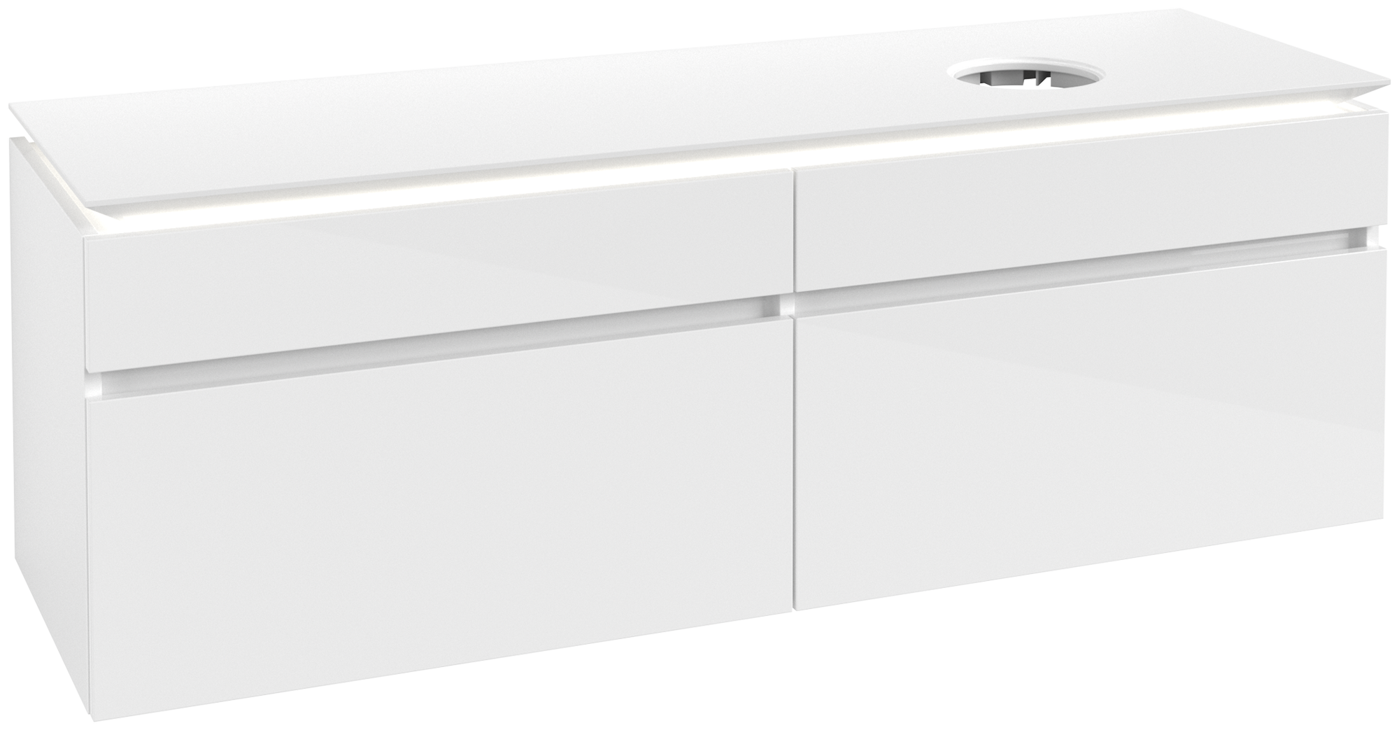Legato Meuble sous plan, avec éclairage, 4 tiroirs sur rails, 1600x550x500mm, Caisson: Glossy White, Façade: Glossy White